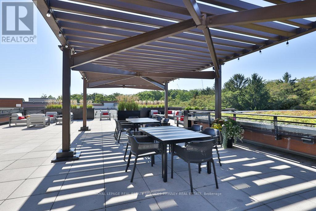 A unique and rare opportunity at the iconic and desirable Craftsman in Clarkson offering affordable luxury and ultimate convenience. Concierge, 24-hr security, a gym, yoga studio, rooftop w/bbqs, lush manicured grounds, and plenty of socials. These are just a few of many privileges that the residents of The Craftsman enjoy. This "Meadow Wood" suite offers a sunny West exposure, a functional 960 Sq Ft layout with 2-bedrooms, 2-full washrooms and a showstopper 817 Sq Ft Private Terrace in the secure and lush West Courtyard. Great for someone with a green thumb and/or pet. The suite features 9' ceilings with pot lights, tasteful 5" engineered hardwood flooring, an eat-in kitchen with Large Island and sink, full-sized Fisher & Paykel (31" Fridge), Whirlpool and Panasonic appliances, backsplash and tasteful cabinetry. The primary bedroom features a large walk-in closet, stunning 3-pc ensuite bathroom and a walk-out to the terrace. Positioned on level 1, suite 155 offers simplicity and ease for coming and going. Well-suited for those seeking convenience, comfort, security and a connection to the outdoors. This home is something truly special. (id:64974)