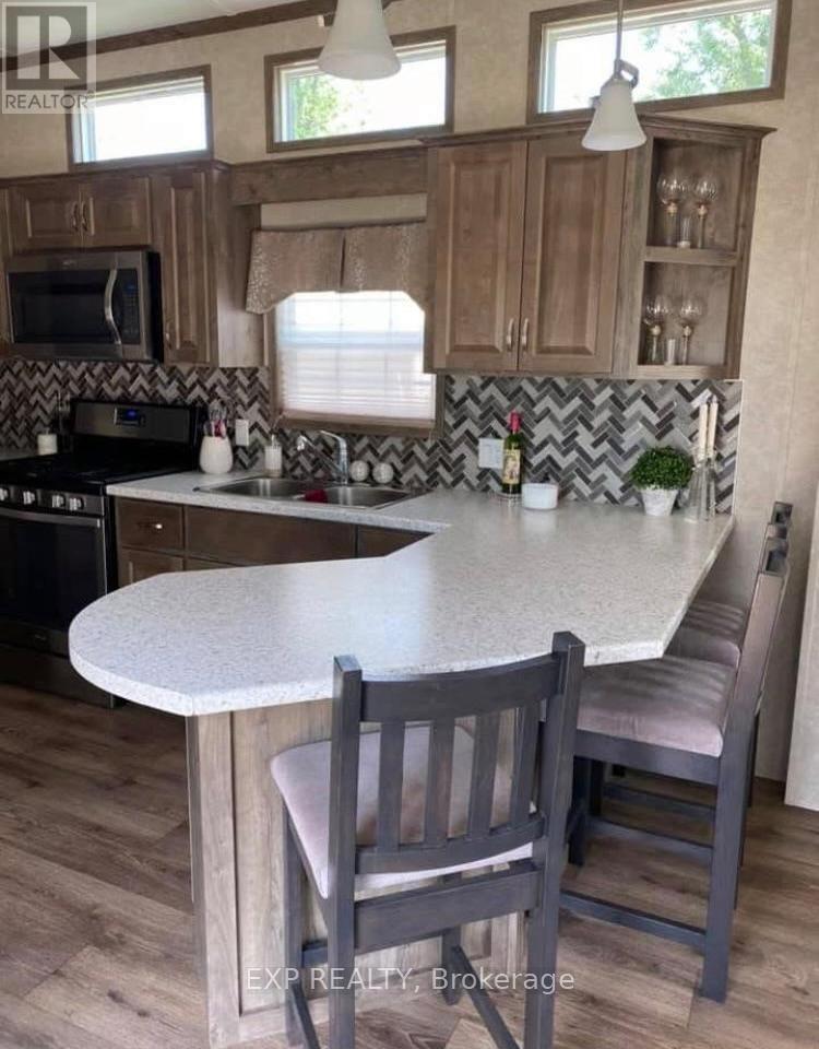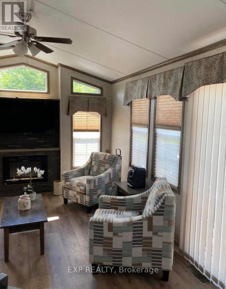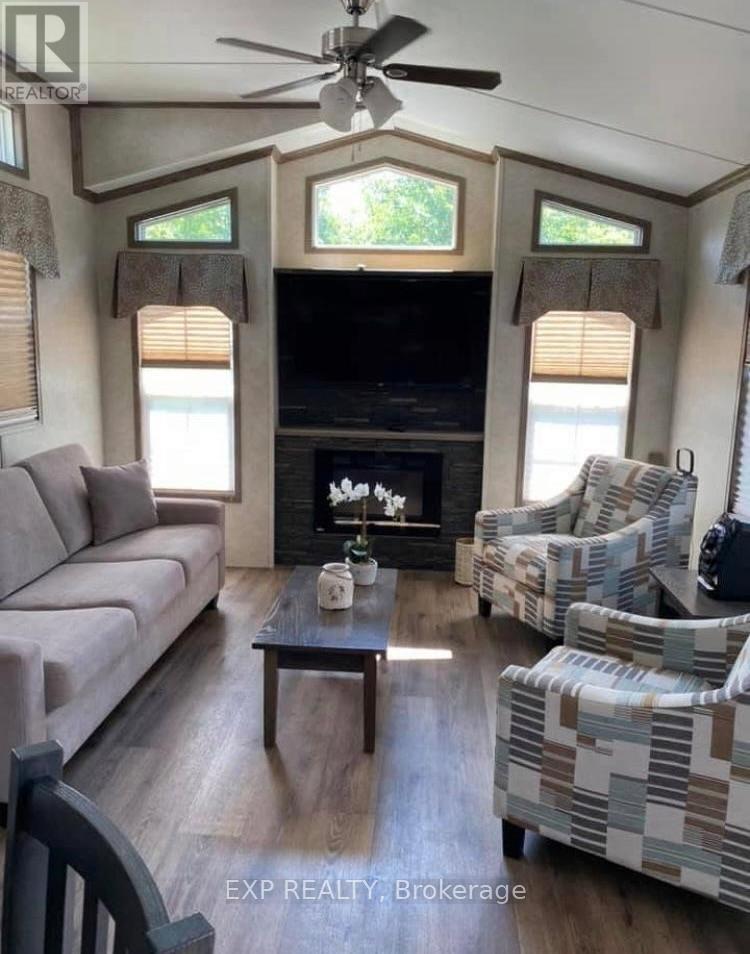 Your Lake Scugog Cottage. A Beautifully Maintained, Like New 40' Park Model Offering A Great Layout & Is Move In Ready. Fully Furnished & Equipped Just Unpack & Relax! Enjoy Comfortable Easy Open Concept Living With Tons Of Windows That Flood It With Natural Light. Modern Interior That Offers The Comforts You Want Including A Spacious Primary Bedroom With A Semi 4Pc Ensuite Bath, The Outdoor Living Space Is Awesome; Double Walkout To Large Multi Level Decks With Custom Areas, For Dinning, BBQ's & Sunbathing Hard Cover Gazebo Included . Location! Location! Location! Lake View & Just Steps To The Beach In A Vibrant Resort Community, With Full Calendar Of Social, Recreational Events Supported BY An Impressive List of Amenities, Including 3 Swimming Pools, Tennis & Pickleball Courts, Volleyball & Basketball Courts, A Ball Diamond, Mini Putt, Playground, Private Beach, & An On-Site Restaurant & Marina. Don't Miss Your Chance To Own This Gorgeous Cottage For Your Summers Retreat . (id:64974)