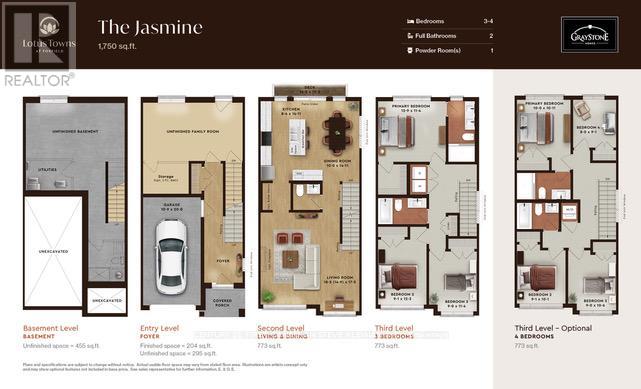 The JASMINE layout at Lotus Towns, a thoughtfully designed vacant land townhome walking distance to everything. This plan offers an UNFINISHED ROOM on the entry level & is UNFINISHED in the basement. You can also choose 3 or 4 bedrooms on the third floor. If you are looking for maximum bedrooms and full baths, this is the plan for you. Choose an end unit for the double wide driveway. High-end finishes, low condo fees, & modern conveniences, this home is designed for effortless living. Enjoy the garage parking & 125-amp electrical service accommodates your EV charger. The striking front exterior features upgraded Sagiper, James Hardie siding & clay brick, (no Vinyl siding) complemented by Dashwood Gemini Series windows for both style and efficiency. Enjoy the covered front porch or step out through the back door on the entry level to your exclusive-use backyard. The second floor boasts soaring 9 ceilings, a gourmet Canadian made kitchen with tons of cabinetry & countertop space, a large island, an optional pantry, plus a spacious dining area with sliding doors to the rear deck, perfect for entertaining! The living room is flooded with natural light, with an optional fireplace and a cozy office nook. Laundry is conveniently located on the third floor. Additional features include three designer finish packages with black fixtures. End units featuring extra windows & double wide driveways. The site is walkable to everything and has a private rear walkway leading to Wateroak Park with play equipment. It is even on the UWO bus route 31. Experience modern townhome living with luxurious finishes, thoughtful design, and incredible value. Secure your dream home at Lotus Towns today! **Limited time offer for Jasmine buyers only: The builder will finish the entry level room with large closet at no charge. ** Photos shown are of a model home and depict extras and upgrades that are not included in this price. (id:64974)