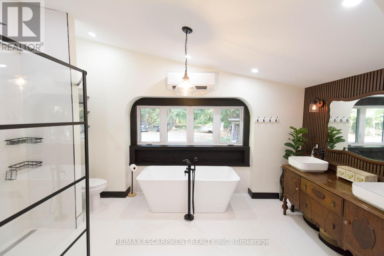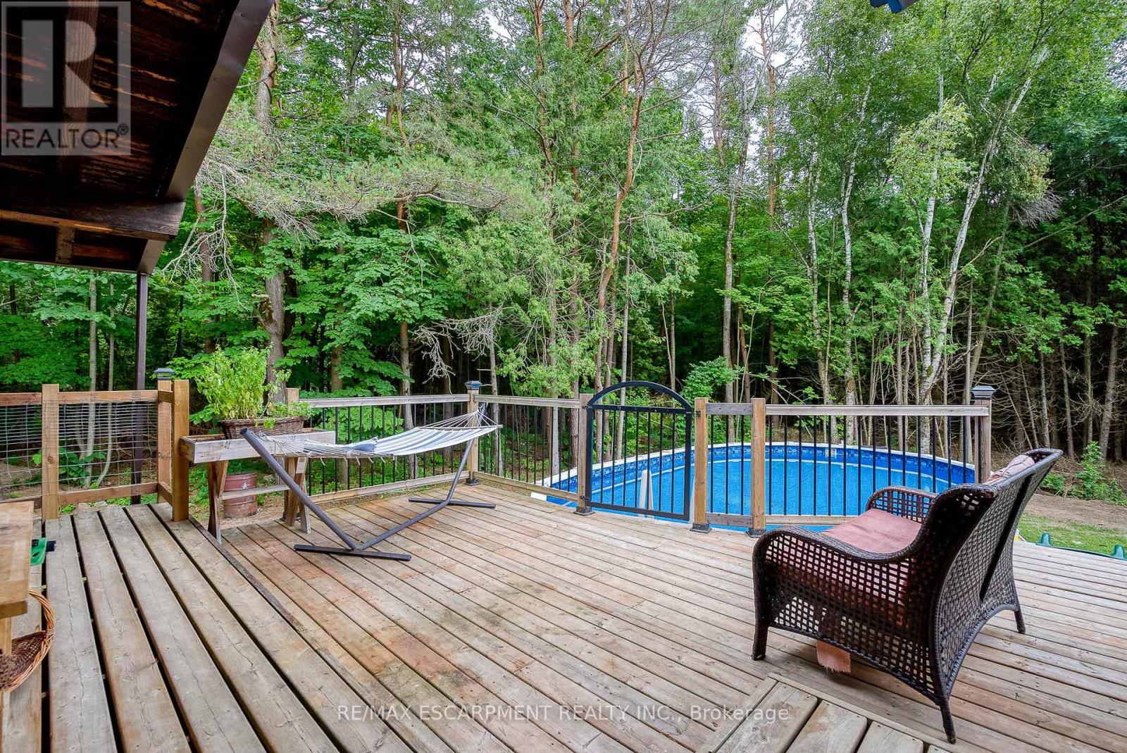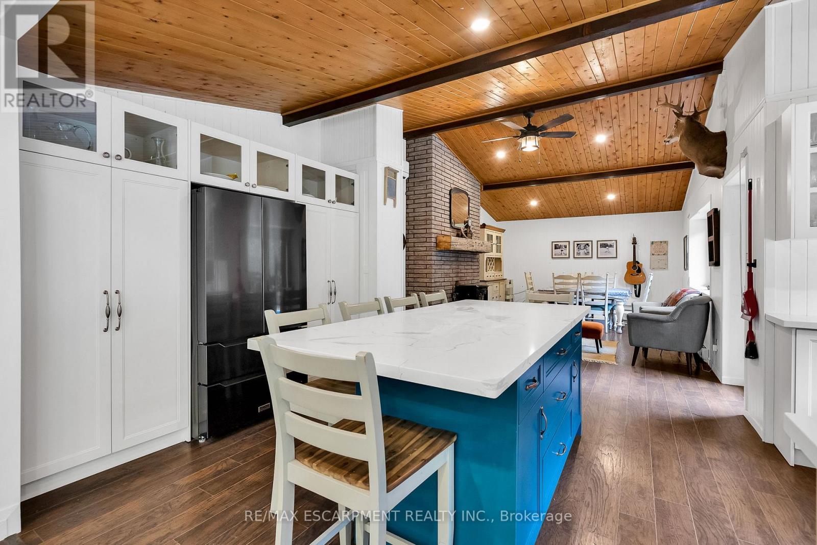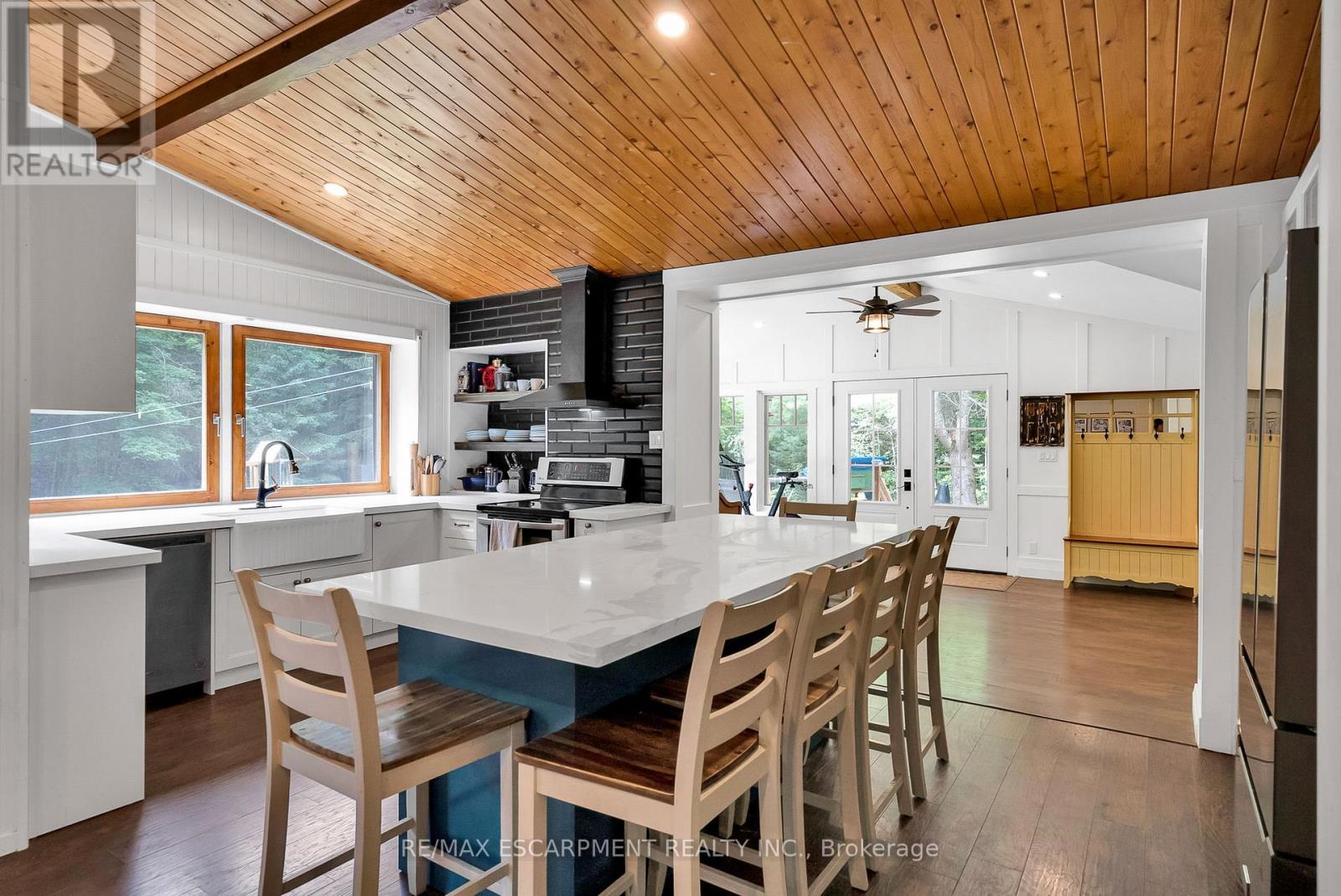 Welcome to 155 Hofer Road your private retreat on 18+ acres of rolling countryside. Renovated and thoughtfully designed, this family home offers the perfect balance of rustic charm and modern comfort. Step inside to a bright and inviting family room where soaring vaulted ceilings, exposed beams, and a wood-burning fireplace create a warm and welcoming atmosphere. Huge windows and a walkout to the deck fill this space with natural light, while pot lighting adds a touch of modern style. The open-concept kitchen and dining area is the true heart of the home, featuring quartz countertops, a farmers sink, a central island, and plenty of storage and prep space ideal for both everyday living and entertaining. On the main level, you'll find two generous bedrooms, including a stunning primary bedroom with a luxurious 5-piece ensuite. A second bedroom and a beautifully updated 4-piece bath ensure comfort and convenience for family or guests. The fully finished lower level provides even more living space with three additional bedrooms, a 3-piece bath, a laundry room, and a large rec room with its own walkout. Perfect for a growing family or hosting overnight guests. Outdoors, every season brings new adventures. In summer, relax in the pool or hot tub, explore the river running through the property, or entertain family and friends on over 1,200 sq. ft. of deck space. Evenings are made for gathering around the firepit under the stars. In winter, lace up your skates and enjoy your own private pond just steps away. Stay connected with Starlink, enjoy the convenience of school bus route access, and appreciate being just 10 minutes to town with easy 401 access. This isn't just a home its a place where every season brings new memories, new adventures, and a way of life you've been waiting for. The only thing missing is you. Its Time to Make YOUR Move! (id:64974)