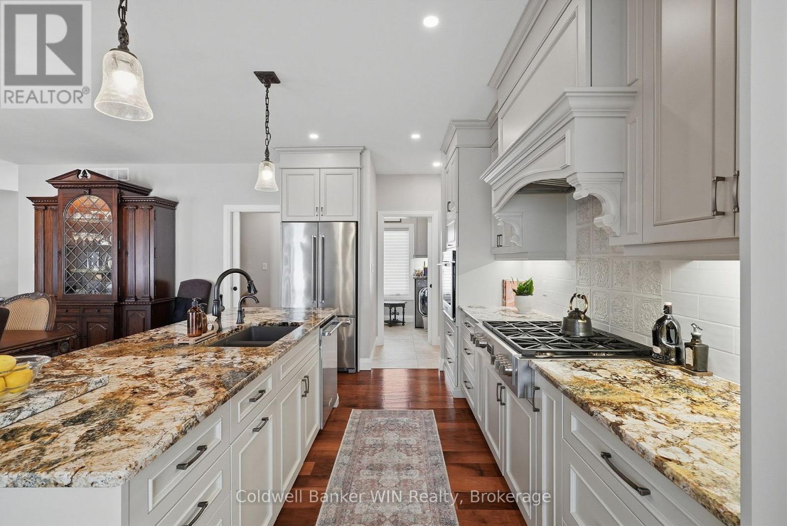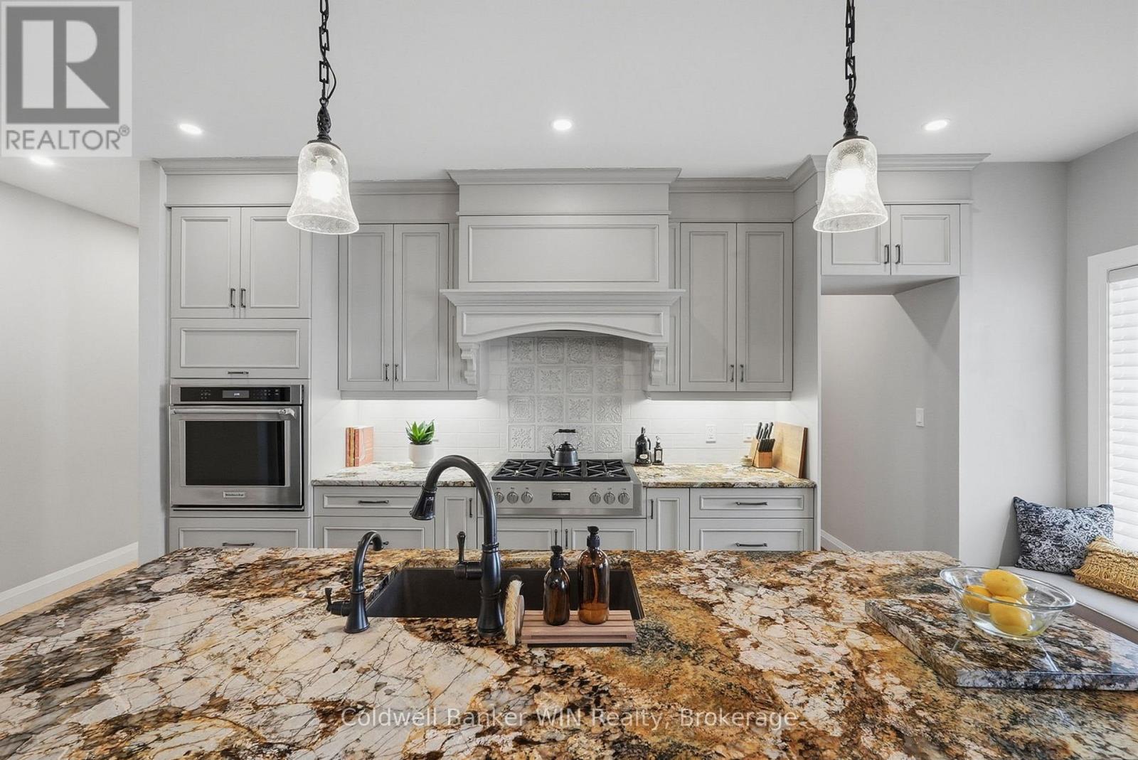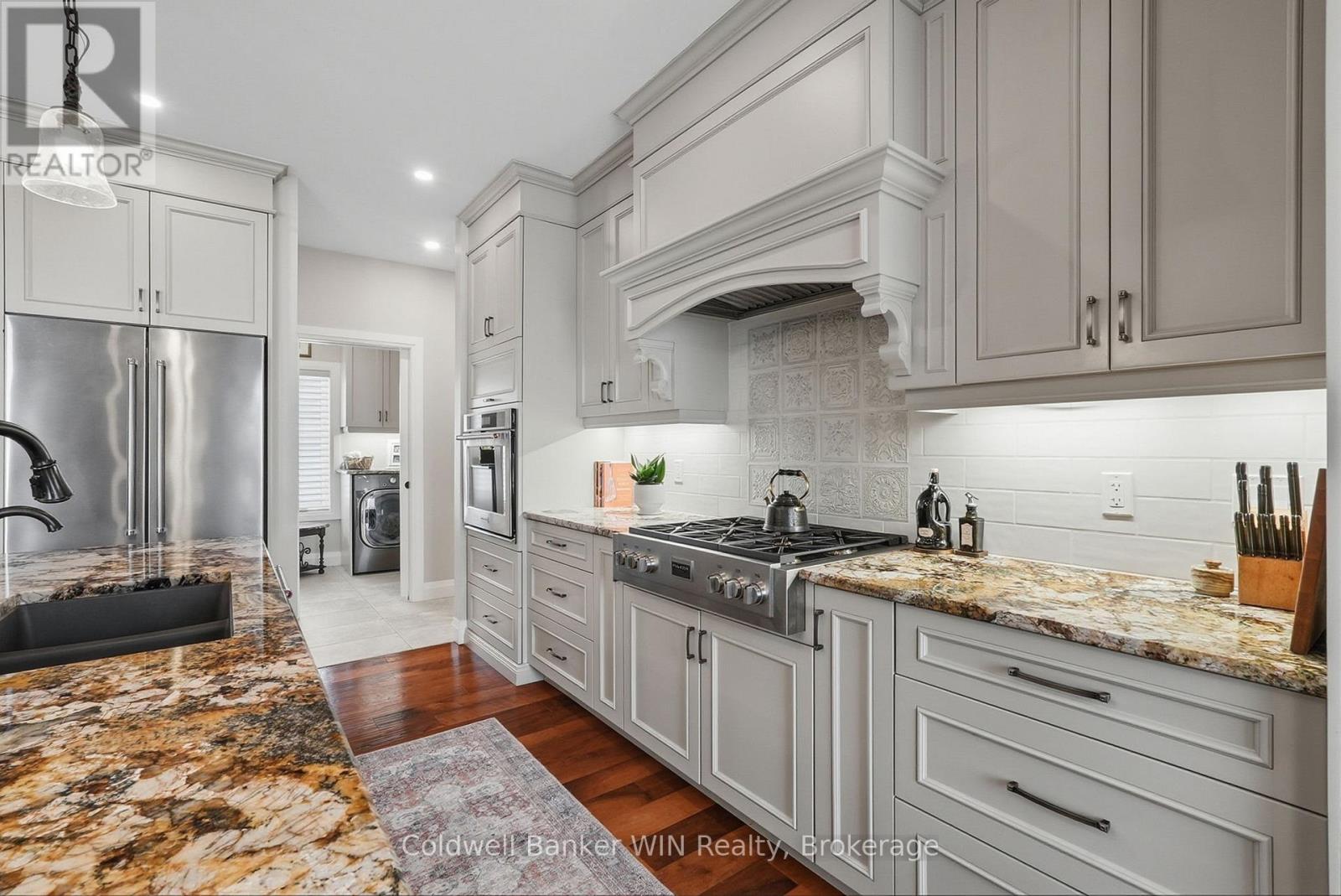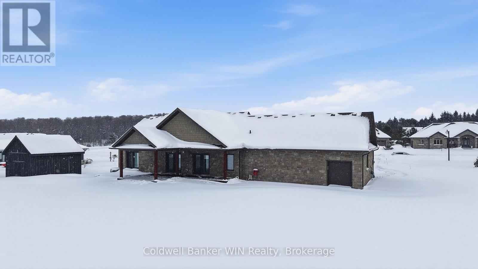 Nestled in the desirable Marshall Heights subdivision of West Grey, this exceptional bungalow offers the perfect balance of refined craftsmanship, comfort, and location. A striking stone exterior, concrete driveway, and elegant flagstone walkway create an inviting first impression, setting the tone for the quality found throughout the home. From the moment you enter, you'll notice the high-end finishes and thoughtfully selected materials from around the world. The kitchen is a true showpiece, featuring Mascarello granite countertops imported from Brazil, custom Barzotti cabinetry, Italian tile backsplash, walk-in pantry ready for cabinetry, and high-end appliances including a Fulgor Milano 6-burner gas stove from Italy. The open-concept layout was designed with a stunning stone fireplace anchoring the living room, and two walk-outs to the covered back composite deck for effortless indoor-outdoor living. The primary suite features a walk-out to the backyard, walk-in closet, and a luxurious 6-piece ensuite complete with his and hers sinks and a rainfall shower head. The second bedroom is suited for guests or family and includes its own 4-piece ensuite bathroom. A versatile third room may be used as a home office or additional bedroom. Completing the main level is a convenient main floor laundry room, a 2-piece powder room for guests, and access into the attached two-car garage. The basement offers a true blank canvas, with a bathroom rough-in, a gas fireplace hookup, and a convenient walk-up to the garage, making it ideal for a potential in-law suite or extended living space. Whether you envision additional bedrooms, a recreation area, or a private retreat, this lower level presents an opportunity to customize the space to suit your vision. This home offers a lifestyle where peaceful rural views meet everyday convenience. Surrounded by open farmland yet just 5 minutes from town amenities this is a rare opportunity to enjoy refined living without compromise. (id:64974)