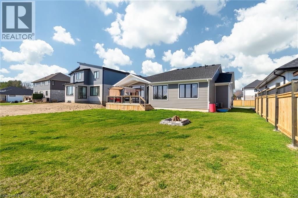 REPOSITIONED AND COMPETITIVELY PRICED to align with current market. Flexible closing. Beautiful BUNGALOW 15 minutes from the beach with 1416 SF of living space all on one level! Here’s your chance to own this turn-key bungalow built in 2022 by Medway Homes. Located in the desirable Westwood Estates, this home is nestled in one of the newest and most upscale neighborhoods in the community. Ideally situated between London and Grand Bend, it offers the perfect blend of convenience and small-town charm. This home is a great fit for all family types, including RETIREES, INVESTORS, growing or multigenerational FAMILIES, or those seeking mortgage helpers. Families will also appreciate the proximity to both public and Catholic schools. It all starts with curb appeal, and this stunner truly shines! Not your typical cookie-cutter new build, this home boasts a unique and beautifully designed exterior. The interlocking stone driveway and gardens provide a warm welcome, while the cozy front porch offers the perfectspot to enjoy your morning coffee or an evening beverage. Step inside and feel the WOW factor in this open-concept home, boasting over 1400SF, all on one level. The fabulous custom interior is enhanced by large windows that fill the home with natural light. It features 2 spacious bedrooms, including a primary suite with gorgeous ensuite and walk-in closet. Enjoy the convenience of a main floor laundry/mudroom, thoughtfully located off the garage. Sliding doors lead to a large backyard with beautiful deck, perfect for enjoying me time, entertaining guests, or watching children play. The unfinished basement, with numerous large windows, pre-installed plumbing and electrical, offers endless possibilities. Whether you envision a separate unit, additional living space for a growing family, a home office or gym, this basement will accommodate your vision. It’s not often you find a new and affordable house like this with such exceptional proximity to Grand Bend and London! (id:64974)
