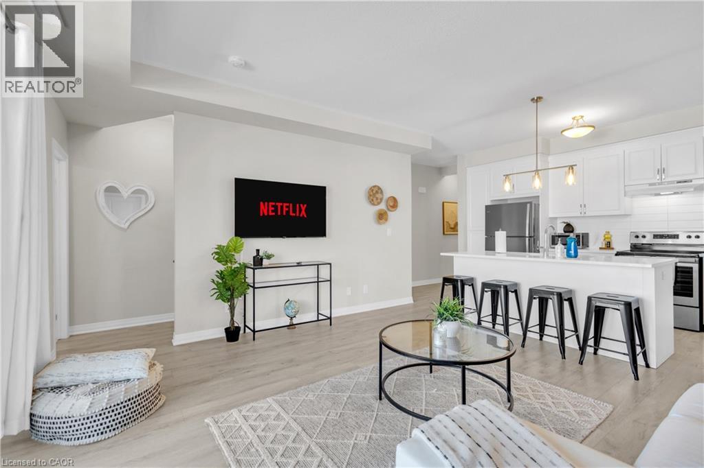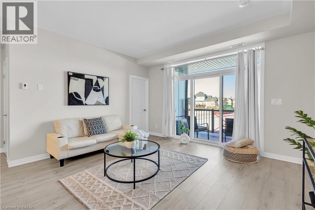 Welcome to 1F-155 Thomas Slee Drive, an exceptional and meticulously maintained stacked townhouse nestled in the heart of the highly desirable Doon Community. This modern, move-in-ready, only a few years young contemporary style home offers an outstanding opportunity for first time Home buyers or investors. Step inside and be greeted by a thoughtfully designed main level. The spacious, chef-inspired kitchen features stainless steel appliances, an abundance of cabinetry, elegant quartz countertops and a large center island that serves as the heart of the home. The bright and expansive living area, filled with natural light offers direct access to an oversized balcony. This private outdoor retreat is perfect for morning coffee, evening relaxation or simply soaking in the peaceful views. A convenient powder room completes this level. The upper level offers a well-planned layout designed for comfort and privacy. You’ll find 2 generously sized bedrooms, each with its own private balcony, creating rare and inviting personal outdoor spaces. The primary bedroom is a true retreat, complete with a walk-in closet and a stylish 3-piece ensuite bathroom. A modern main bath and a conveniently located laundry room complete the upper floor. This beautiful townhouse showcases modern finishes, excellent natural light and a smart, efficient layout throughout with very low maintenance fee. Additional highlights include one assigned parking space, along with multiple first-come, first-served parking spots, offering convenience and flexibility for parking. Located in a prime Doon location, this home is just steps away from Groh Park, Groh Public School, scenic walking trails, and offers quick access to Highway 401, along with nearby restaurants, shopping and everyday amenities. Enjoy a vibrant community setting while staying connected to everything you need. An exceptional home in an unbeatable location, don’t miss this opportunity. Book your private showing today! (id:64974)