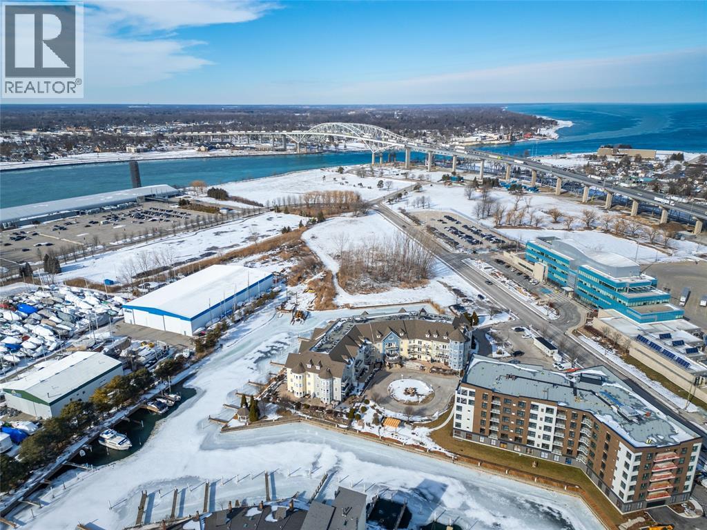 This 2 bedroom + Den, 2 bathroom condo is completely move-in ready. Enjoy time by the water, looking at the boats at Bridgeview Marina, or walking down by the St. Clair River. If you're looking for maintenance-free living while enjoying time outside, this is the home for you! The open concept kitchen & living room is great for entertaining, with lots of room for a kitchen table, or sitting at the raised breakfast bar. The den adds extra living space that could be used as an office, bedroom or extra living room. The lofted ceilings in the living room and bedrooms add add to the airy and spacious feel. This bright condo also features a huge balcony to sit outside and enjoy the view. Come and take a look at this fantastic condo! (id:64974)