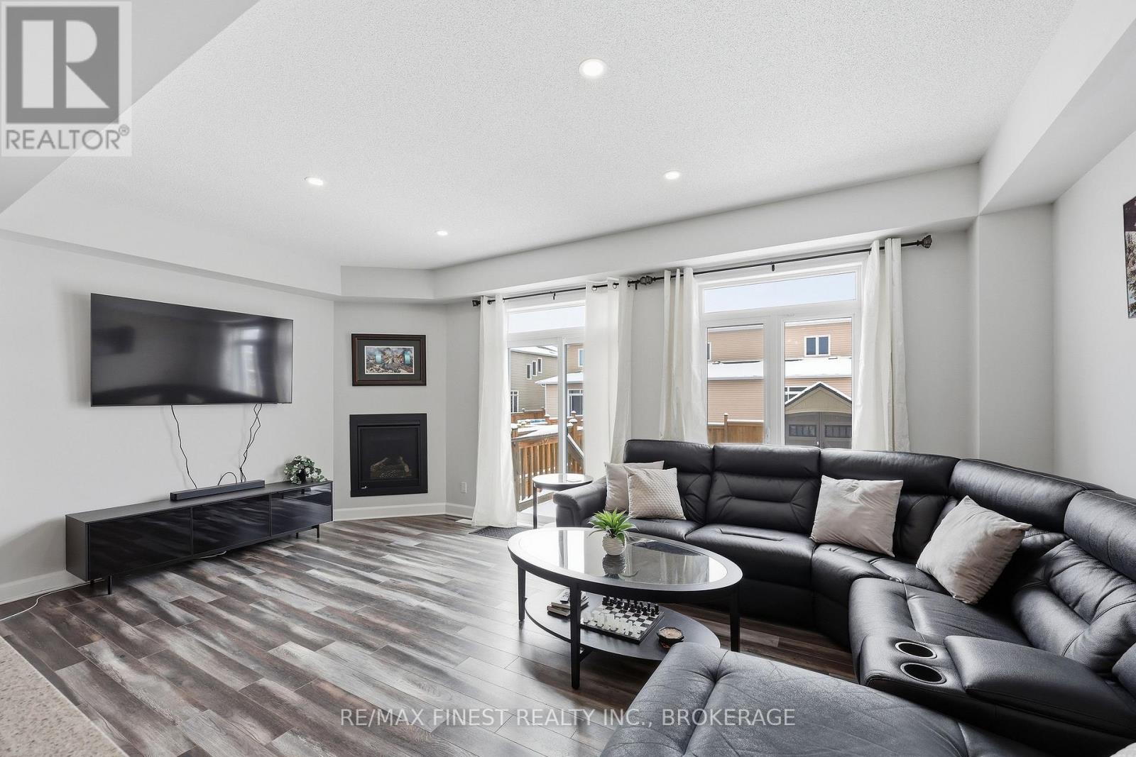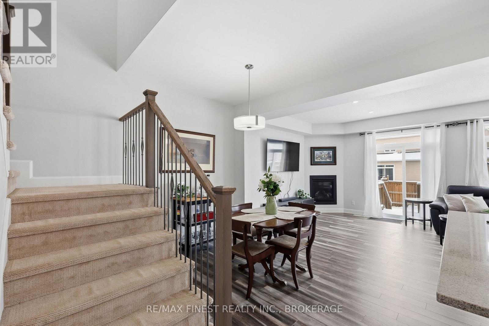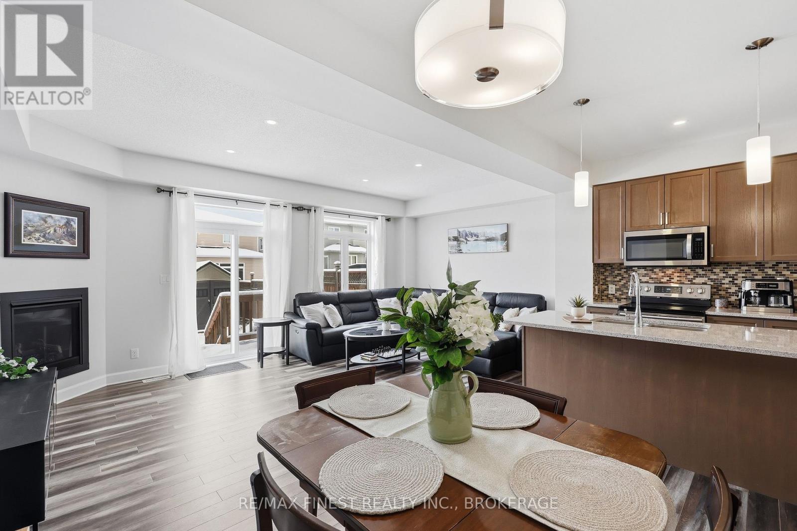 Welcome to 1553 Davenport Crescent, ideally located in Kingston's convenient Woodhaven community. This bright and inviting Sunnyside model by CaraCo offers 9-foot ceilings on the main level and a comfortable, open-concept layout perfect for modern living. Gleaming laminate floors lead through a spacious living area featuring a cozy gas fireplace and patio doors that open to a fully fenced backyard, an ideal space for relaxing or entertaining. The upper level includes three generous bedrooms and two full bathrooms, highlighted by a primary suite with a walk-in closet and a 4-piece ensuite. The finished basement offers a large recreation room, perfect for family activities or a home office. Additional features include central air, ample storage, and a convenient main-floor laundry room. Close to schools, parks, shopping and all west end amenities. (id:64974)