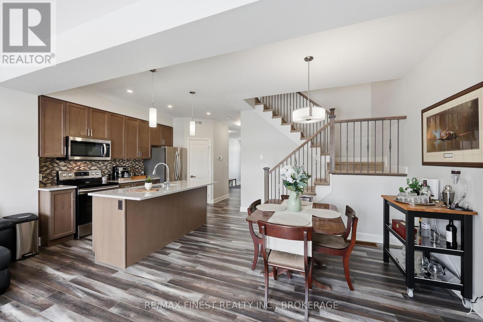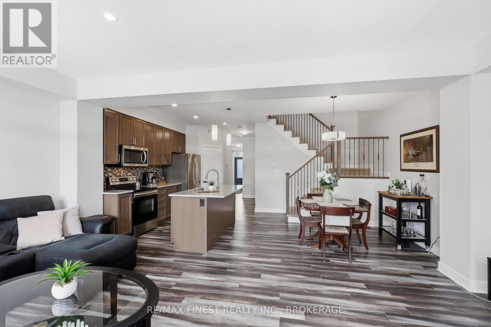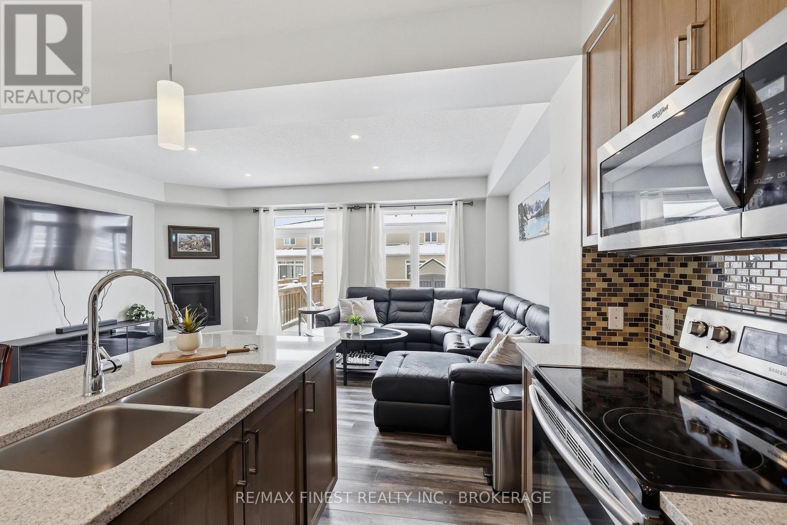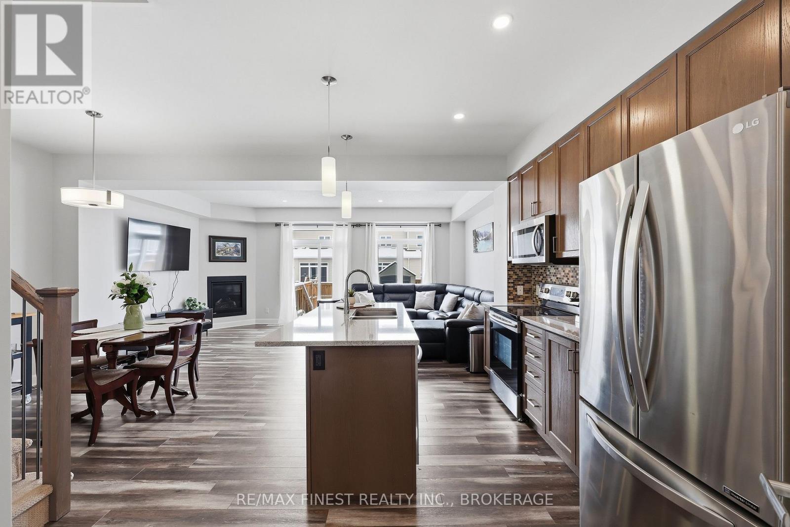 Welcome to 1553 Davenport Crescent, ideally located in Kingston's convenient Woodhaven community. This bright and inviting Sunnyside model by CaraCo offers 9-foot ceilings on the main level and a comfortable, open-concept layout perfect for modern living. Gleaming laminate floors lead through a spacious living area featuring a cozy gas fireplace and patio doors that open to a fully fenced backyard, an ideal space for relaxing or entertaining. The upper level includes three generous bedrooms and two full bathrooms, highlighted by a primary suite with a walk-in closet and a 4-piece ensuite. The finished basement offers a large recreation room, perfect for family activities or a home office. Additional features include central air, ample storage, and a convenient main-floor laundry room. Close to schools, parks, shopping and all west end amenities. (id:64974)