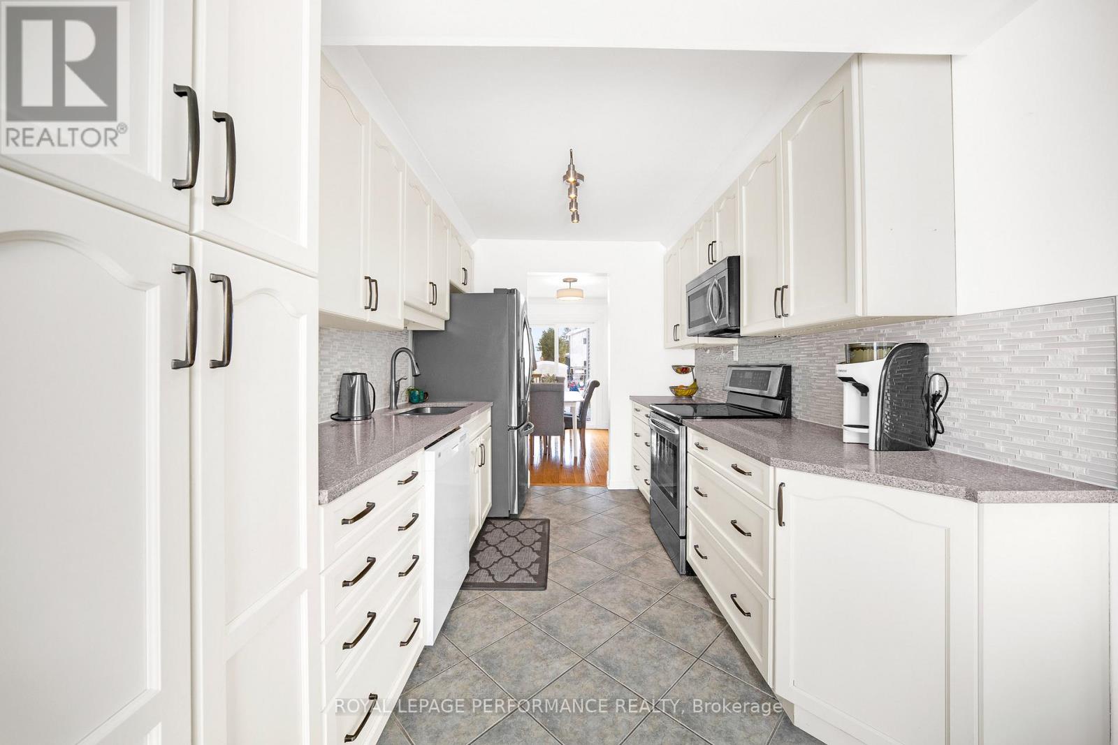 Welcome to this beautifully maintained 3+1 bedroom single-family home nestled on a quiet cul-de-sac, offering exceptional privacy and a rare 137-ft extra-deep lot-perfect for families, entertaining, and outdoor enjoyment. Ideally located within walking distance to schools, parks, and grocery shopping, this home combines convenience with a peaceful neighbourhood setting.The main level features stunning hardwood flooring and a bright, mid-level living room highlighted by large windows and a cozy wood-burning fireplace. The updated kitchen showcases timeless white cabinetry with custom organizers, quartz countertops, and a stylish backsplash, flowing seamlessly into the dining area.Upstairs, the spacious primary bedroom includes a large closet and convenient 2-piece ensuite. The full bathroom offers both a separate shower and a luxurious soaker tub, creating a perfect space to unwind.The fully finished basement adds excellent versatility and living space, featuring a comfortable recreation room, functional den, and an additional bedroom, making it ideal for guests, a home office, gym, or multigenerational living.Step outside through patio doors to enjoy the fully fenced backyard oasis featuring a newly built deck (2025), and mature trees providing outstanding privacy-perfect for summer entertaining and family fun.This home offers numerous updates and is truly move-in ready, including: Roof (2020) Most windows replaced (2020 & 2025) Furnace (2022) Interlock front porch (2023) New front door (2025)Additional highlights include an oversized garage and ample driveway parking.A fantastic opportunity to own a well-updated home on a premium lot in a highly desirable family-friendly location. (id:64974)