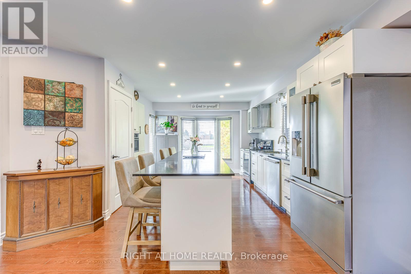 Exceptional opportunity to own a beautifully updated freehold townhome in one of Oakville's most established and family-friendly neighbourhoods! Located near Trafalgar Rd & Upper Middle, this spacious 3-bed, 3-bath residence offers a rare combination of modern upgrades, functional layout and a walkout basement to an oversized backyard-a feature seldom found in this area. Step inside to brand-new hardwood flooring (2024) and a stunning renovated modern kitchen complete with a massive centre island, sleek cabinetry and stainless steel appliances-designed for both everyday living and effortless entertaining. The open-concept dining and living areas include large windows and a cozy fireplace, creating a warm and inviting space. Upstairs, enjoy three generous bedrooms including a bright primary suite and two bathrooms. The versatility continues with a finished above-grade walkout basement, ideal as a recreation room, home gym, media room or potential fourth bedroom, with direct access to the deep, private backyard-perfect for gardening, play or outdoor dining. Parking is never an issue with a 1-car garage + 2 additional driveway spaces (3 total) and no sidewalk. This prime location is steps to Sheridan College, top-ranked schools including Iroquois Ridge, scenic ravine trails, a neighbourhood tennis court, parks, playgrounds and major shopping such as Oakville Place. Commuters will love the quick access to QEW/403, public transit and the nearby GO station. A rare chance to own a stylish, move-in-ready freehold townhome with an exceptional lot, modern updates and unbeatable convenience in a high-demand community. Don't miss it! (id:64974)