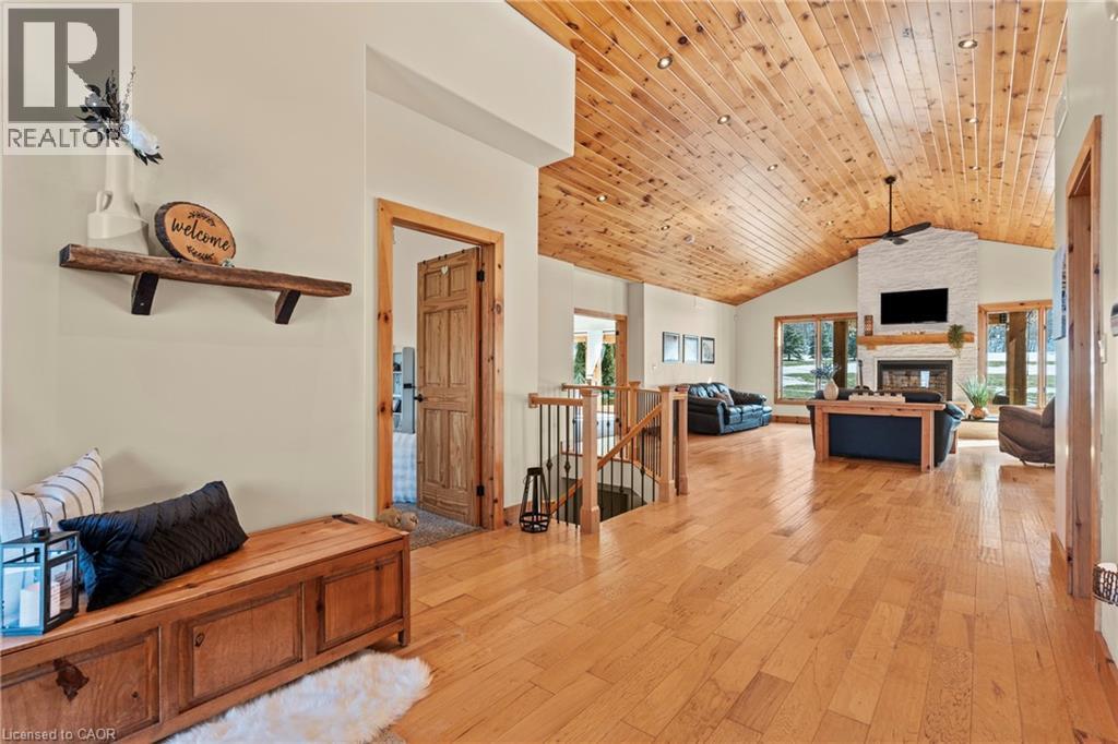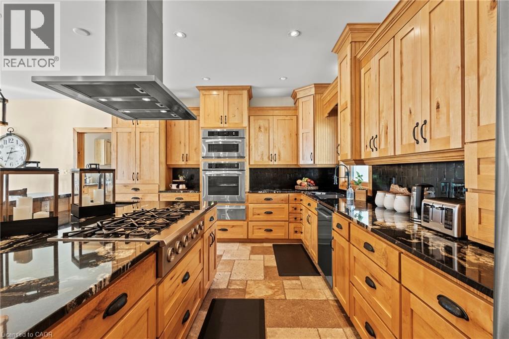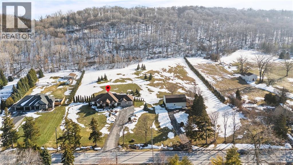 Welcome to 1559 York Road in St. Davids - 5 private acres backing onto the Niagara Escarpment with incredible views, total privacy, and serious long-term upside.This custom-built bungalow (2010) offers over 4,000 sq ft of finished space has over 345ft of frontage, over 600ft depth and was designed for Muskoka-like living and entertaining. The main floor is open, bright, over 2500sqft and anchored by a huge Great Room with vaulted pine ceilings, hickory floors, and a floor-to-ceiling fireplace. The kitchen is built for hosting with custom cabinetry, stainless appliances, built-in oven, warming drawers, and a large island with a 6-burner gas cooktop and extra prep sink.The primary bedroom is its own private retreat with a three-sided fireplace, heated floors, Jacuzzi tub, and French doors to the backyard. The finished lower level has a separate entrance, 9 ft ceilings, in-floor heating, a bedroom, and full bath - perfect for an in-law setup, extended family, or flexible living space. Step outside to a massive deck, multiple seating areas, and panoramic Escarpment views that make this property feel like a private resort. The property also includes a 1,080 sq ft two-storey barn that can be used for a workshop, storage, or hobby space! Huge bonus and major value add: the area where the barn sits can potentially be permitted for a secondary dwelling, creating the opportunity for a future guest house, multi-generational living, or income potential (buyer to complete their own due diligence regarding approvals). Opportunities like this on Escarpment properties are rare.All of this just minutes to the QEW, the U.S. border, and Niagara-on-the-Lake wine country. Space, privacy, flexibility, and future potential - exactly what today's buyers want! (id:64974)