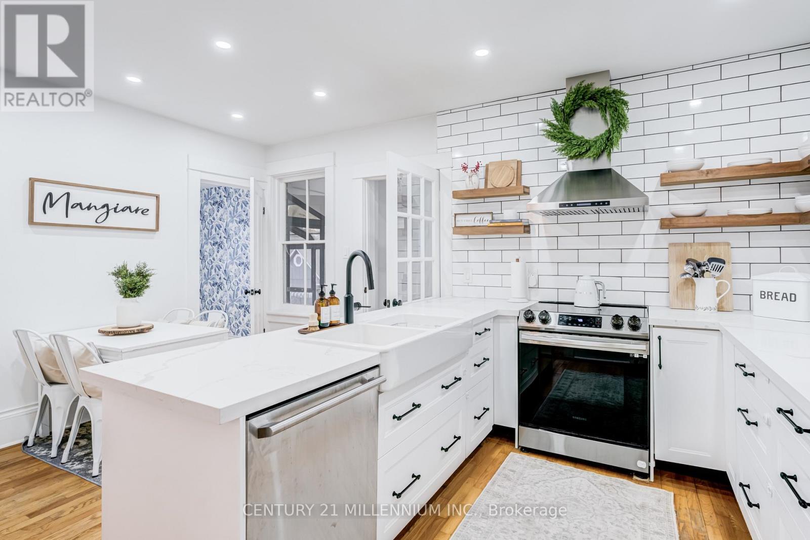 Step into timeless charm with the comfort of modern living in this beautifully updated early-1900s home nestled in the heart of the picturesque village of Inglewood. Full of character yet thoughtfully renovated throughout, this home offers the perfect balance of historic warmth and modern upgrades that allow buyers to move in and enjoy without the hassle of major updates. The main level welcomes you with a spacious living room featuring a cozy gas fireplace and large windows that fill the space with natural light. From here, step into the bright three-season sunroom, surrounded by windows and overlooking the expansive backyard-an ideal space to relax and take in the peaceful setting. At the heart of the home is the fully renovated eat-in kitchen, complete with stainless steel appliances, granite countertops, a double sink, a convenient walk-in pantry, and beautiful wood shelving that enhances the charm and character of the home. The formal dining room provides an inviting space for gatherings, featuring three large windows, crown molding, and built-in shelving. Just off the kitchen, an additional family room offers even more living space and direct access to the sunroom, creating an easy flow for everyday living and entertaining. A newly renovated two-piece bathroom completes the main floor. Upstairs you will find four well-sized bedrooms and a four-piece bathroom, offering plenty of room for family, guests, or a home office. Outside, the large backyard is designed for both relaxation and fun, featuring a pergola, a charming playhouse, and a shed with power-perfect for hobbies, storage, or a workshop. Extensive updates provide peace of mind, including a new furnace and air conditioner, all new electrical, new interior doors throughout, new windows and blinds, a durable metal roof with new eavestroughs, and a new septic pump. Located in the highly desirable village of Inglewood, this home offers a lifestyle that blends natural beauty with community charm. (id:64974)
