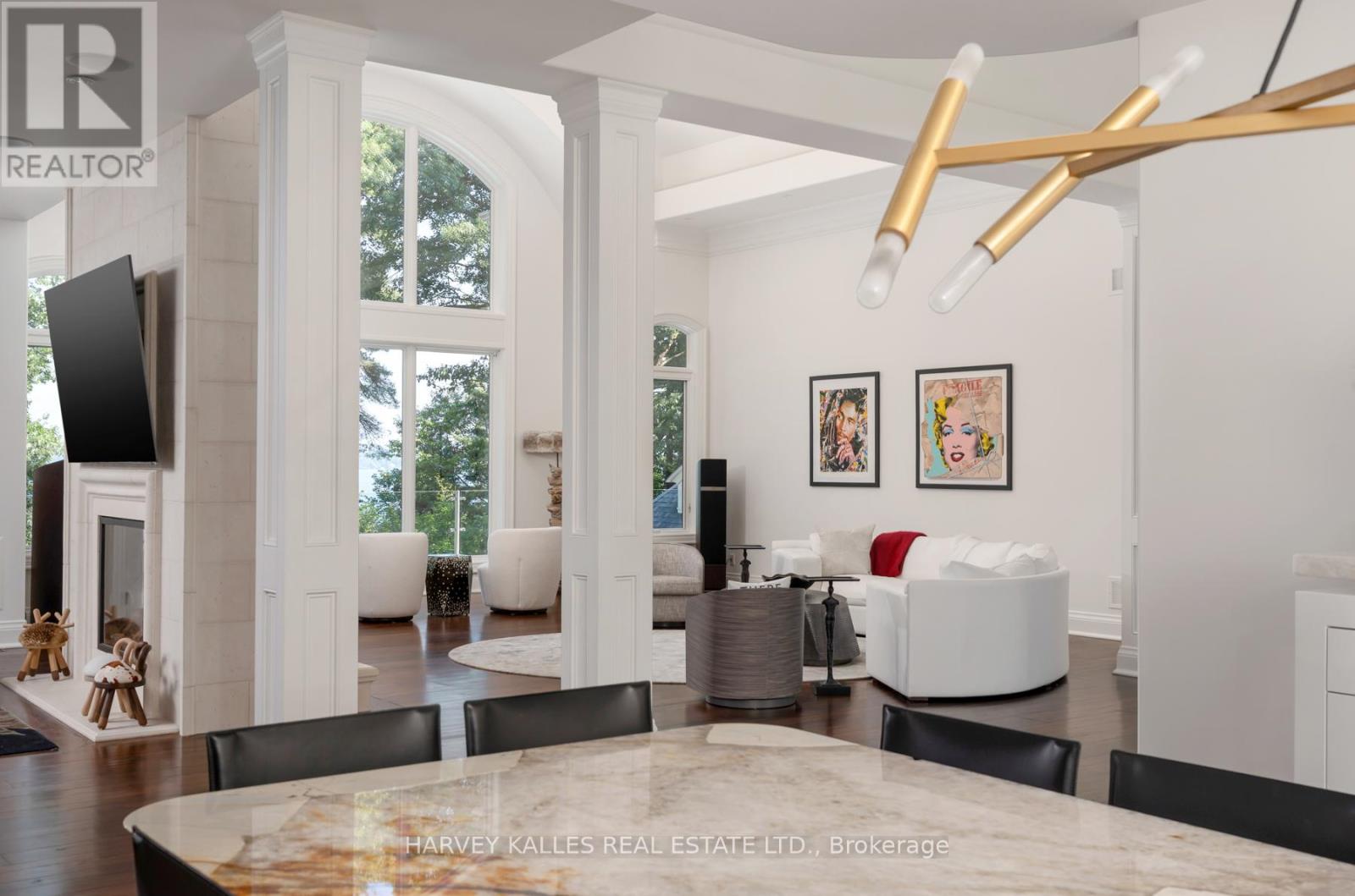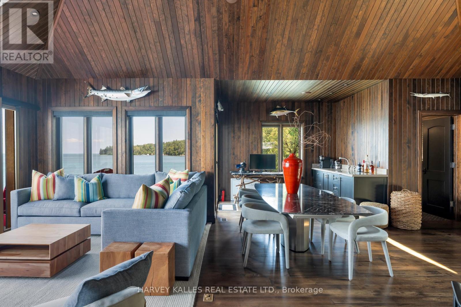 Stunning World-Class Waterfront Estate on Kempenfelt Bay / Lake Simcoe! Privately nestled along one of the most prestigious and coveted roads on Kempenfelt Bay, this extraordinary estate is offered for sale. Gated and masterfully designed, the property showcases the pinnacle of craftsmanship, elegance, and timeless luxury. Envisioned as a true family compound, the estate comprises multiple residences designed for entertaining and privacy: the grand main house, a private apartment, a boathouse, and a cabana. Together, they provide 10 bedrooms, a bunk room accommodating 8, 11 bathrooms, 2 full kitchens, and 3 kitchenettes offering exceptional flexibility for family, friends, and guests. The main residence features a one-bedroom loft with full kitchen and bath, while the rare water lot highlights an Incredible one of a kind boathouse with kitchenette, bedroom/bathroom, living/dining with folding glass doors for indoor/outdoor lakeside living, double slip wet boathouse, permanent dock, extensive decking, remote lifts. Poolside cabana with dramatic fold-away doors continue Outdoor living elevated with frameless glass railings, expansive stonework, covered and uncovered sitting, lounging and dining areas are perfectly positioned for breathtaking sunsets and lake views. Resort-style amenities define the exterior, including a Betz Gunite pool with waterfall, infinity edge, and hot tub, glass-walled terraces, a poolside BBQ pavilion, and a cozy wood-burning fireplace surrounded by intimate seating. Inside, refined details abound: Incredible Chefs Kitchen, reclaimed antique elm hardwood floors, a custom wrought-iron staircase, elegant crown mouldings, four gas fireplaces, and extensive soundproofing for total comfort and privacy. A true one-of-a-kind sanctuary, this world-class waterfront estate must be experienced to be fully appreciated. Presentation, Photo Gallery, Floor Plans In Link. (id:64974)