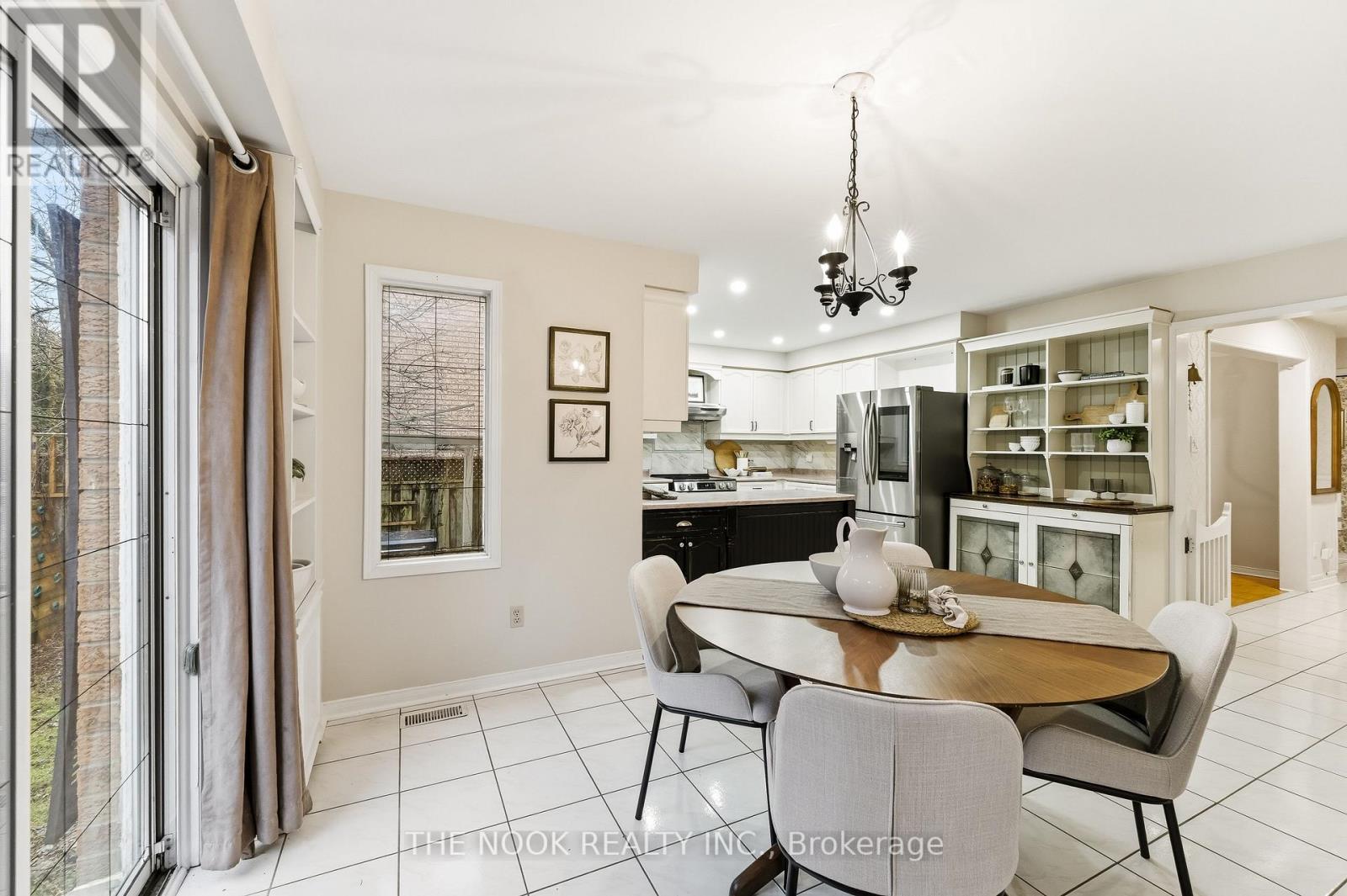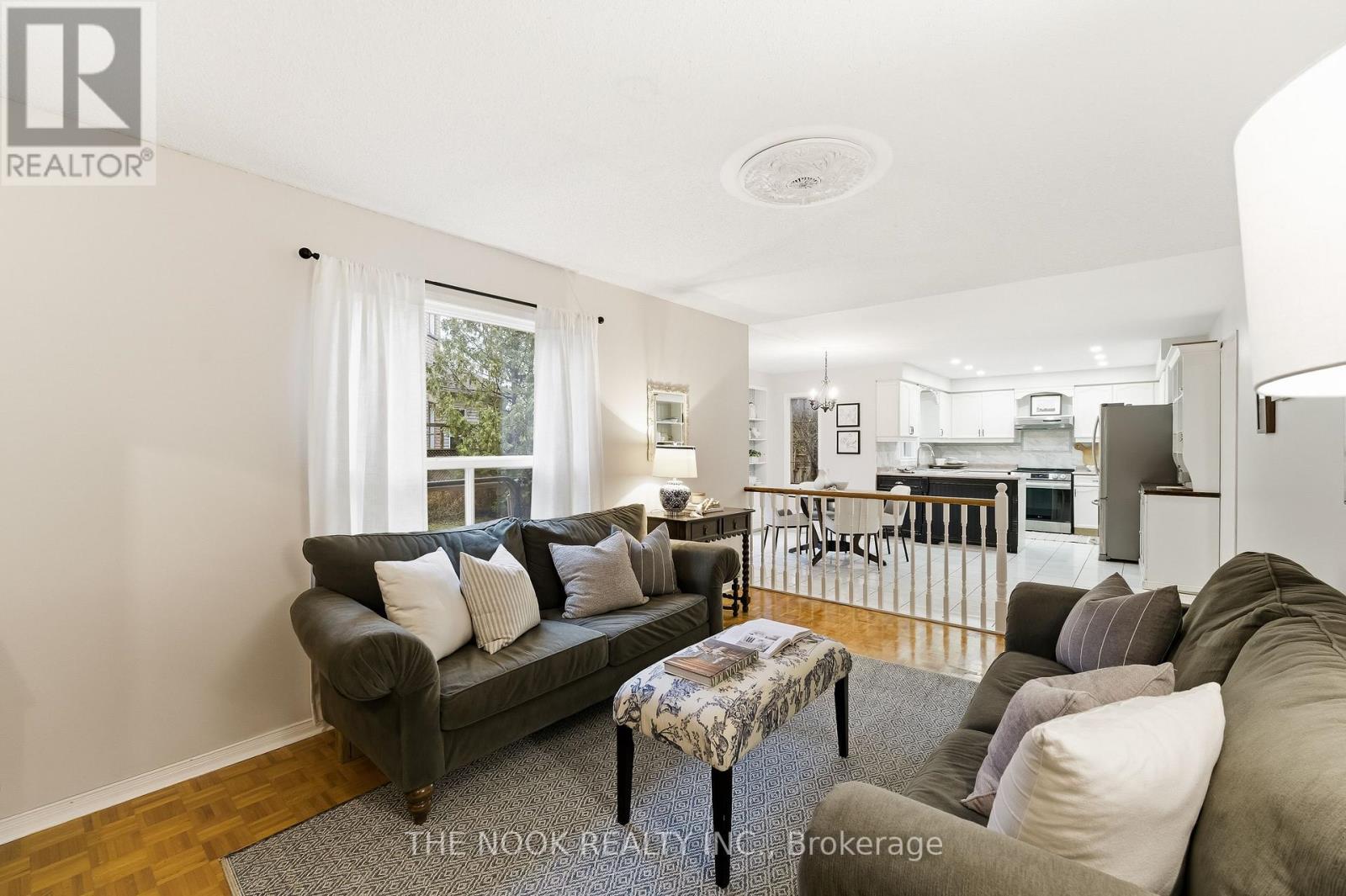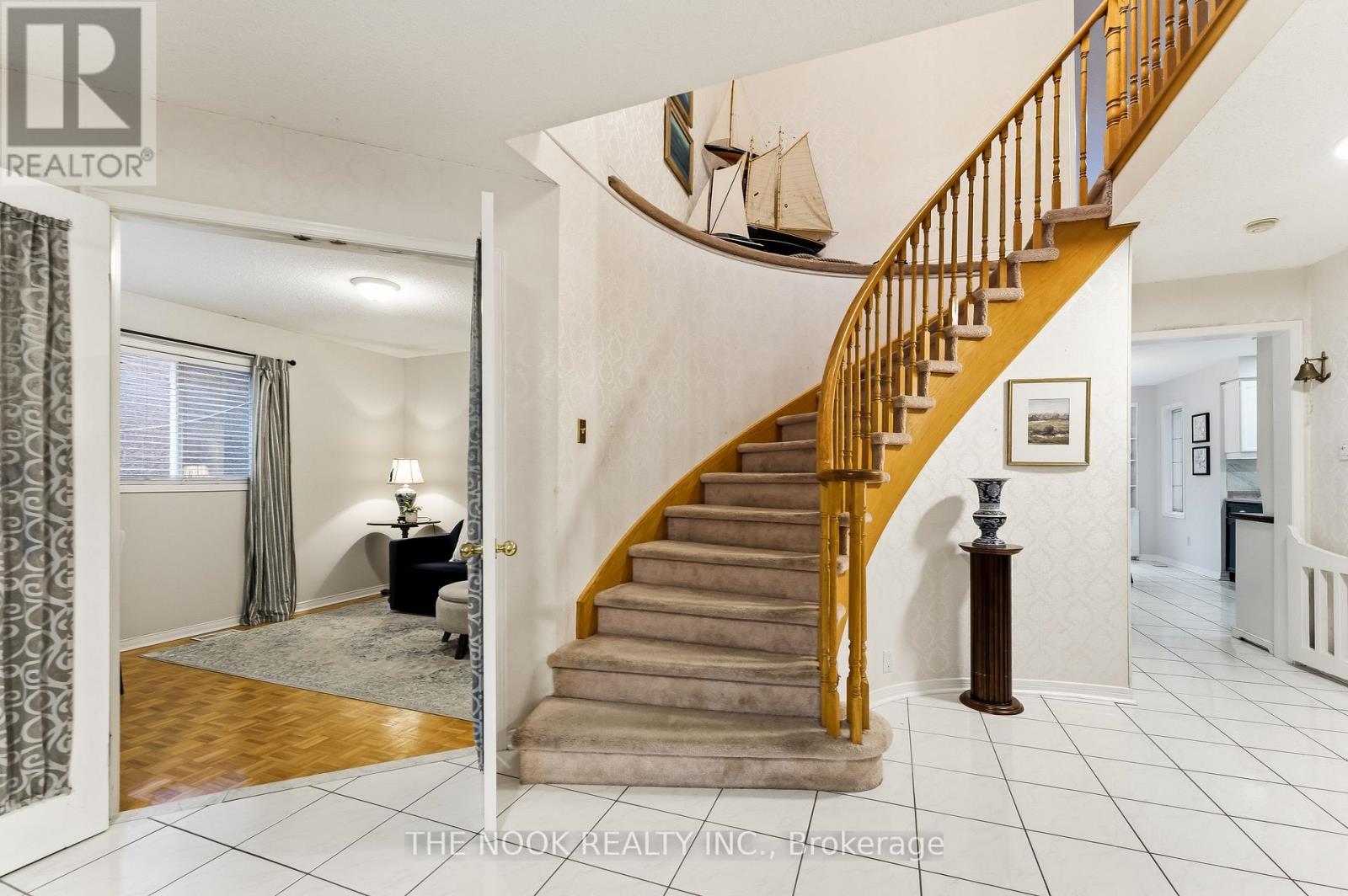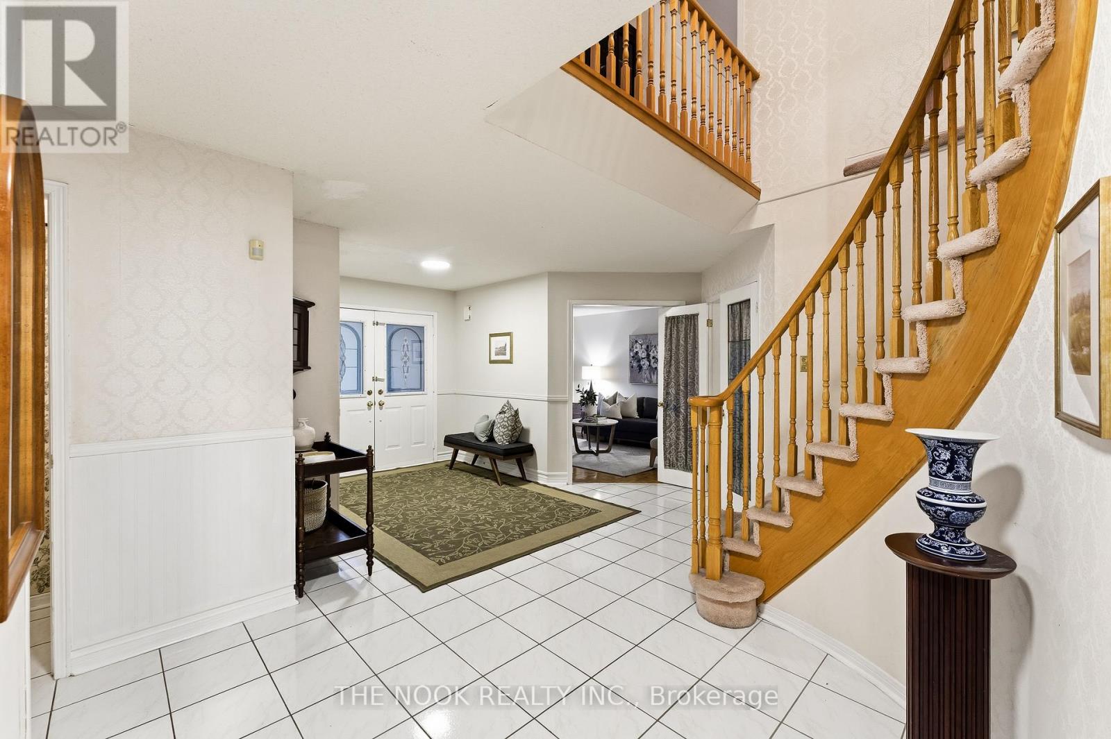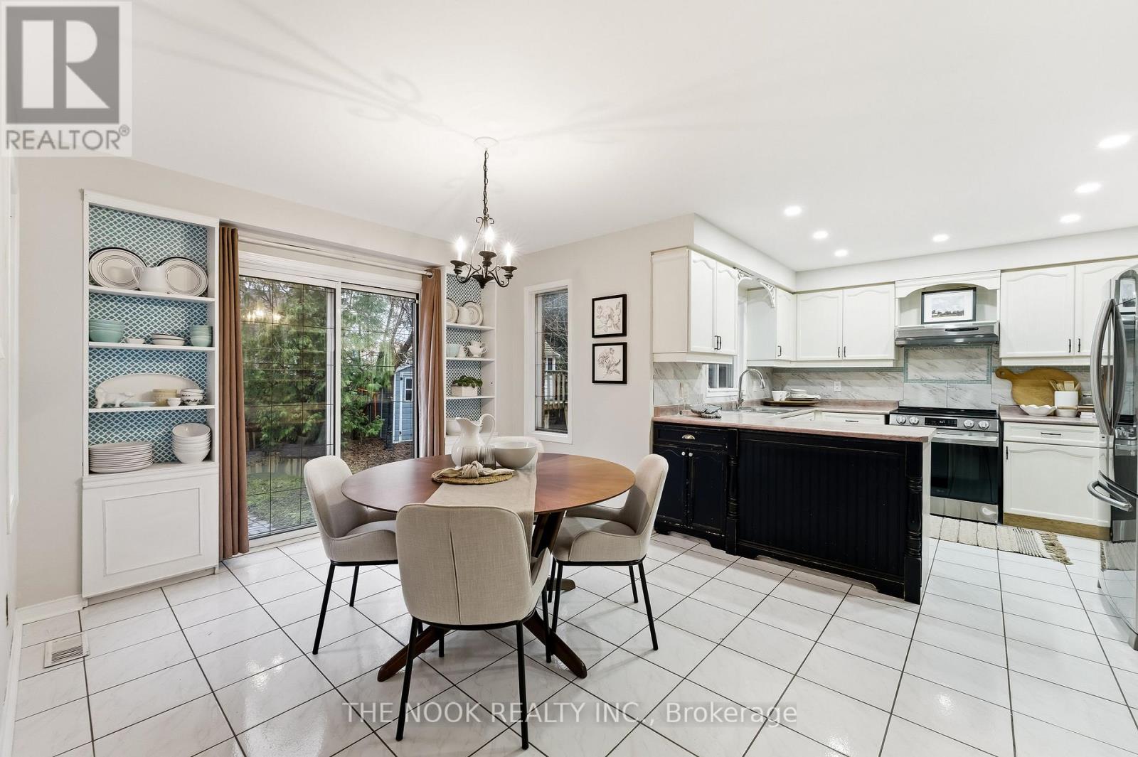 Welcome to 1565 Oakburn St, a beautifully maintained all-brick family home in the highly sought-after Highbush community of Pickering. Offering 2,823 sq ft of thoughtfully designed living space, this 4-bedroom, 3-bathroom residence sits on a premium 49 ft frontage lot with a double car garage and rare 3-car wide driveway. Freshly painted with upgraded lighting throughout, the home presents a bright, move-in-ready interior. The spacious main floor features a rare, highly functional layout with a private office with French doors, separate living and dining rooms, and a welcoming family room-ideal for both everyday living and entertaining. Upstairs, the primary suite offers a large walk-in closet and a spacious private ensuite, creating a true retreat. The huge unspoiled basement with bathroom rough-in provides endless potential to customize additional living space. Step outside to a fully fenced, mature backyard complete with a gazebo and garden shed-perfect for relaxing or hosting. All this, tucked away on a quiet, coveted street just a short walk to top-rated public schools and the Rouge River Park. Enjoy the convenience of being only 5 minutes to Hwy 401 and Pickering's prime shopping, while living in one of the area's most established and family-friendly neighbourhoods. (id:64974)