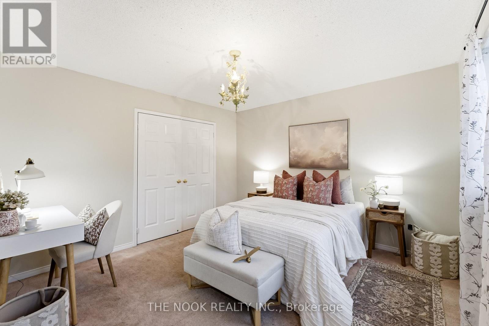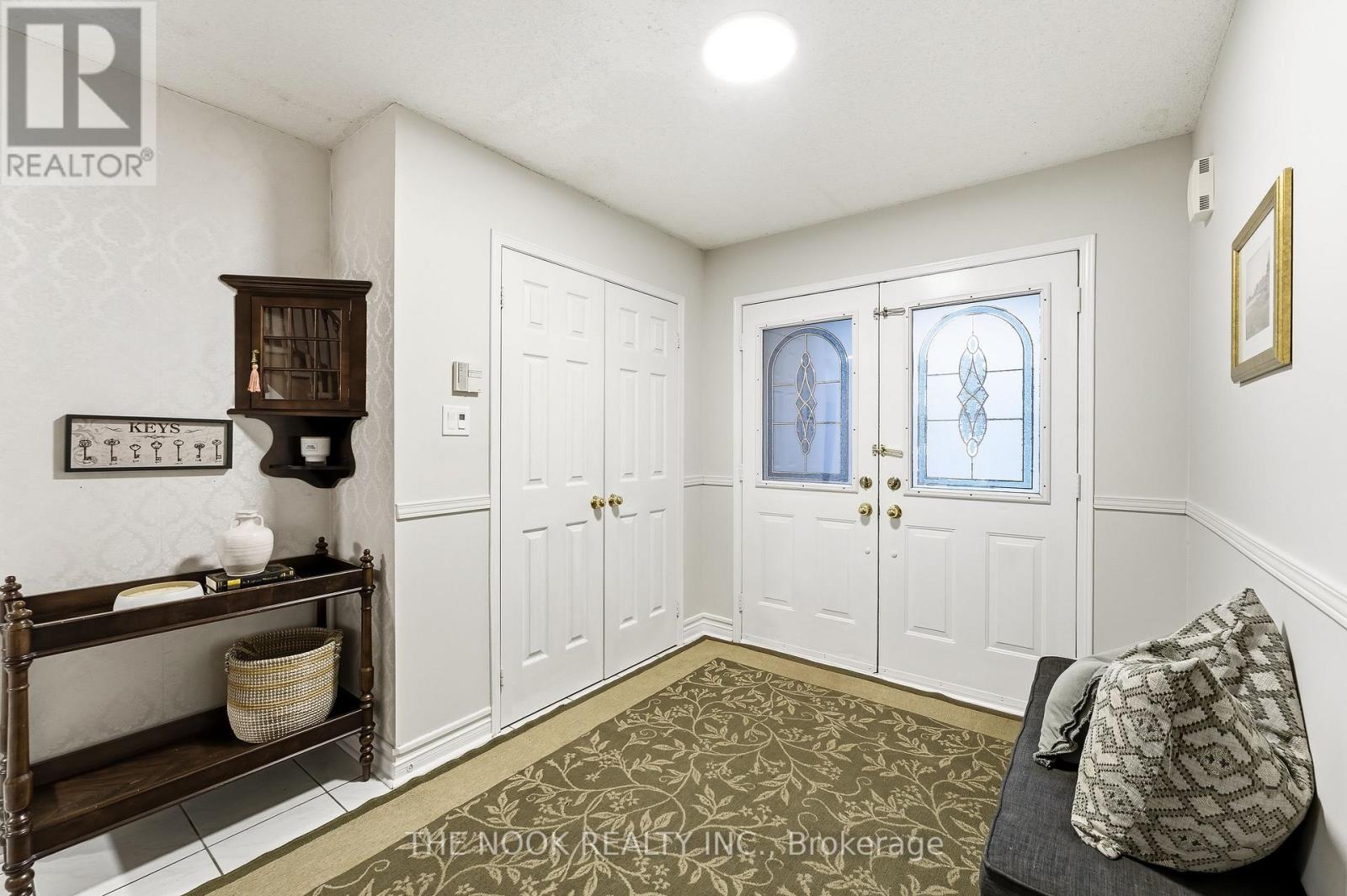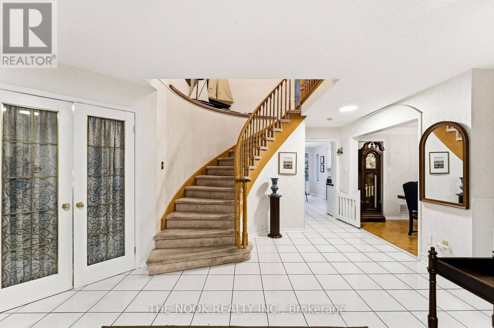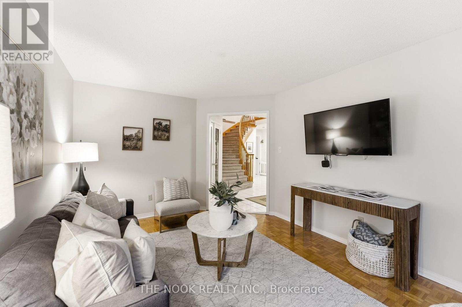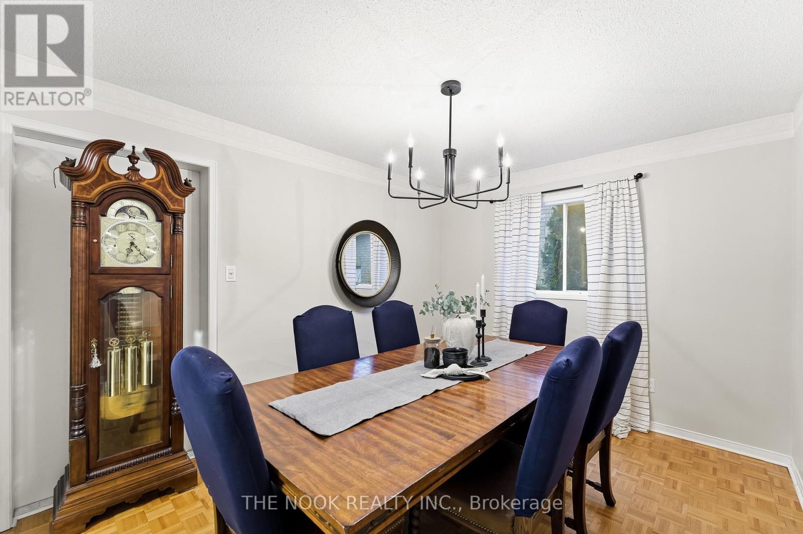 Welcome to 1565 Oakburn St, a beautifully maintained all-brick family home in the highly sought-after Highbush community of Pickering. Offering 2,823 sq ft of thoughtfully designed living space, this 4-bedroom, 3-bathroom residence sits on a premium 49 ft frontage lot with a double car garage and rare 3-car wide driveway. Freshly painted with upgraded lighting throughout, the home presents a bright, move-in-ready interior. The spacious main floor features a rare, highly functional layout with a private office with French doors, separate living and dining rooms, and a welcoming family room-ideal for both everyday living and entertaining. Upstairs, the primary suite offers a large walk-in closet and a spacious private ensuite, creating a true retreat. The huge unspoiled basement with bathroom rough-in provides endless potential to customize additional living space. Step outside to a fully fenced, mature backyard complete with a gazebo and garden shed-perfect for relaxing or hosting. All this, tucked away on a quiet, coveted street just a short walk to top-rated public schools and the Rouge River Park. Enjoy the convenience of being only 5 minutes to Hwy 401 and Pickering's prime shopping, while living in one of the area's most established and family-friendly neighbourhoods. (id:64974)