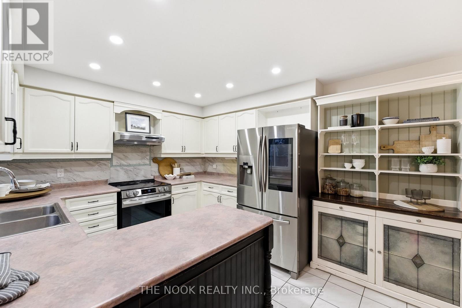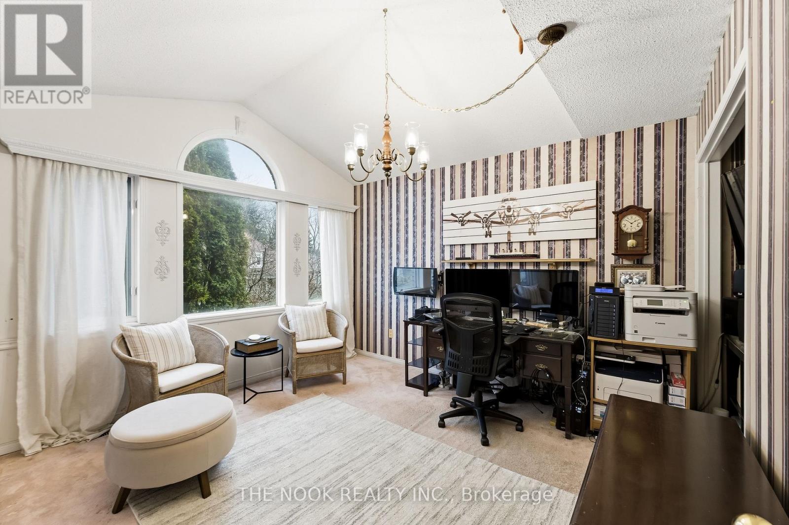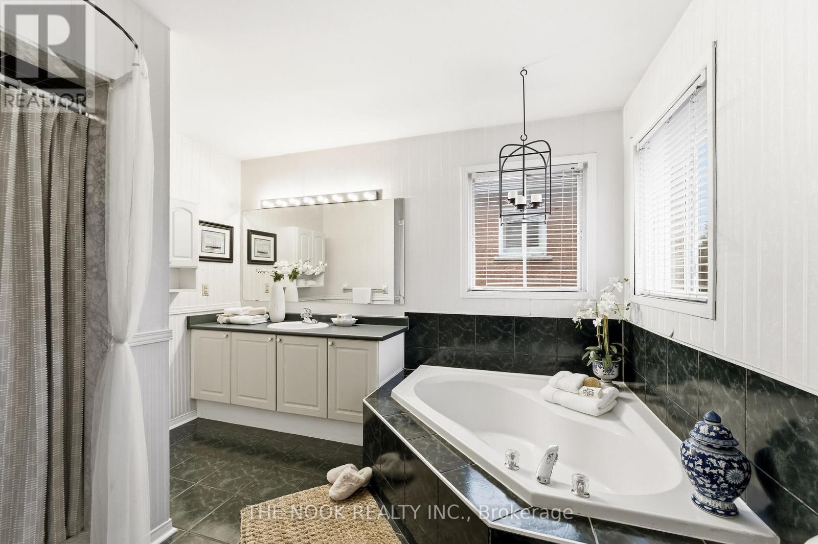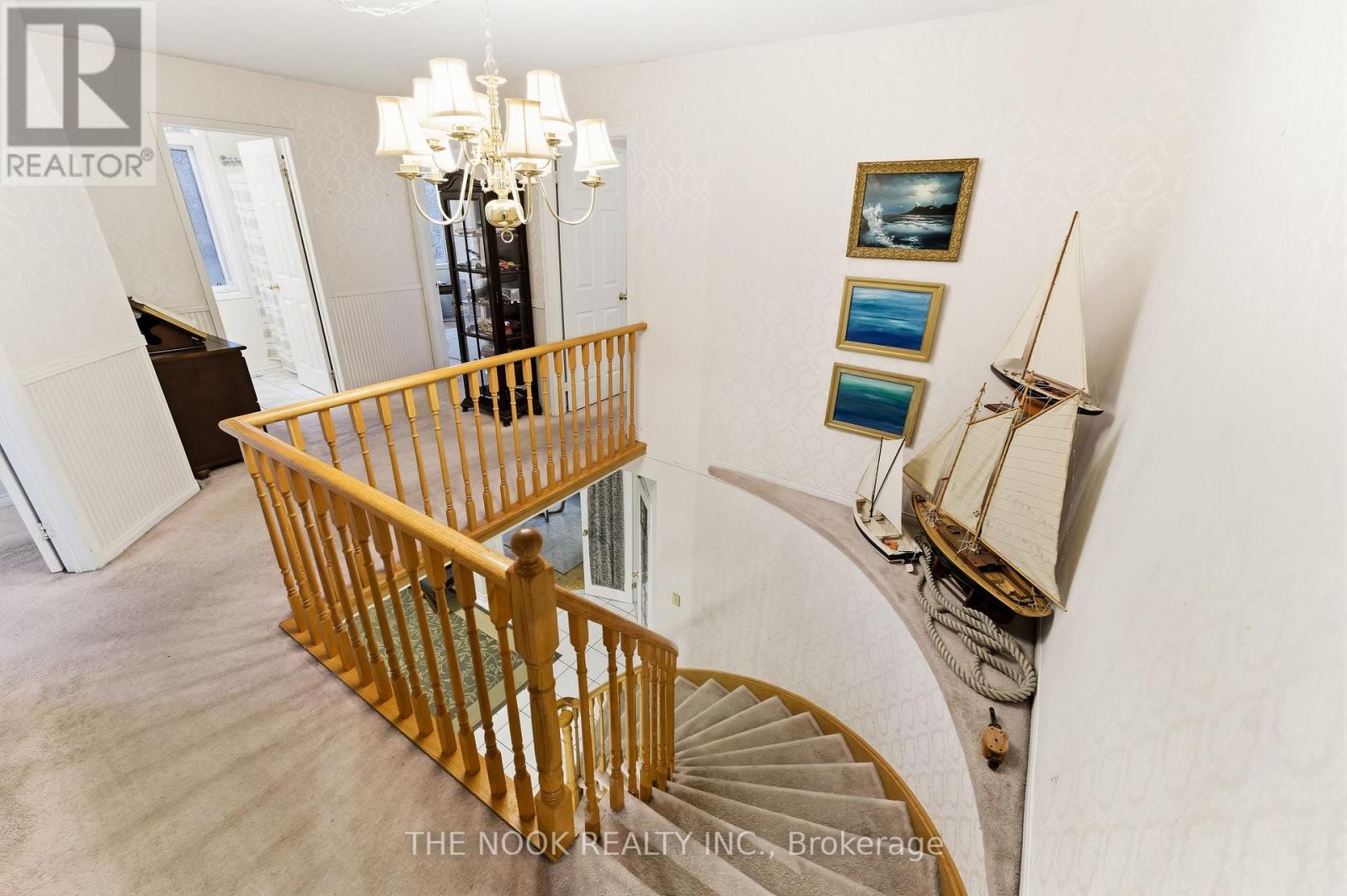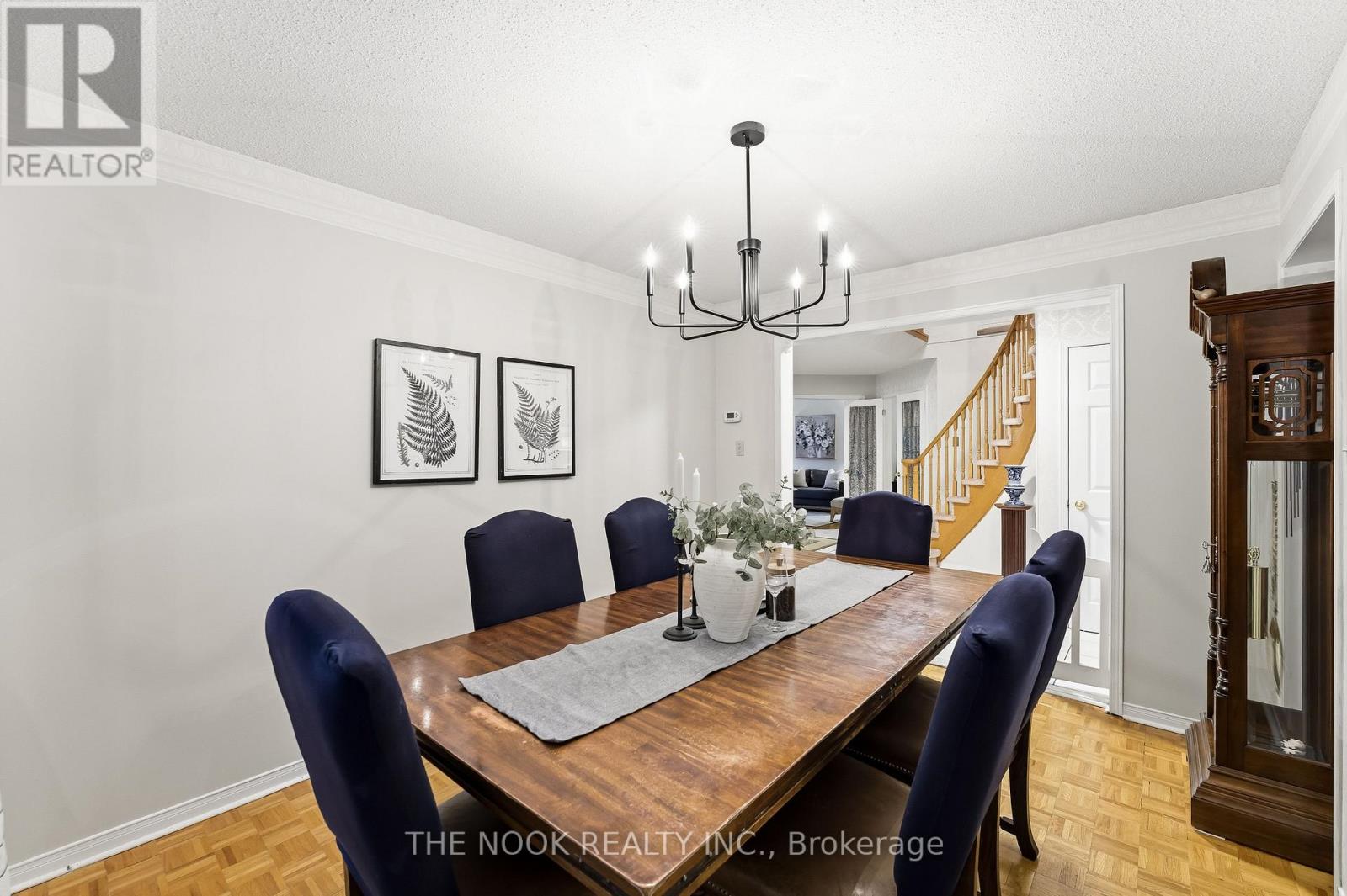 Welcome to 1565 Oakburn St, a beautifully maintained all-brick family home in the highly sought-after Highbush community of Pickering. Offering 2,823 sq ft of thoughtfully designed living space, this 4-bedroom, 3-bathroom residence sits on a premium 49 ft frontage lot with a double car garage and rare 3-car wide driveway. Freshly painted with upgraded lighting throughout, the home presents a bright, move-in-ready interior. The spacious main floor features a rare, highly functional layout with a private office with French doors, separate living and dining rooms, and a welcoming family room-ideal for both everyday living and entertaining. Upstairs, the primary suite offers a large walk-in closet and a spacious private ensuite, creating a true retreat. The huge unspoiled basement with bathroom rough-in provides endless potential to customize additional living space. Step outside to a fully fenced, mature backyard complete with a gazebo and garden shed-perfect for relaxing or hosting. All this, tucked away on a quiet, coveted street just a short walk to top-rated public schools and the Rouge River Park. Enjoy the convenience of being only 5 minutes to Hwy 401 and Pickering's prime shopping, while living in one of the area's most established and family-friendly neighbourhoods. (id:64974)