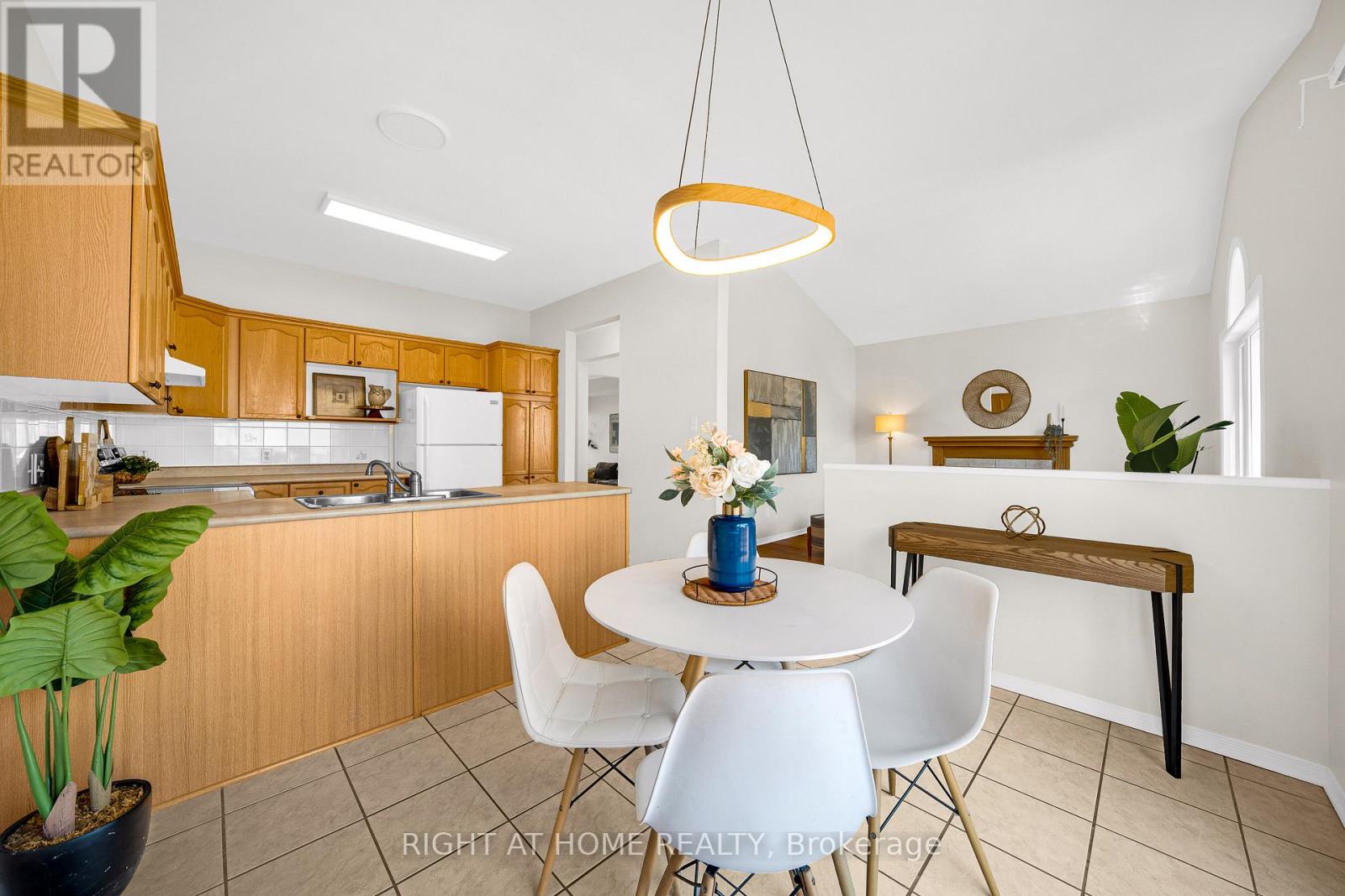 Welcome to this bright and beautifully maintained Phoenix Addison model offering approximately 1,986 sq. ft. plus a fully finished lower level, ideally situated in a sought-after, family-friendly neighbourhood close to all amenities. This spacious 3+1 bedroom home features impressive cathedral ceilings, gleaming hardwood and ceramic flooring, and a welcoming foyer that sets the tone throughout. The thoughtfully designed layout includes generous living and dining areas perfect for entertaining, and an eat-in kitchen with abundant cabinetry and counter space that flows seamlessly into the cozy family room with fireplace. The upper level boasts a stunning primary retreat with cathedral ceiling, a wall of windows, and a walk-in closet, along with two additional well-sized bedrooms. The fully finished lower level offers exceptional versatility with a large recreation room. The fully finished lower level offers excellent potential for an in-law or guest room. The fully fenced private backyard complete with a spacious deck make this home perfect for both relaxing and entertaining. Pride of ownership is evident throughout this exceptional property ! ( All windows & patio door 2024 ) (id:64974)