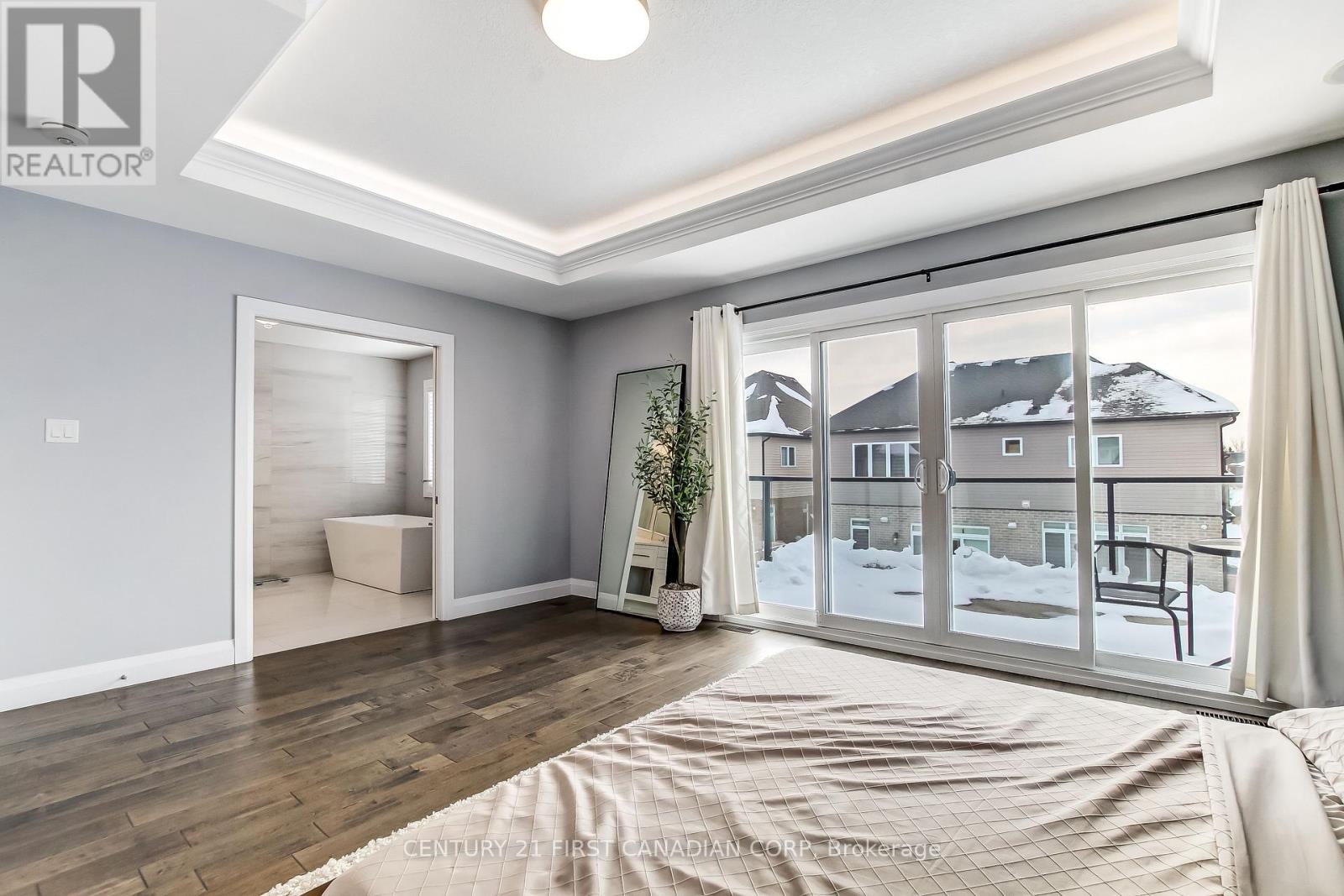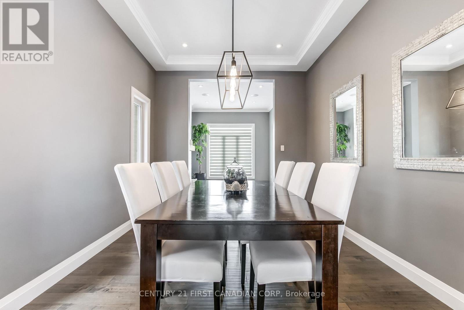 Located in beautiful Fanshawe Ridge, this 3000+ sqft family home is loaded with gorgeous quality finishes, style and contemporary design. This home features 4 generous bedrooms, 3.5 bathrooms, main floor office, spacious living room, elegant formal dining room and an amazing kitchen overlooking your comfortable family room. Granite countertops throughout, upgraded trim levels, gorgeous tile, gourmet kitchen, waffled ceilings, feature wall, engineered hardwood, transom windows, and so much more.Spacious basement with 9-foot ceilings-an open canvas ready for your creative vision. Fully fenced yard featuring well maintained landscaping, concrete walkways, covered patio deck and a fire pit-perfect for outdoor gatherings. Nestled in a calm neighbourhood and conveniently located near a brand-new plaza filled with great amenities. (id:64974)