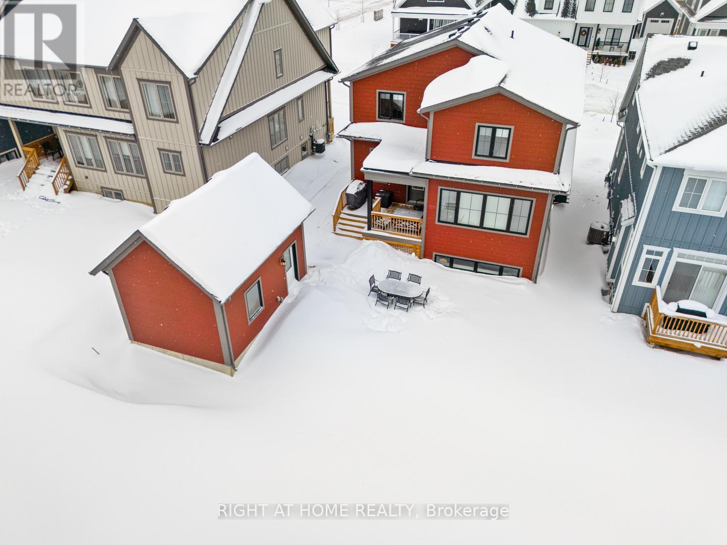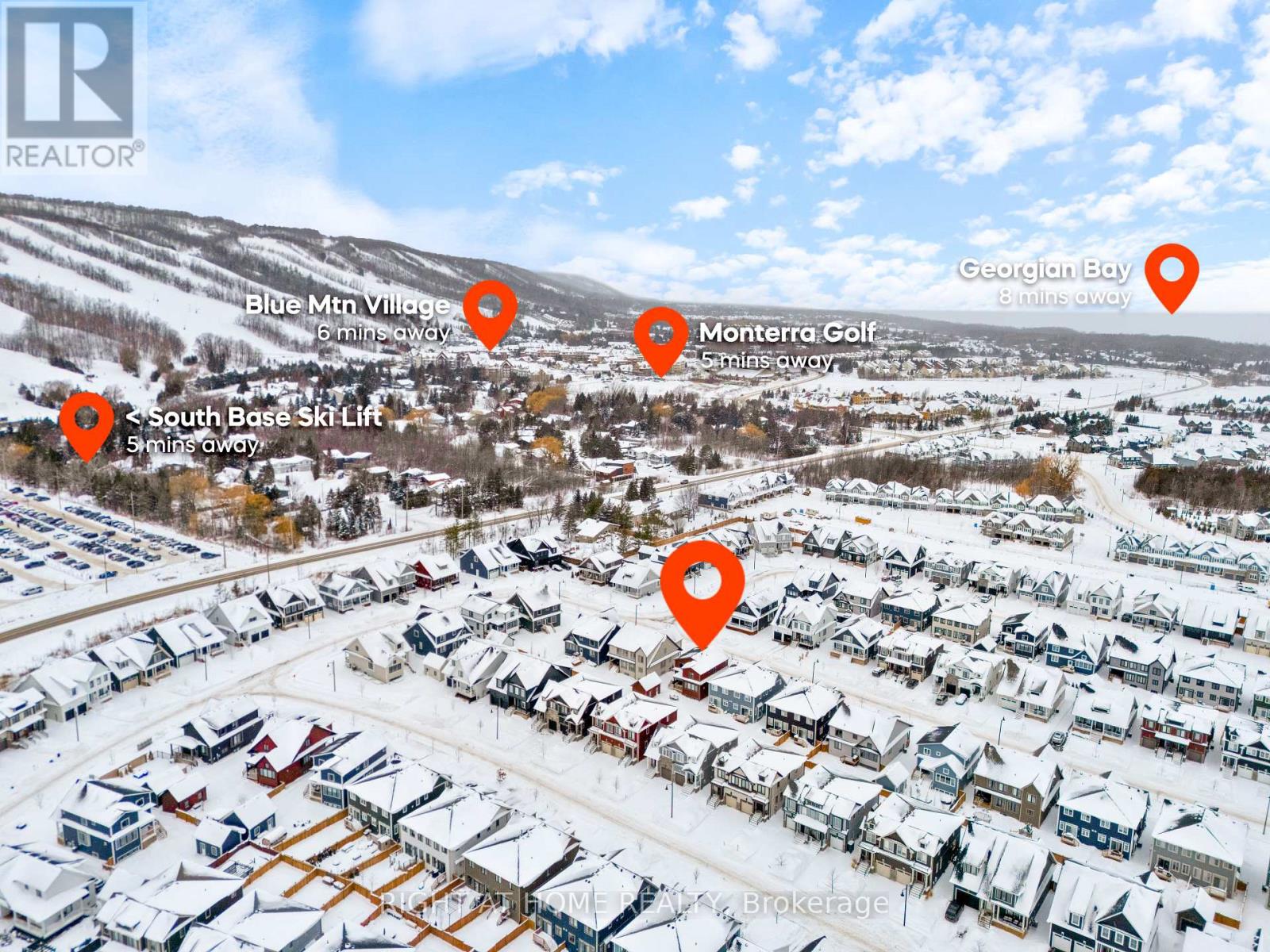 Welcome to this newly built & highly sought-after Wabeck model in Windfall, offering over 3,600 sq ft of upgraded living space. Filled w/ natural light on all levels, this home features pot lights throughout (incl all upper beds & bsmt), 9 ft ceilings on main floor, & a smart thermostat.The main floor offers a dedicated home office, spacious living room w/ gas fireplace, electric blinds, high-end light fixtures, stylish powder room w/ floating sink, & rear mudroom-style entry w/ backyard access. The upgraded kitchen features granite c/tops & backsplash, undermount lighting, S/S applicances, extended layout, & extra-long centre island w/ add'l cabinetry. Pantry + extra storage closet, plus large main floor laundry w/ brand-new quartz c/tops.Upstairs, the primary bed offers a large W/I closet & luxury 5-pc ensuite w/ soaker tub, glass shower, heated floors, new quartz c/tops, & custom mirrors. Spacious upstairs bedrooms w/ window coverings throughout, bedroom #2 W/I closet, plus upstairs 4-pc shared bathroom.The fully finished bsmt (2025) features large rec/fam room ideal for entertaining or movie nights, +2 additional bedrooms, 3-pc bath, pot lights throughout, & custom ski-boot nook at landing. Exterior highlights include inviting front porch, rear deck w/ BBQ gas line, detached garage w/ power & custom shelving. Parking for up to 5 cars in drive + 1 in garage, incl 240V ext EV plug. Min to Blue Mtn ski hill, village, golf & yr-round recreation. Includes access to private clubhouse & spa "The Shed" w/ yr-round large hot tub, pool, sauna, fitness room, party room w/ kitchen, outdoor patio, BBQ area & play field. More info & video tour: www.Bluewin.ca/157-Courtland (id:64974)