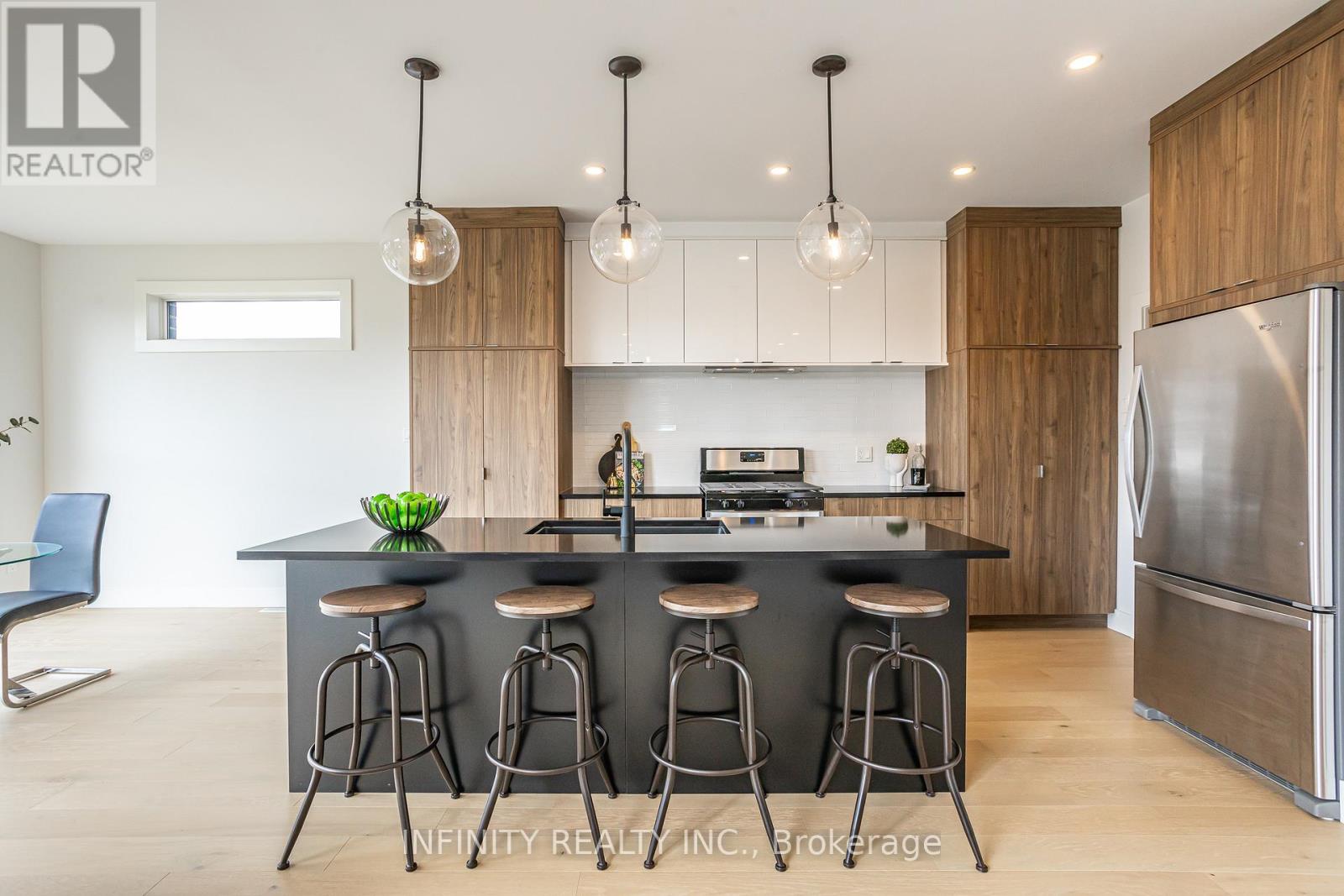 Step into luxury and contemporary elegance with this stunning 2 storey home located in prestigious Kilworth. This LIKE NEW 4 Bed, 4 Bath exquisite residence is the epitome of modern living. Sprawling across 3,953 sq ft including 2784 sq ft above grade finished space and with a 4 year Tarion New Home Warranty still remaining for your ultimate peace of mind. As you step inside, you are greeted by a grand foyer featuring soaring ceilings & a sweeping staircase that sets the tone for the elegance that flows throughout the home. The spectacular main level boasts an open concept design, drenched in natural light from floor-to-ceiling windows, with rich hardwood floors. The living room, complete with a gas fireplace, seamlessly connects to the dining area, perfect for entertaining.The stylish, modern gourmet kitchen is a chef's dream, adorned with quartz countertops, a large island & a pantry for ample storage. Adjacent to the kitchen is a breakfast area with patio doors that open to a large, fully fenced yard. Convenience is key with a main level mud room with laundry situated just off the kitchen & a 2pc Bath for guests. Upstairs, the bright & spacious primary bedroom is a serene retreat, featuring vaulted ceilings, a large walk-in closet & a spa-like 5pc ensuite bath with dbl sinks, a soaker tub & glass shower. The second floor also includes 3 additional generously sized bedrooms, a 4pc Jack & Jill bath with dbl sinks, glass shower & another full 4pc bath, ensuring ample space and privacy for the whole family. This home comes with a 2 car attached garage & is situated in a fantastic neighborhood near schools, golf courses, YMCA, Komoka provincial park, walking trails, playgrounds, hockey arena, shopping & more. A brand new catholic elementary school and childcare centre is currently under construction just across the street from the property, making this an ideal location for growing families. Sq Ft as per iguide.Don't miss your chance to own this extraordinary home. (id:64974)
