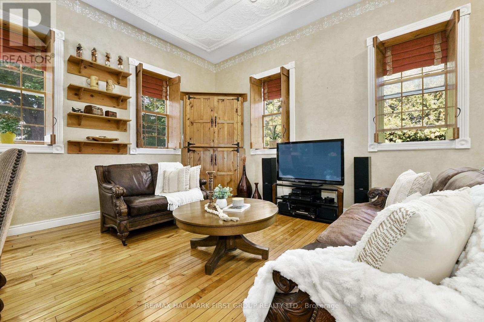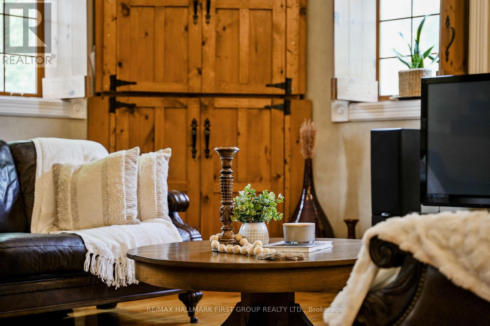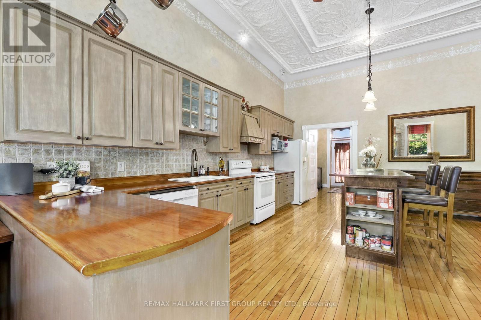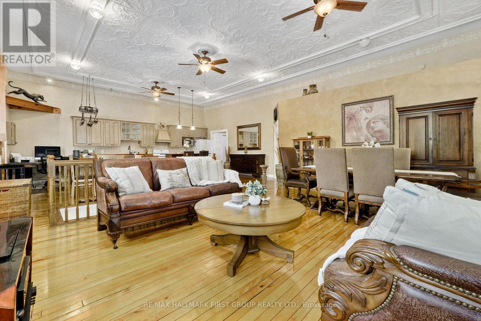 Once a historic schoolhouse, now beautifully transformed into a one-of-a-kind residence, this home is filled with character and charm, built in the early 1900s and thoughtfully updated for modern living. This unique property features a finished lower level with a separate entrance, ideal for a home-based business, in-law suite, or private guest retreat, as well as a backyard oasis that feels like a world of its own. The open principal living space showcases soaring original hand-hammered tin ceilings that have been powder-coated white, creating an unforgettable statement. Sunlight streams through large windows with custom wood shutters, illuminating the spacious living and dining areas designed for effortless entertaining. The expansive eat-in kitchen features an island with a breakfast bar, pendant lighting, matching appliances, a tile backsplash, and a walkout to the back deck. A cozy breakfast area with exposed brick is the perfect spot for informal family meals. On the main floor, you'll find the primary suite complete with dual closets, a private walkout, and a bathroom. Downstairs, the updated lower level offers a large recreation room with recessed lighting, perfect for lounging or game nights. A spacious bedroom, office or guest bedroom, three-piece bathroom and a powder room, plus a laundry room, provide excellent flexibility for today's needs. The outdoor spaces are just as captivating. A welcoming front deck sets the tone for morning coffee, while the backyard unfolds into a true retreat. Enjoy summer afternoons by the pool with a deck surround, relax beneath mature trees (including fruit trees), or wander through vibrant gardens. A rustic gazebo by the koi pond invites quiet moments, and even a chicken coop adds to the charm of this remarkable property. Ideally located close to schools, amenities, and access to the 401, this home seamlessly blends timeless character with modern convenience, a rare find ready to be cherished. (id:64974)
