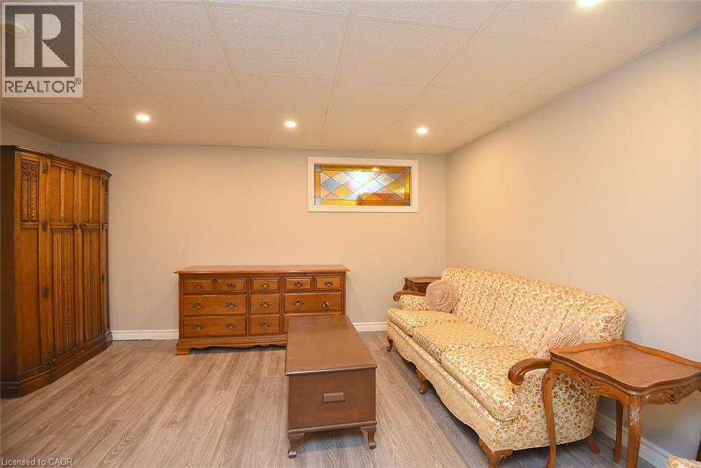 Enjoy carefree living at the Villages of Glancaster. This bungalow style townhome features an open concept layout with 1000 sq. ft. of living space complete with 9 foot ceilings. The primary bedroom features a large walk-in closet and 3 pc. ensuite bathroom. Additionally there is a fully finished basement level. The basement includes: family room (no window), second bedroom with walk- in closet (no window), 4 piece bath and storage room. Recent Improvements include: fresh paint throughout, kitchen cabinets refaced, double pantry added, double sink with faucet, kitchen laminate countertop, fridge and dishwasher, bay window and California shutters in kitchen dinette, custom front & storm doors, garage door, sliding door in living room leading to the new back deck with replaced fencing, extensive pot lights on both levels. This active community offers an onsite Country Club with saltwater pool, gym, exercise classes, organized social activities, craft club, 2 outdoor tennis courts, library, billiards, pickle ball, card games and much more. The monthly condo fee includes: lawn care, snow removal from driveways and front walkway, water & sewer, high-speed internet, cable TV, reserve fund contribution, and the use of the Country Club. RSA. (id:64974)