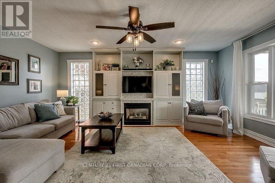 Welcome to this stunning executive two-storey home in sought-after Tiner Estates, where generous proportions and thoughtful upgrades define every space. Boasting 4+1 bedrooms and 3.5 bathrooms, this home offers exceptional room sizes throughout - ideal for growing families and effortless entertaining. The main level features a beautifully appointed kitchen with full-height cabinetry, Corian countertops, gas stove, and an oversized island perfect for gathering. The open living space is anchored by a built-in entertainment unit with gas fireplace, creating a warm and inviting focal point. A convenient main floor laundry/mudroom adds everyday functionality. Upstairs, the spacious primary retreat offers a large walk-in closet and an impressive, fully updated ensuite designed for comfort and relaxation. The fully finished lower level expands your living space with a walk-out to the backyard, wet bar, and expansive recreation room - ideal for hosting and family fun. Step outside to your private backyard oasis featuring a heated fiberglass in-ground pool (2017) with lifetime warranty and low-salt system, updated landscaping (2017), full fencing, and front & back sprinkler systems. Multiple walk-outs to the deck enhance indoor-outdoor living. Additional highlights include a rare 3-door garage with 4 parking spaces and pull-through access. Located minutes from parks, trails, schools, shopping, Hwy 401 access, and London International Airport - this home truly offers the complete package. (id:64974)