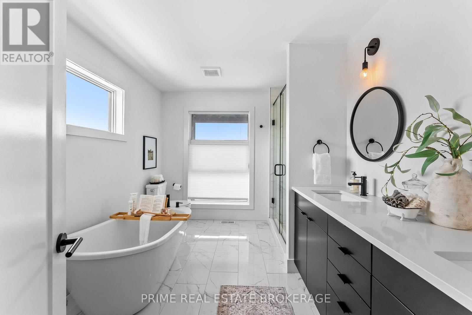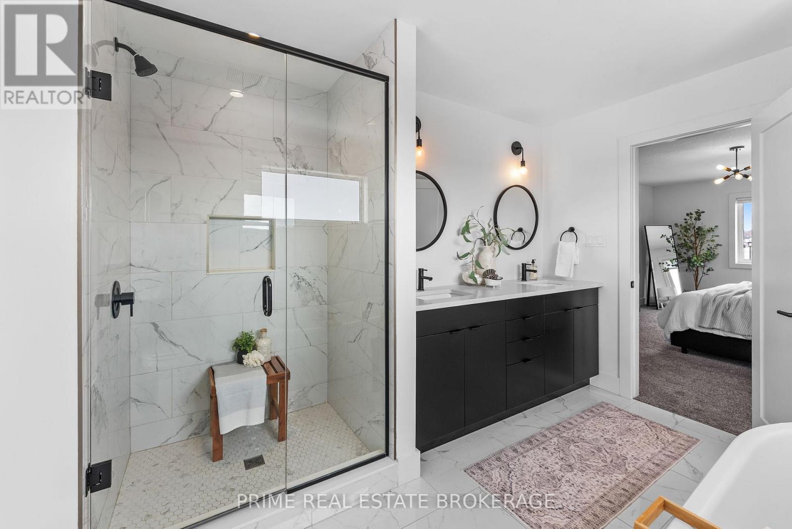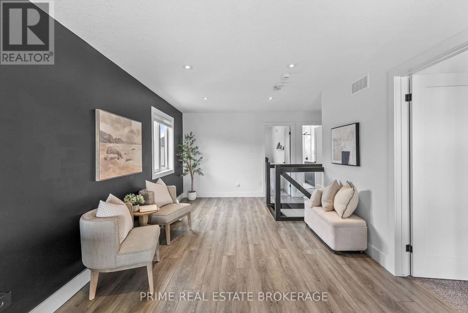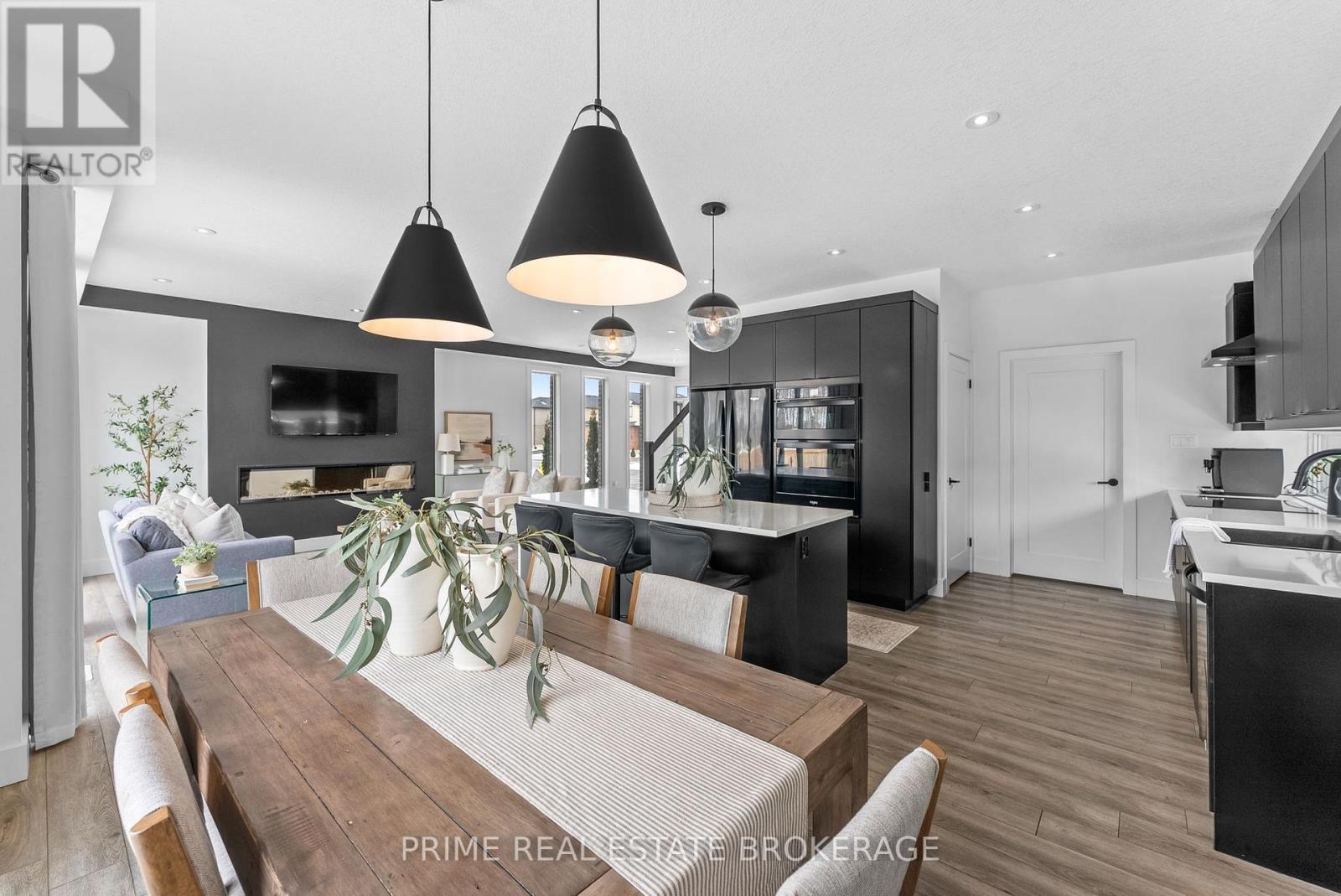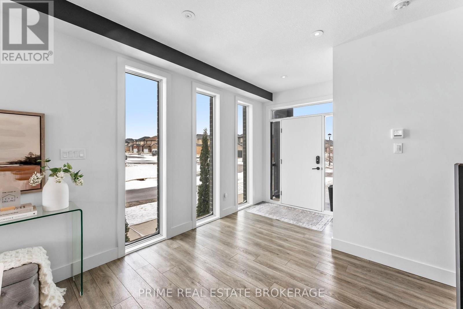 Finally, a property that delivers immediate value. If you have been waiting for a property in the highly sought after Foxhollow neighbourhood, where absolutely all the heavy lifting is already done, this is it. This striking property built by Hazzard Homes delivers massive, immediate value right out of the gate. Move in and instantly enjoy a fully finished basement, private fenced backyard, and a newly built custom deck with a beautiful view. Commanding attention from its premium corner lot, the modern exterior features an attached two car garage and a standout second floor glass balcony. This stunning architectural feature is the ultimate outdoor retreat.Just inside the balcony you'll find a spacious, versatile upper level landing, the perfect footprint for a comfortable home office or an inviting second family room. The primary bedroom offers distant woodland views, a spacious walk-in closet, and a stunning 5 piece ensuite featuring quartz countertops, a double vanity, and a relaxing soaker tub. Beautifully selected finishes with a highly functional, open concept design define every square inch of the main floor. The home centers around a chef inspired kitchen with a striking island that anchors the living and dining area, keeping the entire main floor flowing and connected. The location truly completes the package. You are steps away from the green spaces of Foxfield District Park and zoned for London's most in demand schools, including North West, St. Gabriel, Sir Frederick Banting, and Mother Teresa. If you've been searching for a property where every detail has already been perfected, your search ends here. (id:64974)