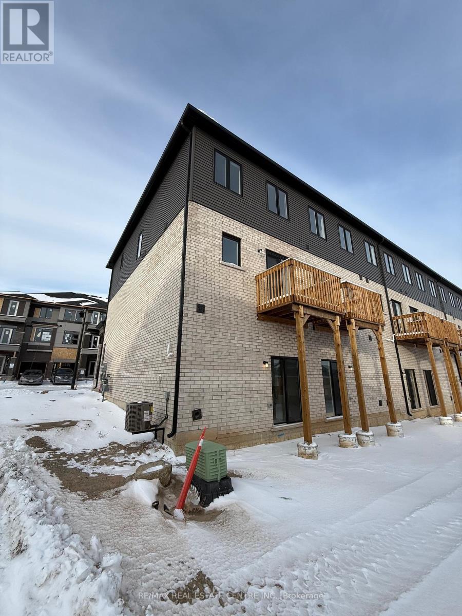 Experience contemporary living at its finest in this brand-new, never-lived-in corner freehold townhouse featuring 3 spacious bedrooms and 2.5 stylish bathrooms, ideally located in Brantford's prestigious Sienna Woods West community. Set on a premium walk-out ravine lot backing onto lush green space, this end-unit home offers a bright open-concept design with 9-foot ceilings, large windows that fill the space with natural light, and high-end finishes throughout. Built by a renowned builder, the home showcases a modern brick and stucco exterior, a walk-out basement, and a sleek contemporary kitchen with elegant cabinetry, with new stainless steel appliances and blinds to be installed prior to move-in. The spacious primary suite features a walk-in closet, an additional closet, and a private ensuite, complemented by two generous secondary bedrooms and a convenient main-floor laundry area. All finishing work will be completed before occupancy to ensure a truly turn-key experience. Perfectly located near the Grand River, parks, scenic trails, schools, shopping, Wilfrid Laurier University, and with quick access to Highways 403 and 401, this exceptional home offers the best of modern comfort, convenience, and natural beauty, an ideal rental opportunity in a thriving, family-friendly neighborhood. (id:64974)