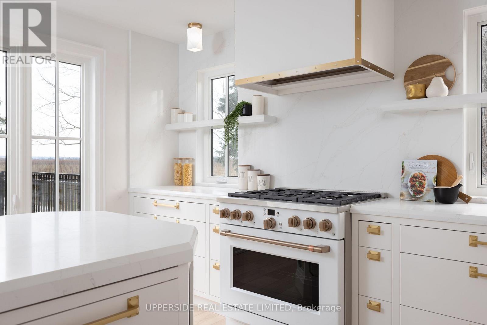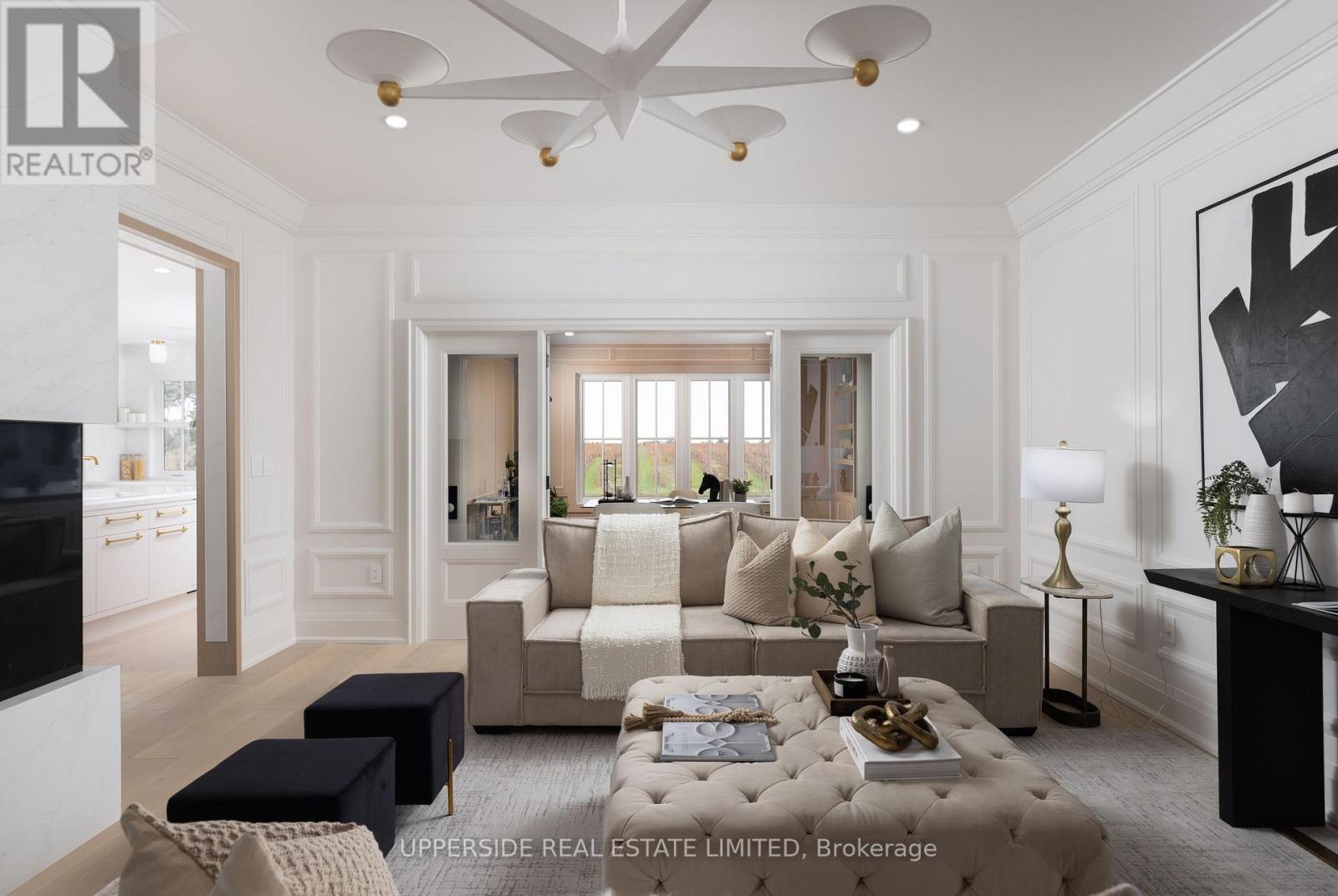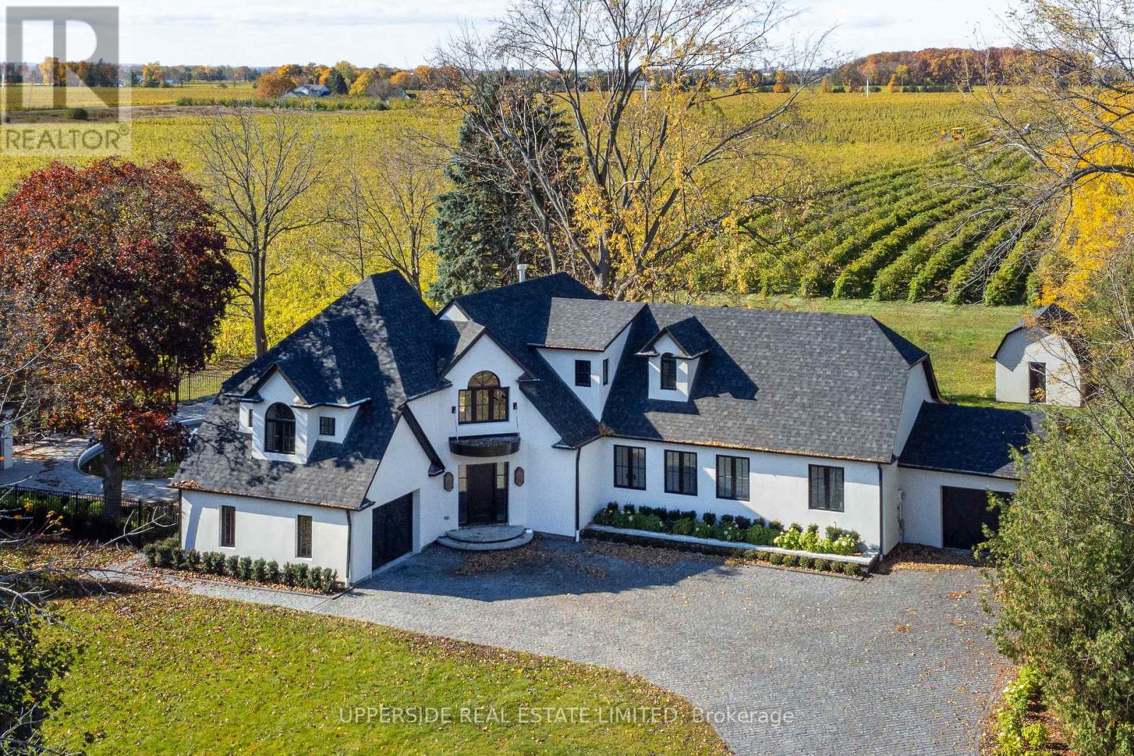 *Niagara Wine Country Estate with Vineyard Backdrop on Niagara River Parkway* Just a short drive from Toronto, this fully renovated wine-country estate offers a rare opportunity to own a private retreat in the heart of Niagara-on-the-Lake.Located along the scenic Niagara River Parkway, the 1.5-acre property backs directly onto vineyards and enjoys unobstructed views of the Niagara River-one of the most sought-after settings in Ontario's wine region.Originally the residence of a vineyard owner, the home has been completely redesigned and renovated, with every interior space rebuilt using custom finishes, bespoke millwork, and carefully selected materials. The result is a sophisticated wine-country residence that combines craftsmanship, privacy, and lifestyle.The approx. 3,900 home features 4 bedrooms & 4 bathrooms, expansive living areas for entertaining, and large windows framing vineyard and river views throughout the home.Outdoor living is designed for relaxed weekends and gatherings with family and friends. Landscaped grounds surround a resort-style saltwater pool, while multiple terraces provide ideal spaces for outdoor dining and sunset views over the vineyards.A detached barn offers additional possibilities for future owners, with potential to create a studio, wellness retreat, or private guest space.This property is perfectly positioned for the Niagara lifestyle. From the front of the home, the scenic Niagara River recreational trail provides direct access to one of Ontario's most beautiful cycling routes. Within minutes are many of Niagaracelebrated wineries, restaurants, and golf courses, making the property an ideal weekend escape for wine lovers, golfers, and outdoor enthusiasts from the GTA. Private, fully renovated, and surrounded by vineyards and river views, this exceptional property offers a rare opportunity to own a true wine-country retreat just outside Toronto. (id:64974)