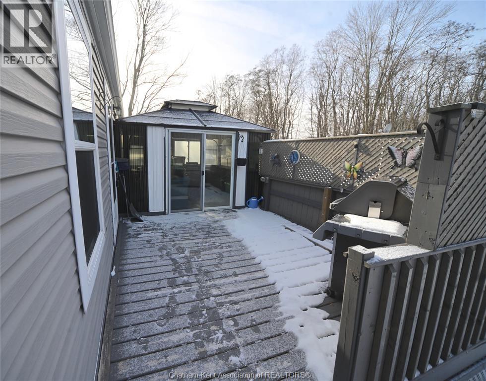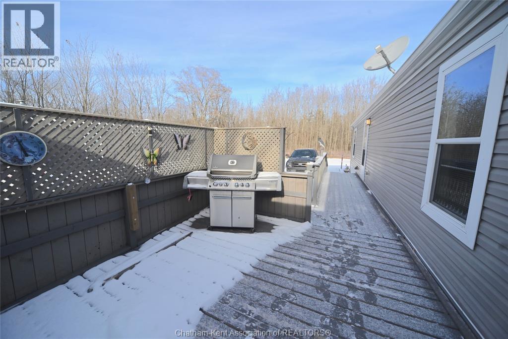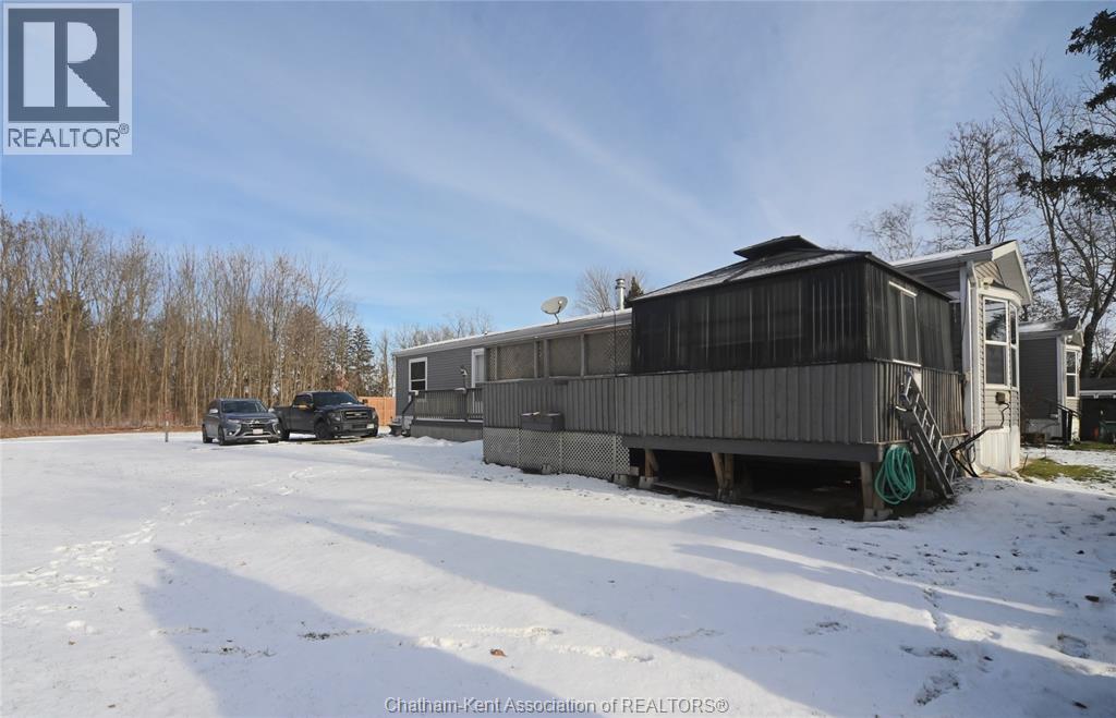 Why buy a money pit fixer upper when for the same price or less you can skip the stress and move right into the ultimate low maintenance mobile where everything is only 6 years old? Don't put yourself in the middle of a busy questionable park either, this spot has only a handful of units that are all new and well kept, so you have lovely neighbours in a very small community, designed for retirement age residents only (55+) and flanked by beautiful forest, complete with a walking trail. Affordable living that is modern, comfortable and with attractive country surroundings is hard to find, but this is it. This 2019 model is a spacious 60' x 14' 2 bedroom with a big living room window view, lots of kitchen with an open concept, a generous bathroom with more space and storage closets than your average mobile. Forced air propane furnace with central air, a deck that runs the length of the home and a private BBQ spot and enclosed gazebo. The 8' x 12' storage shed and gasoline generator is super handy and two parking spots are a plus. $525 monthly park fees include water, garbage and snow removal for the lane in. Daily amenities are nearby in Newbury, Glencoe, Bothwell or Thamesville so you can enjoy rural life with small town conveniences here. (id:64974)