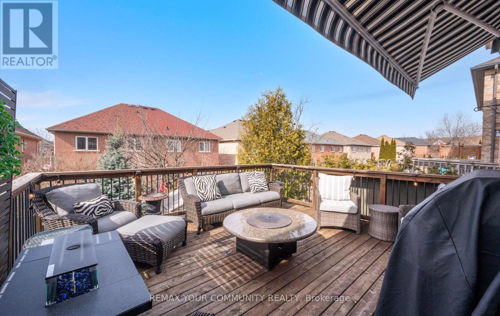 Rarely offered - Beautifully updated semi-detached home in a fantastic central Newmarket location. The main floor features re-engineered hardwood floors (2020) and a spacious eat-in kitchen with quartz counters, breakfast bar, ample cupboard space, cozy built-in banquet seating. The good size family room walks out to a large west-facing deck with a gas fire pit a gas line for bbq and a gorgeous retractable awning-perfect for entertaining. Upstairs offers a huge primary bedroom with a large walk-in closet and ensuite with soaker tub and separate shower. Two additional good-sized bedrooms, one with a walkout to a private balcony. Finished walkout basement with separate entrance is currently tenanted, offering great income potential to help offset the mortgage. Tenant can stay or vacate. Parking for three cars on the driveway. Numerous updates include windows, doors, and garage door (2020), shingles (2018), heat pump and furnace (2023), and plush carpeting on stairs within the last three years. Very tastefully decorated Shows beautifully! (id:64974)