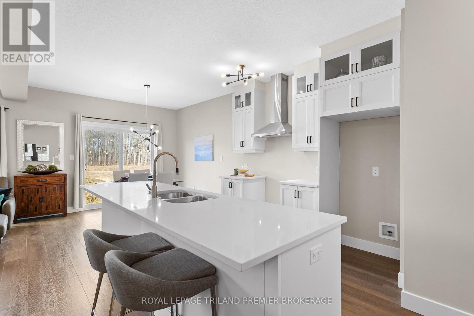 TO BE BUILT! Sunlight Heritage Homes presents The Broderick. 1949 sq ft of expertly designed living space located in desirable Old Victoria on the Thames. Enter into the generous open concept main level featuring kitchen with quartz countertops, 36" upper cabinets with valance and crown moulding, microwave shelf and island with breakfast bar; great room with 9' ceilings and large bright window, dinette with sliding door access to the backyard and convenient main floor 2-piece bathroom. The upper level includes 4 spacious bedrooms including primary suite with walk in closet and 4-piece ensuite with double sinks; laundry closet and main bathroom. Other standard inclusions: Hardwood flooring throughout main level (except bathroom), 5' patio slider, 9' ceilings on main level, bathroom rough-in in basement, drywalled garage and more! Other lots and plans to choose from. Photos are from previous model and show upgraded items. (id:64974)