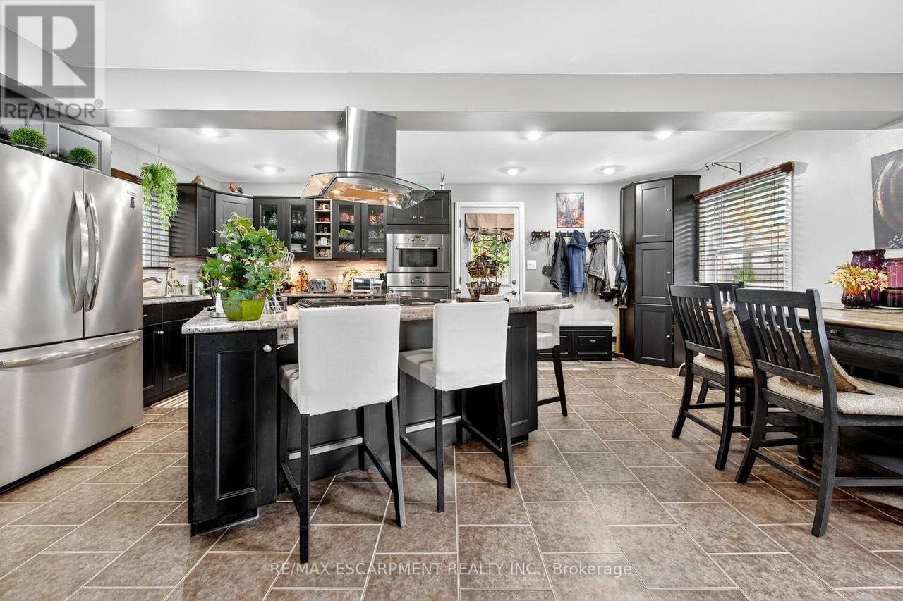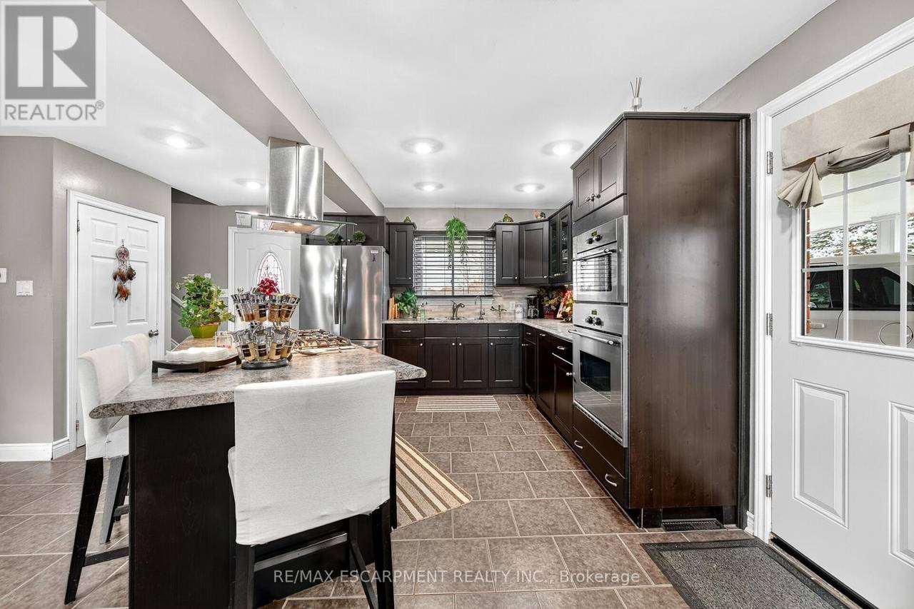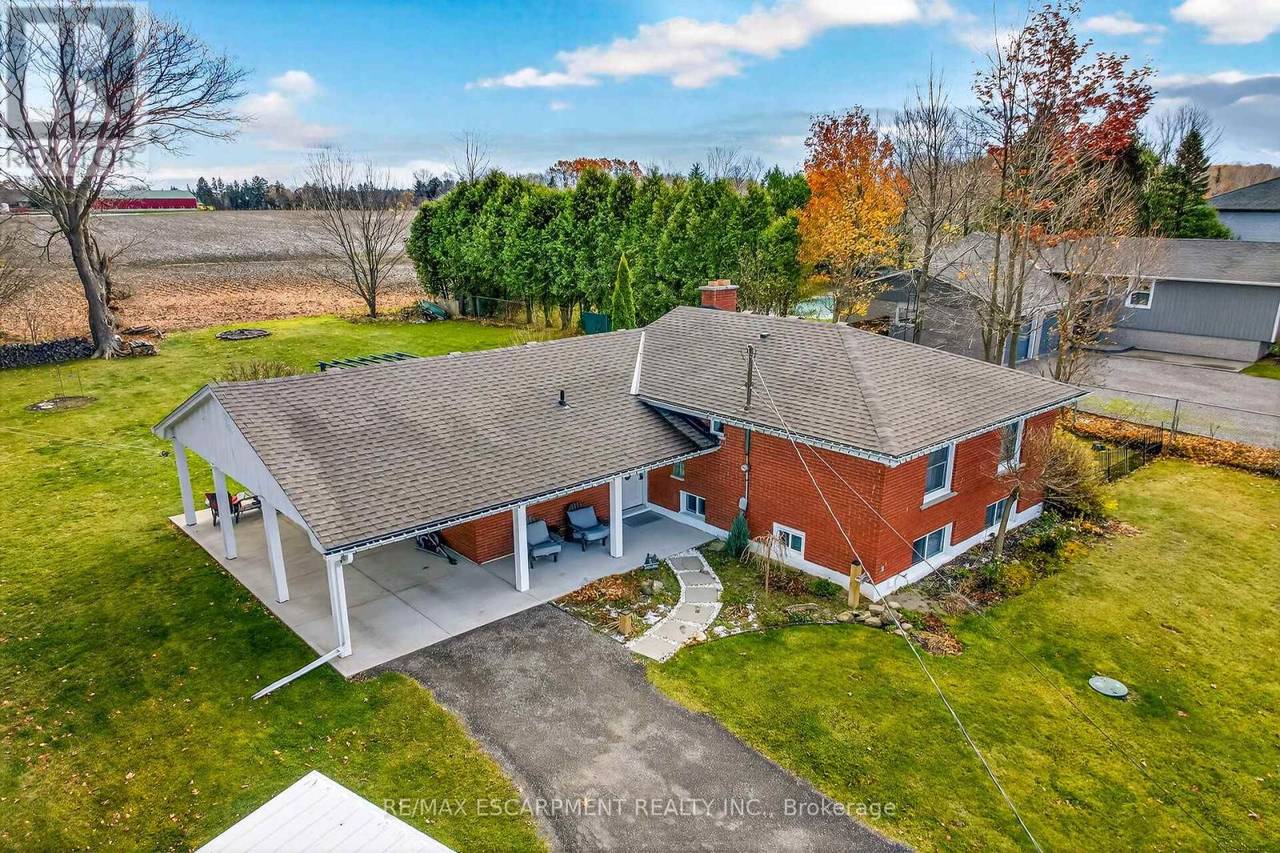 Beautifully presented, Exquisitely updated 3 bedroom, 2 bathroom Sidesplit situated on picturesque 100' x 218' mature lot on sought after Trinity Church Rd. Great curb appeal with all brick exterior, welcoming front walkway leading to covered porch, attached car port, tastefully landscaped, & entertainers dream back yard with recently updated composite deck overlooking calming country views. The flowing interior layout features close to 2000 sq ft of well designed living space highlighted by gourmet kitchen with oversized eat at island, S/S appliances, tile flooring, & backsplash, formal dining area leading to patio, spacious living room, 2 large upper level bedrooms, & updated primary 4 pc bathroom. The finished basement includes rec room, 3rd bedroom, additional 3 pc bathroom, laundry room, & storage area. Conveniently located minutes to Hamilton amenities, restaurants, shopping, schools, parks, & easy access to Red Hill, Linc, QEW, & 403. Upgrades throughout include modern decor, flooring, & fixtures, kitchen, decking, roof shingles - 2019, hi eff N/Gas furnace & A/C. Rarely do properties in this location come available for sale in the price range! Perfect home for all walk of life. Shows well - Just move in & Enjoy! Experience Hannon Country Living at its Finest! (id:64974)