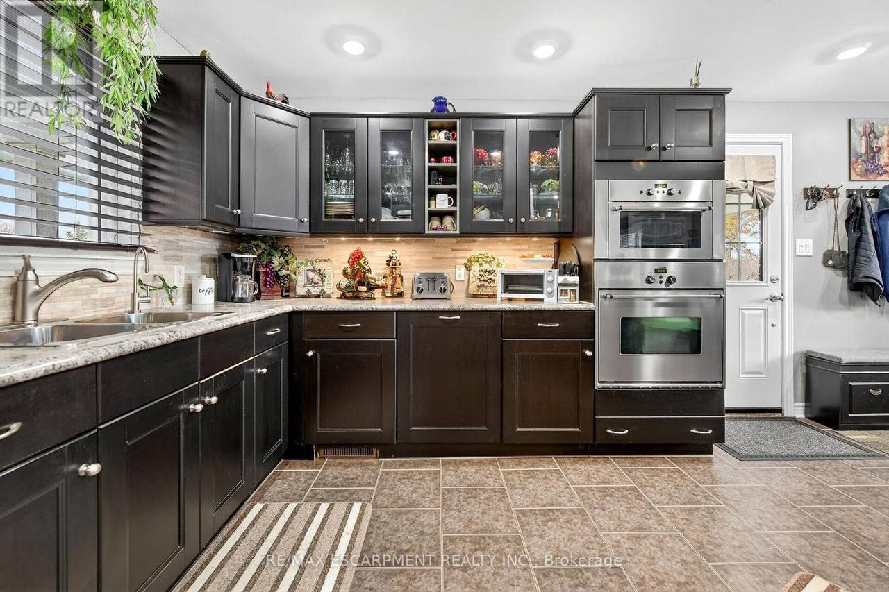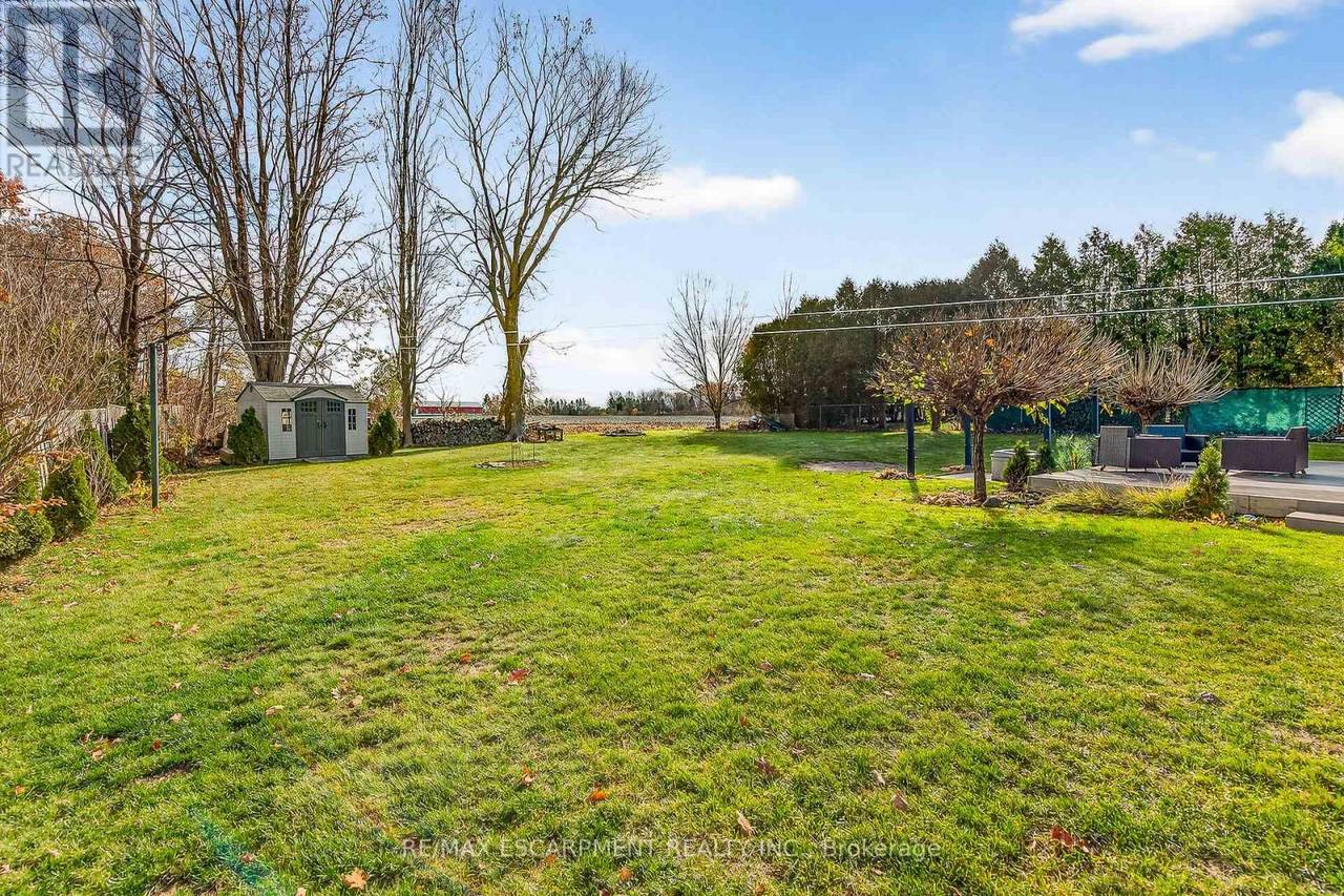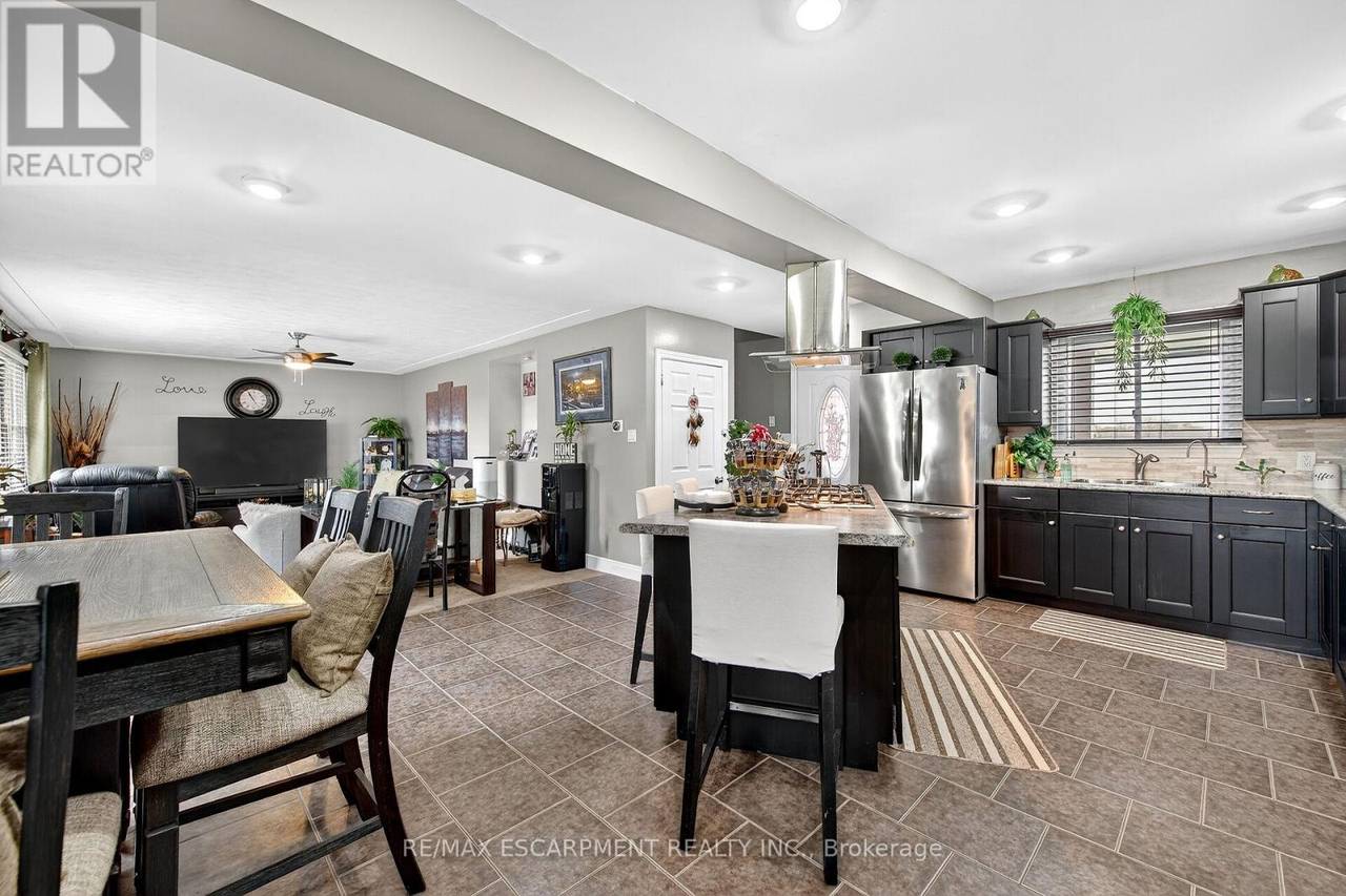 Beautifully presented, Exquisitely updated 3 bedroom, 2 bathroom Sidesplit situated on picturesque 100' x 218' mature lot on sought after Trinity Church Rd. Great curb appeal with all brick exterior, welcoming front walkway leading to covered porch, attached car port, tastefully landscaped, & entertainers dream back yard with recently updated composite deck overlooking calming country views. The flowing interior layout features close to 2000 sq ft of well designed living space highlighted by gourmet kitchen with oversized eat at island, S/S appliances, tile flooring, & backsplash, formal dining area leading to patio, spacious living room, 2 large upper level bedrooms, & updated primary 4 pc bathroom. The finished basement includes rec room, 3rd bedroom, additional 3 pc bathroom, laundry room, & storage area. Conveniently located minutes to Hamilton amenities, restaurants, shopping, schools, parks, & easy access to Red Hill, Linc, QEW, & 403. Upgrades throughout include modern decor, flooring, & fixtures, kitchen, decking, roof shingles - 2019, hi eff N/Gas furnace & A/C. Rarely do properties in this location come available for sale in the price range! Perfect home for all walk of life. Shows well - Just move in & Enjoy! Experience Hannon Country Living at its Finest! (id:64974)