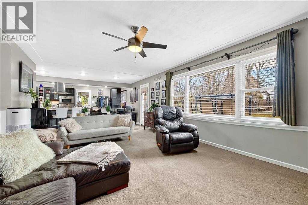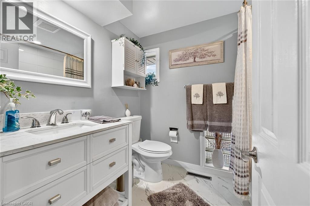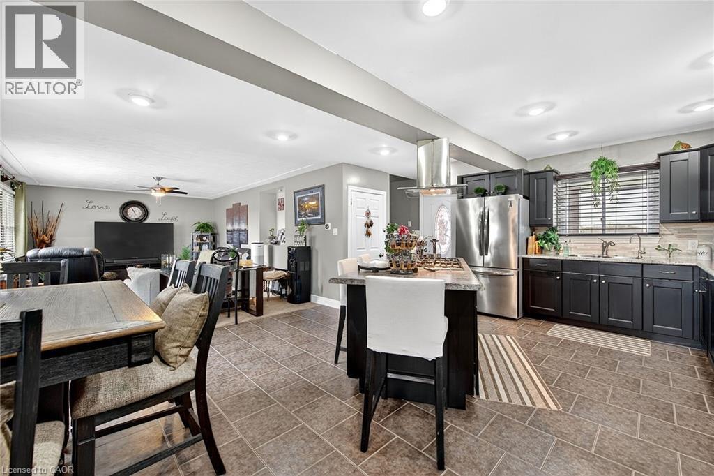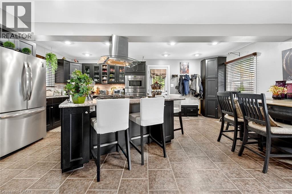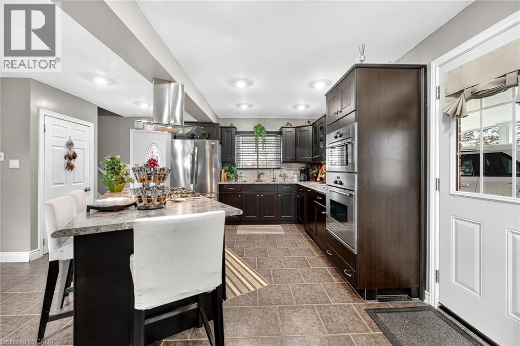 Beautifully presented, Exquisitely updated 3 bedroom, 2 bathroom Sidesplit situated on picturesque 100’ x 218’ mature lot on sought after Trinity Church Rd. Great curb appeal with all brick exterior, welcoming front walkway leading to covered porch, attached car port, tastefully landscaped, & entertainers dream back yard with recently updated composite deck overlooking calming country views. The flowing interior layout features close to 2000 sq ft of well designed living space highlighted by gourmet kitchen with oversized eat at island, S/S appliances, tile flooring, & backsplash, formal dining area leading to patio, spacious living room, 2 large upper level bedrooms, & updated primary 4 pc bathroom. The finished basement includes rec room, 3rd bedroom, additional 3 pc bathroom, laundry room, & storage area. Conveniently located minutes to Hamilton amenities, restaurants, shopping, schools, parks, & easy access to Red Hill, Linc, QEW, & 403. Upgrades throughout include modern decor, flooring, & fixtures, kitchen, decking, roof shingles – 2019, hi eff N/Gas furnace & A/C. Rarely do properties in this location come available for sale in the price range! Perfect home for all walk of life. Shows well – Just move in & Enjoy! Experience Hannon Country Living at its Finest! (id:64974)