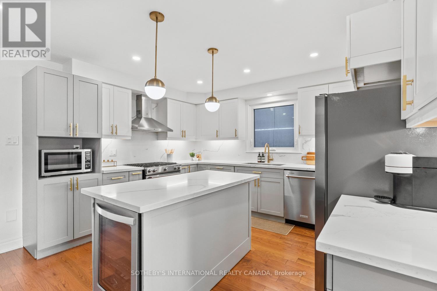 In a market where detached options at this level are increasingly scarce, this home delivers what matters most: sunlight, parking, and functional family space without compromise. Set on a 20.33 x 135 ft lot with a south-facing rear yard, it offers over 2,000 sq ft of total living space across three well-defined levels. The main floor unfolds with intention. A large-scale renovation in 2021 upgraded the kitchen and key interior finishes, centering the space around a substantial island ideal for the home chef and equally suited to gathering. It opens seamlessly into the rear family room with walk-out to the garden, while the separate living and dining room allows flexibility for daily life and larger occasions alike. Upstairs, three well-proportioned bedrooms include a primary suite with a dedicated ensuite bathroom and a walk-in closet. The additional bedrooms are served by a hall bathroom of their own, a meaningful distinction in this segment. A skylight above the upper landing introduces natural light that can be felt upon entry, drawing sunlight down the staircase and into the interior throughout the day. The finished lower level provides further versatility with a recreation room, four-piece bathroom, laundry, and direct garage access. Built in 1986 and upgraded where it counts, with four-car parking and side yard access, this is a measured entry into long-term detached ownership - well suited to the next chapter. (id:64974)