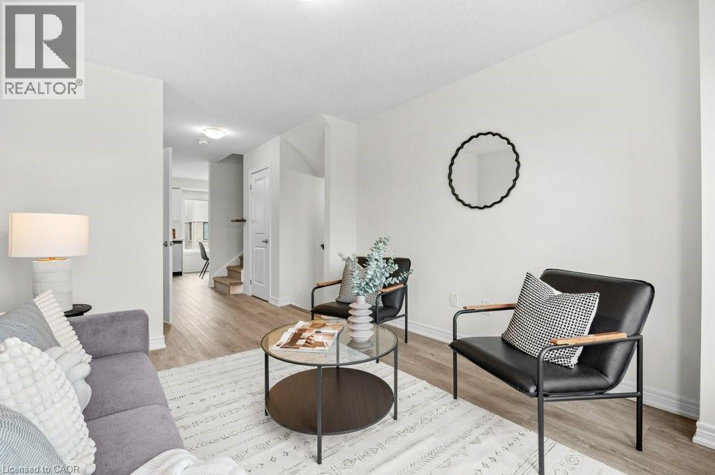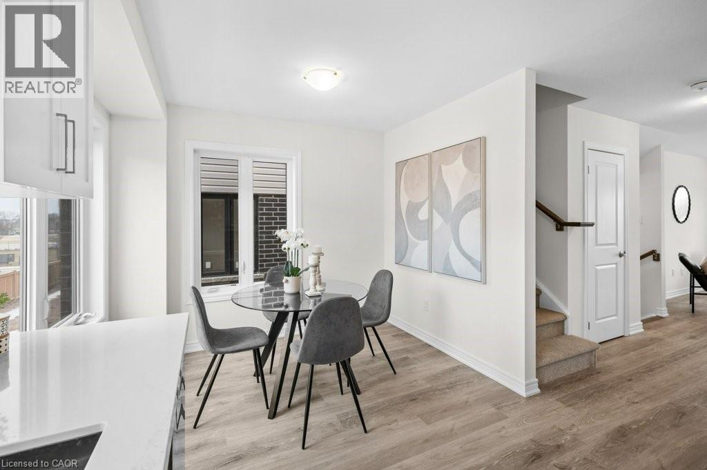 Welcome to Roxboro, a true master-planned community located right next to the Red Hill Valley Pkwy. This new community offers effortless connection to the GTA and is surrounded by walking paths, hiking trails and a 3.75-acre park with a splash pad. This freehold end-unit townhome has been designed with naturally fluid spaces that make entertaining a breeze. The additional flex space on the main floor allows for multiple uses away from the common 2nd-floor living area. This 3 bedroom 2.5 bathroom home offers a single car garage and a private driveway, a primary ensuite and a private rear patio that features a gas hook up for your future BBQ. Quartz counter tops, vanity in powder room, a/c and new appliances included. (id:64974)