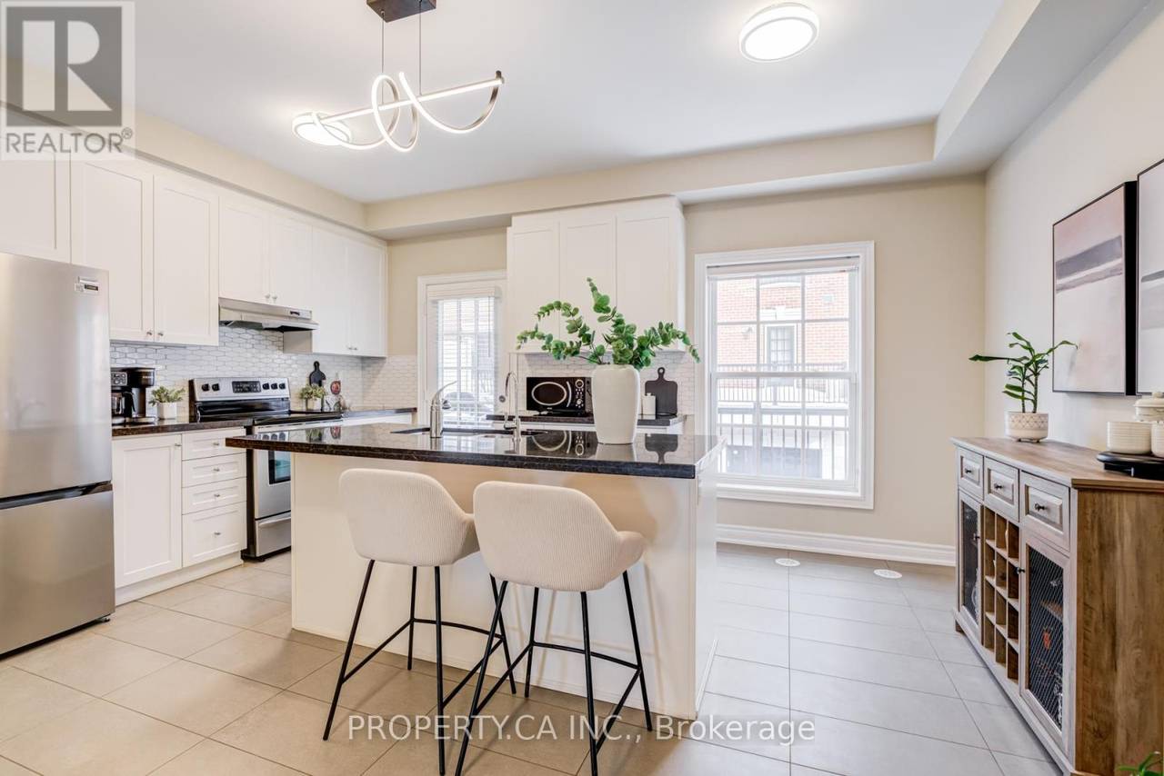 Welcome to this new luxury end-unit townhouse, one of the largest in the community at approximately 2,350 sq. ft., offering a perfect blend of modern design, space, and comfort. This bright corner unit features extra windows, 9' smooth ceilings on the main floor, granite kitchen countertops with an oversized island, marble bathroom vanities, and hardwood stairs with wrought-iron pickets. Thoughtfully designed with a 3-zone climate system, ample storage including a loft and closets on every level, and a full 2-car garage. Enjoy standout features such as a spa-like 5-piece primary ensuite, a kitchen balcony with gas BBQ line, a private primary bedroom balcony, and a rooftop terrace with CN Tower views on a clear day. Ideally located within walking distance to schools, library, community centre, sports facilities, playgrounds, shopping, and the GO Station, with hospitals, daycares, restaurants, and more nearby. A rare opportunity and a true must-see. (id:64974)