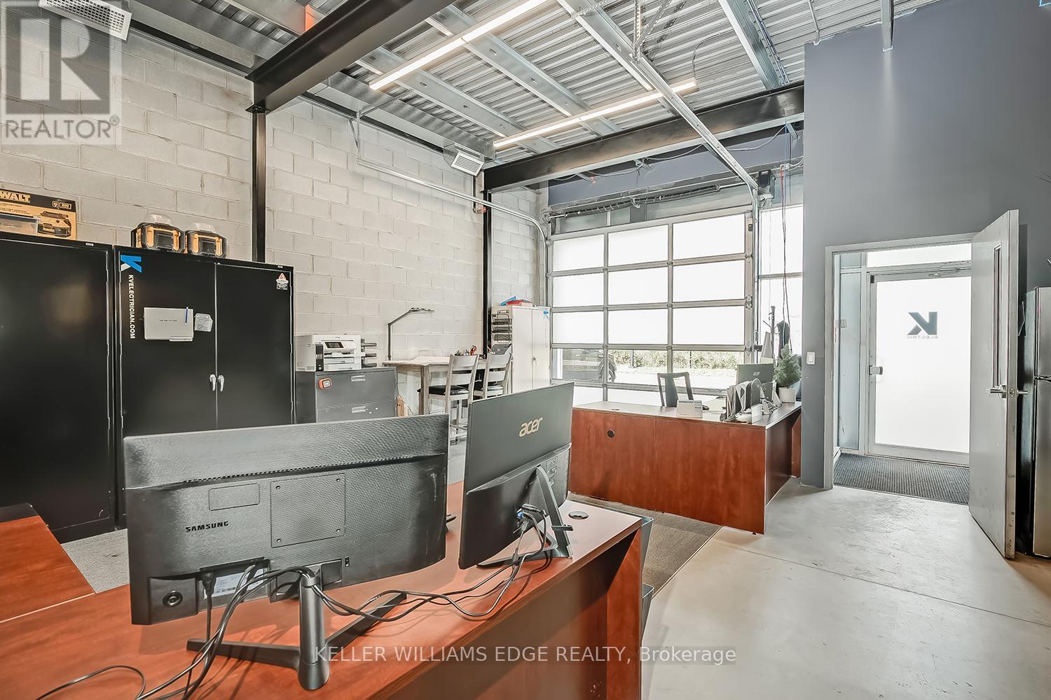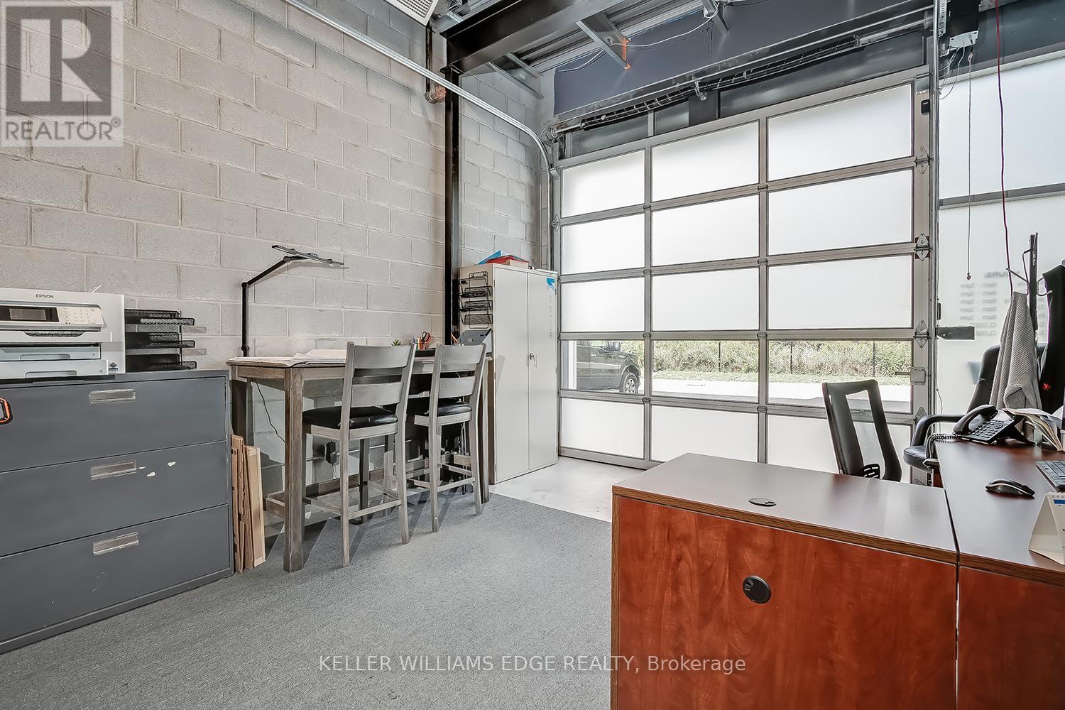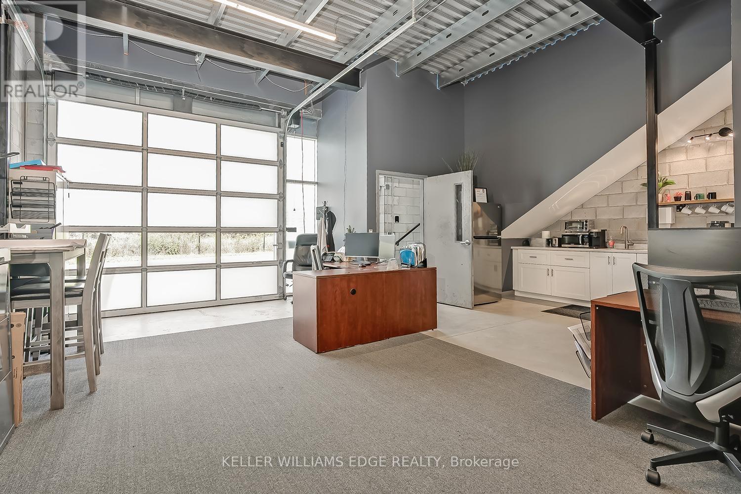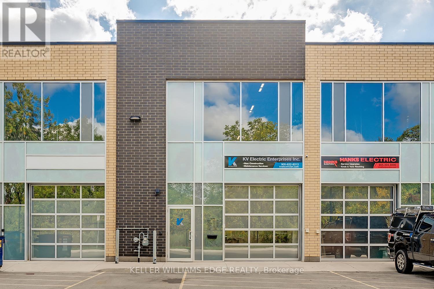 PRIME INDUSTRIAL-COMMERCIAL OPPORTUNITY - This rare and versatile unit offers approximately 2,172 sq. ft. of functional space, including a 1,000 sq. ft. upper mezzanine. Bright and inviting with expansive windows, a glass front entry, and a 10' x 10' drive-in shipping door, this property is designed to meet a wide range of business needs. The main floor features polished concrete floors, a functional kitchenette, spacious washroom, and dedicated storage. The open-concept mezzanine provides flexible options for additional storage, offices, meetings or collaborative work and even includes a wet bar. Additional highlights include 3-phase 60amp/600v electrical service, sprinkler system, and ample on-site parking for staff and visitors. With excellent visibility from King Road and convenient access to Highways 403, 407, QEW, and GO Transit, the location is as strategic as it is practical. Seller is willing to close the adjoining wall or leave it open should you wish to expand by leasing the neighbouring unit. (id:64974)