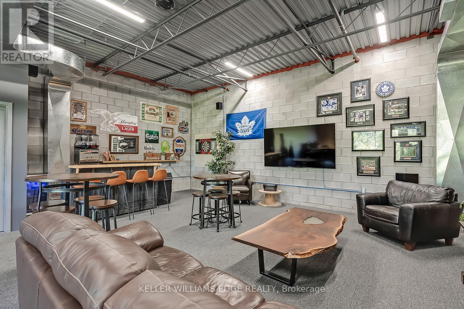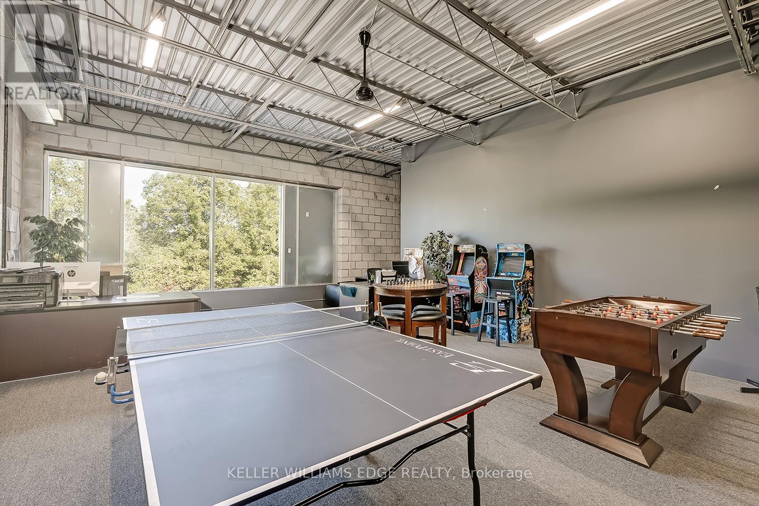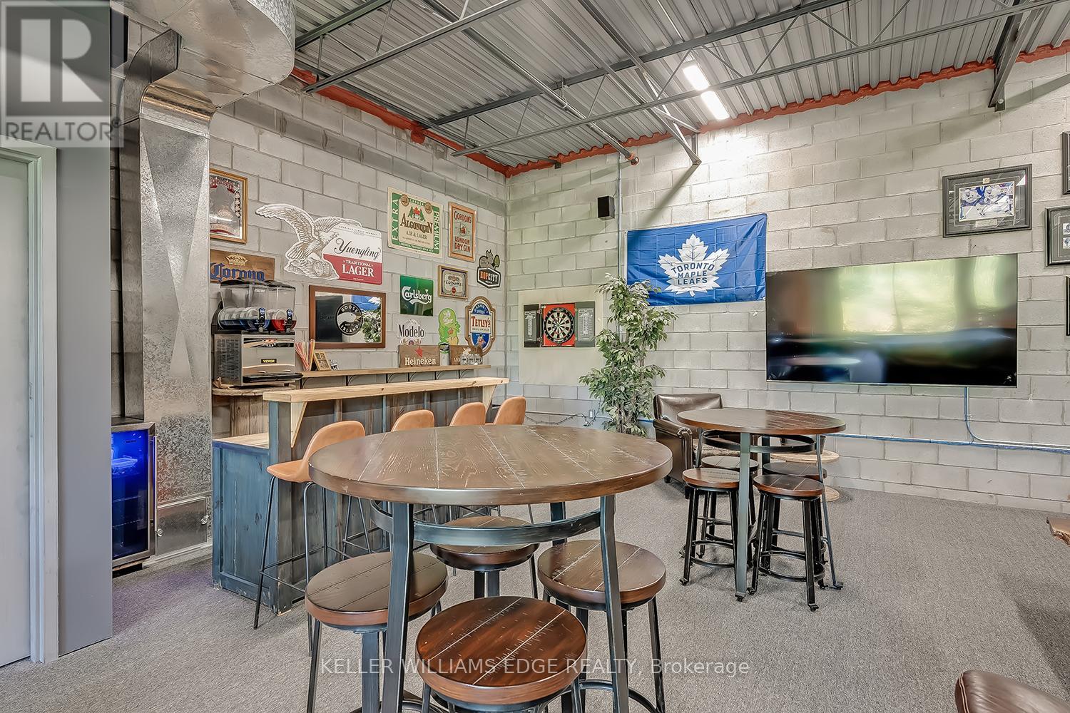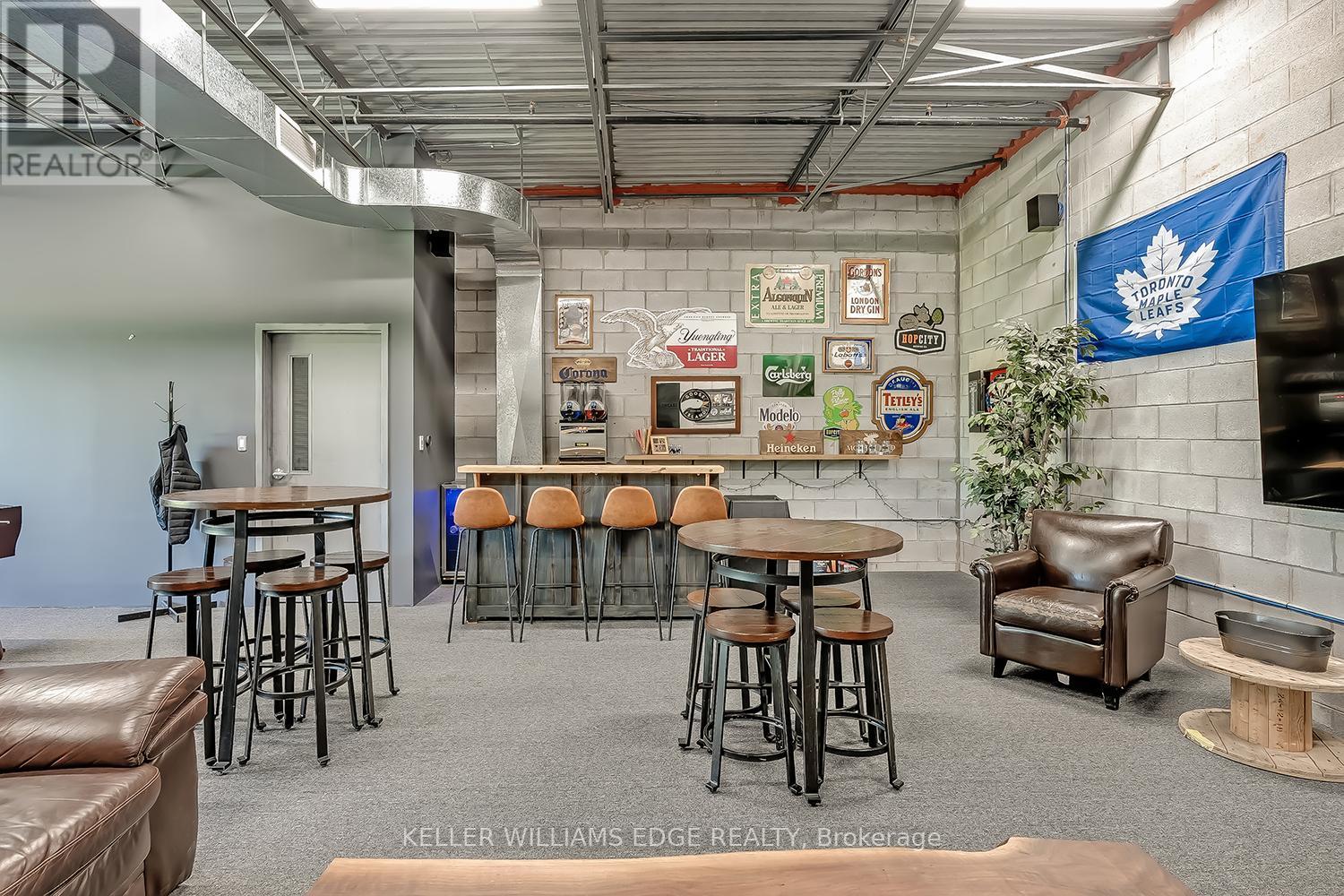 PRIME INDUSTRIAL-COMMERCIAL OPPORTUNITY - This rare and versatile unit offers approximately 2,172 sq. ft. of functional space, including a 1,000 sq. ft. upper mezzanine. Bright and inviting with expansive windows, a glass front entry, and a 10' x 10' drive-in shipping door, this property is designed to meet a wide range of business needs. The main floor features polished concrete floors, a functional kitchenette, spacious washroom, and dedicated storage. The open-concept mezzanine provides flexible options for additional storage, offices, meetings or collaborative work and even includes a wet bar. Additional highlights include 3-phase 60amp/600v electrical service, sprinkler system, and ample on-site parking for staff and visitors. With excellent visibility from King Road and convenient access to Highways 403, 407, QEW, and GO Transit, the location is as strategic as it is practical. Seller is willing to close the adjoining wall or leave it open should you wish to expand by leasing the neighbouring unit. (id:64974)