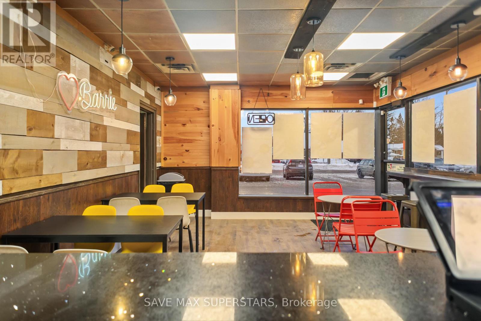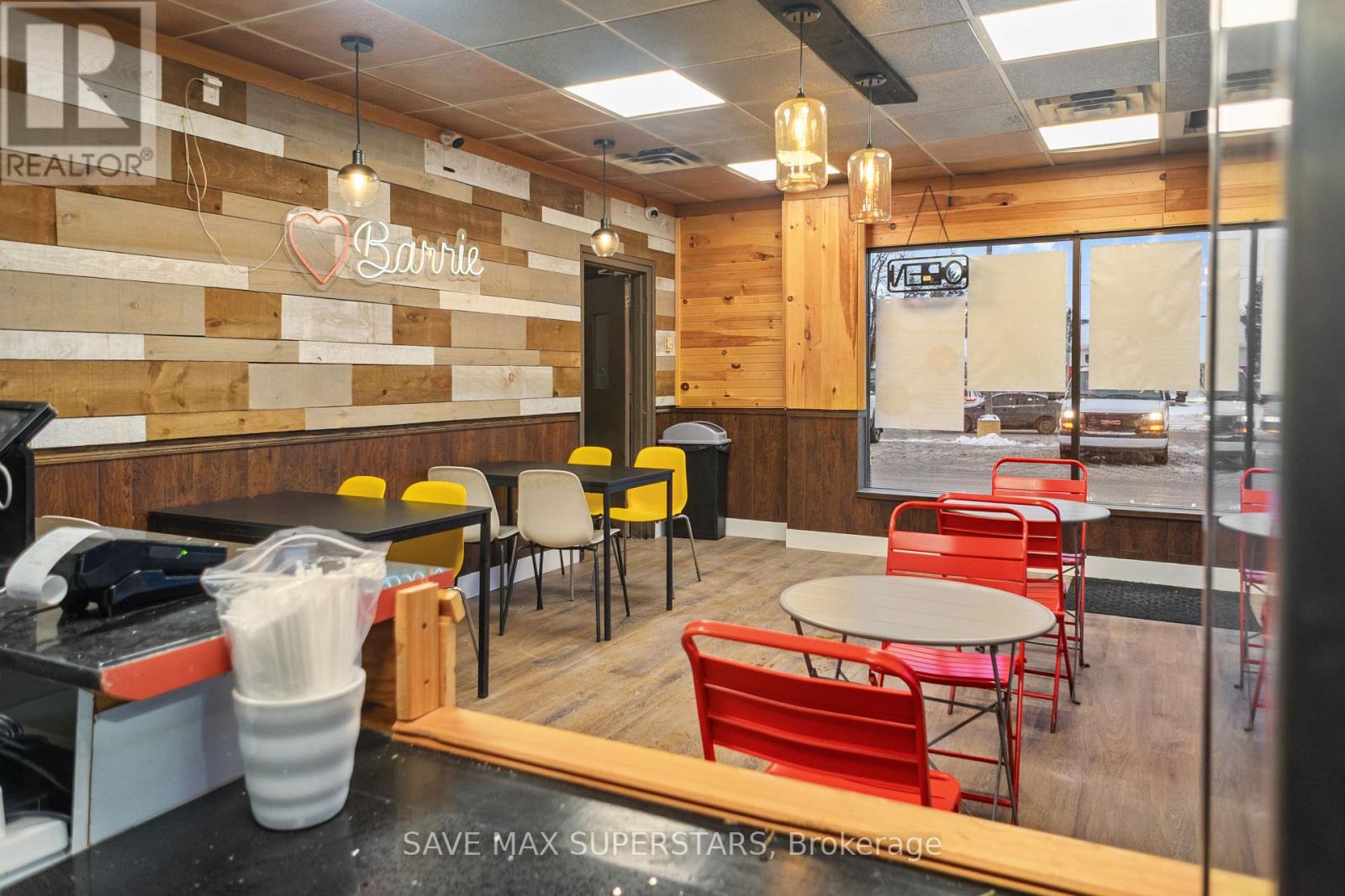 LOCATION MEETS OPPORTUNITY IN ONE OF BARRIE'S BUSIEST, MOST SOUGHT-AFTER COMMERCIAL HUBS! THIS TURNKEY RESTAURANT BUSINESS OFFERS EXCEPTIONAL VISIBILITY, NONSTOP TRAFFIC, AND A TRULY UNBEATABLE SETTING - JUST MINUTES FROM HWY 400, WALKING DISTANCE TO GEORGIAN COLLEGE, 2SCHOOLS, STUDENTS' RENTAL AND THE HOSPITAL, AND SURROUNDED BY POWERHOUSE ANCHORS INCLUDING TIMHORTONS, CIRCLE K, SUBWAY, AND REXALL. WITH ABUNDANT PLAZA PARKING AND A STEADY FLOW OF STUDENTS, STAFF, COMMUTERS, AND TRAVELLERS YEAR-ROUND, THIS LOCATION DELIVERS THE KIND OF FOOTFALL ENTREPRENEURS DREAM ABOUT. THIS DINE-IN AND TAKE-OUT RESTAURANT OFFERS A SEATING CAPACITY OF APPROXIMATELY 25 PEOPLE. THE SPACE IS APPROXIMATELY 1500 SQFT AND COMES FULLY EQUIPPED WITH A 15-FOOT HOOD AND A 4-FOOT HOOD, BOTH IN EXCELLENT CONDITION, A WALK-IN FRIDGE, NEWLY INSTALLED FLOORING, AND A BRAND-NEW ROOFTOP A/C UNIT (2025). ALL EQUIPMENT IS FULLY OWNED AND METICULOUSLY MAINTAINED. NO FRANCHISE FEES, NO LIMITATIONS - THIS IS YOUR CHANCE TO BRING YOUR OWN BRAND, EXPAND THE MENU, OR BUILD THE CONCEPT YOU'VE ALWAYS ENVISIONED (SUBJECT TO LANDLORD APPROVAL). THE LAYOUT IS MODERN, FUNCTIONAL, DESIGNED FOR HIGH-EFFICIENCY OPERATIONS, AND INCLUDES A SEPARATE OFFICE SPACE. THE PLAZA FEATURES A STRONG MIX OF WELL-ESTABLISHED BUSINESSES, ENSURING CONSISTENT CLIENTELE THROUGH EVERY SEASON. WITH HWY 400 JUST MOMENTS AWAY, BOTH WINTER AND SUMMER TRAVEL TRAFFIC ADDS SIGNIFICANT VOLUME TO THIS ALREADY THRIVING LOCATION. FLEXIBLE LEASE OPTIONS AREAVAILABLE, MAKING THIS A PRIME OPPORTUNITY FOR BOTH EXPERIENCED OPERATORS AND FIRST-TIMEENTREPRENEURS SEEKING A HIGH-PERFORMING, READY-TO-RUN BUSINESS. A RARE FIND IN A RAPIDLY GROWING POCKET OF THE CITY - THIS OPPORTUNITY WILL NOT LAST LONG. STEP INTO A PROVEN, HIGH-VISIBILITY BUSINESS LOCATION WHERE CONVENIENCE, DEMAND, AND EXPANSION POTENTIAL COME TOGETHER SEAMLESSLY. (id:64974)