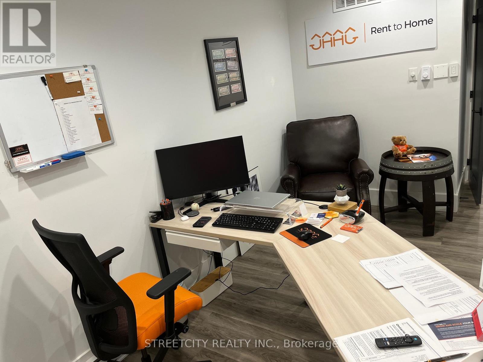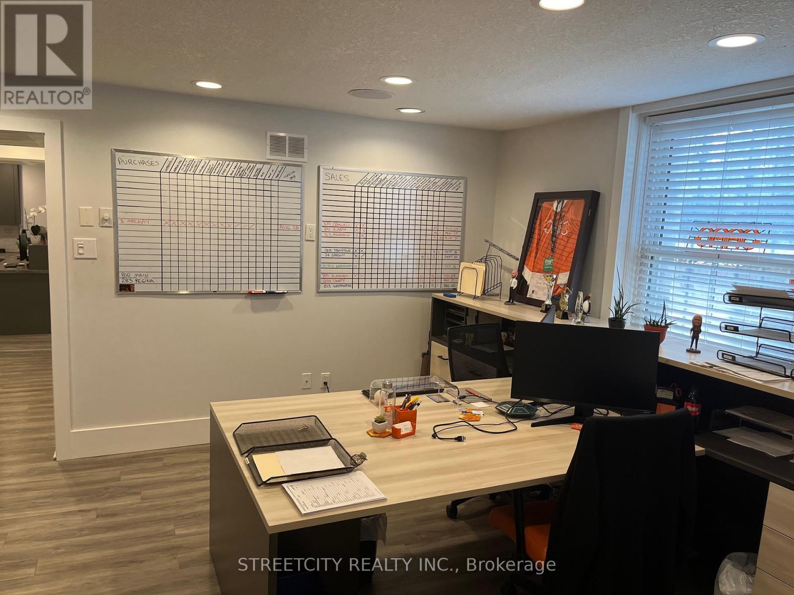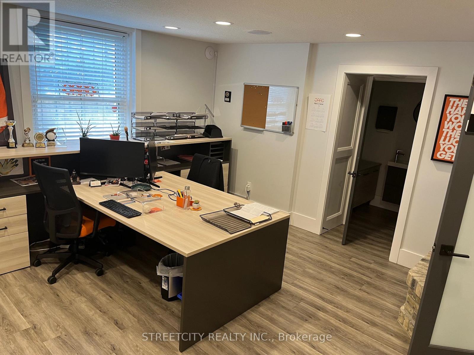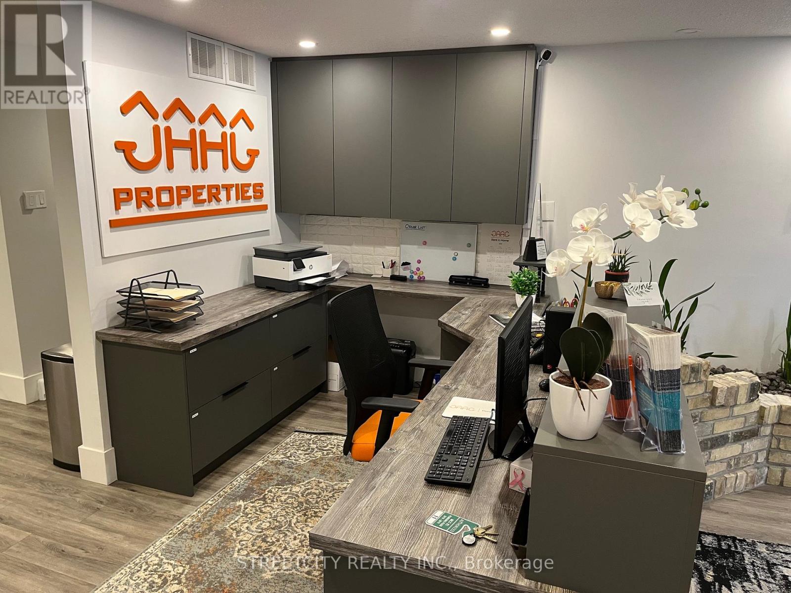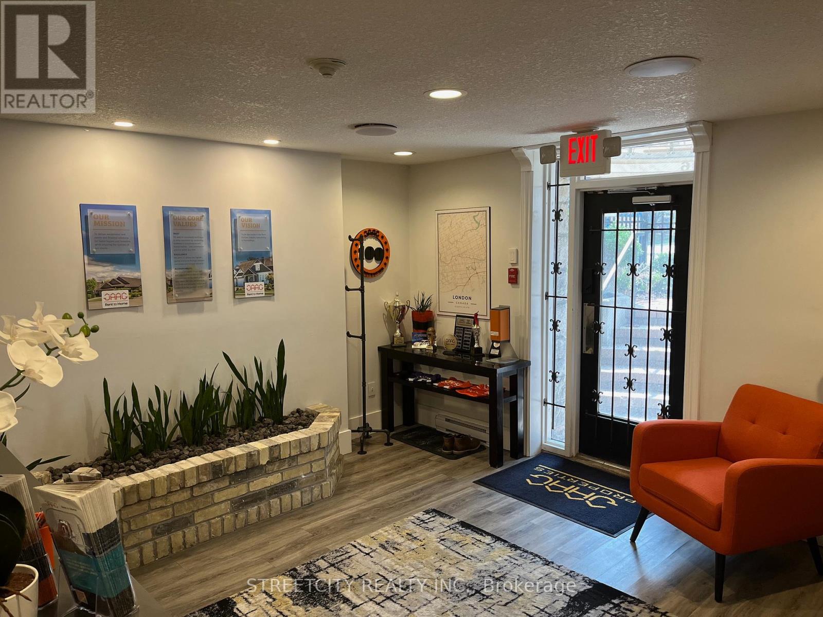 Prime Downtown Office Space for Sale or Lease - 440 Wellington St, London ON Exceptional opportunity to own or lease a beautifully renovated commercial office space in the heart of Downtown London. Situated prominently at the corner of Wellington Street and Queens Avenue, this high-exposure location offers direct street frontage in one of the city's busiest business corridors. Designed with a modern open-concept layout, this versatile space features a custom reception area, multiple private offices, two bathrooms, and stunning exposed brick that adds both character and contemporary style. Premium signage opportunities and consistent foot and vehicle traffic make it an ideal location for growing or launching your business. The property includes two dedicated private parking spaces, with additional spaces available for rent. It's conveniently located within walking distance to One London Place, Victoria Park, Canada Life, and Richmond Row, offering easy access to key downtown amenities and services. Don't miss your chance to secure this rare and move-in-ready commercial space in one of Downtown London's most iconic brownstone buildings. VTB & Rent To Own option available (id:64974)