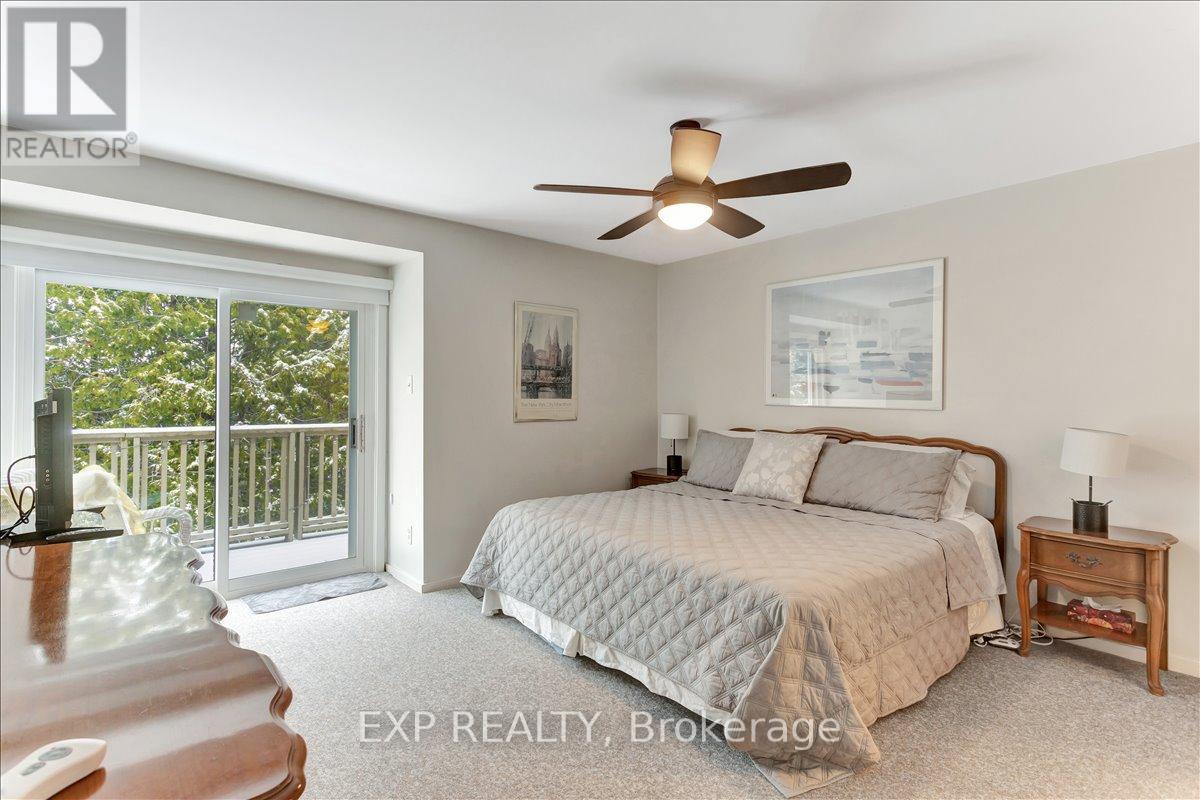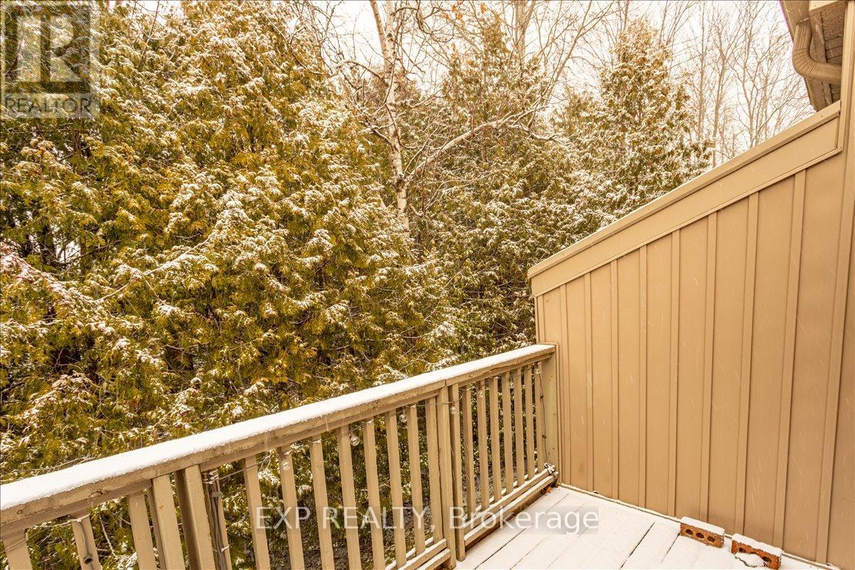 Rarely offered 4-bedroom, 3-bathroom end-unit townhome in the heart of Cranberry Village, perfectly positioned for Collingwood's four-season lifestyle. Backing onto trees with a desirable west exposure, this bright, private home offers warm afternoon light and a peaceful, natural setting. The open-concept main floor is ideal for entertaining, featuring granite kitchen counters, a gas fireplace, and updated windows and sliding patio doors that enhance comfort and efficiency. Upstairs, the spacious primary suite includes a 4-piece ensuite with a jetted tub and a walk-out to a private deck - perfect for morning coffee or relaxing after a day outdoors. Three additional bedrooms provide flexible space for guests, family, or a home office, along with an updated bathroom with a walk-in shower. Located just minutes from Blue Mountain skiing, Georgian Trail, biking, hiking, golf, marinas, and Georgian Bay beaches, this low-maintenance home is ideal for full-time living or a weekend retreat. Designated parking spot and guest parking. (id:64974)