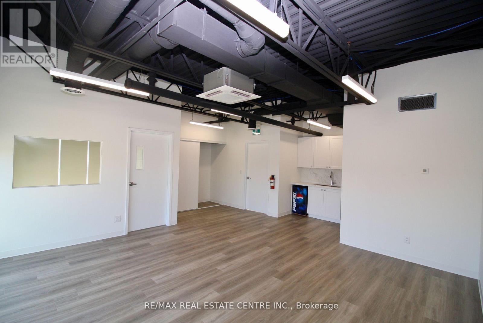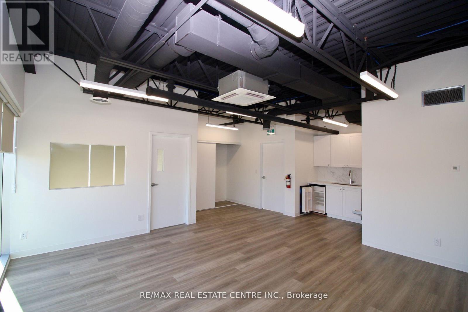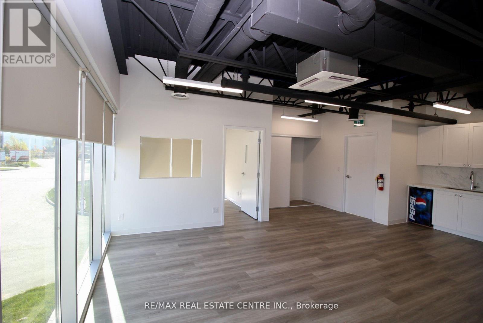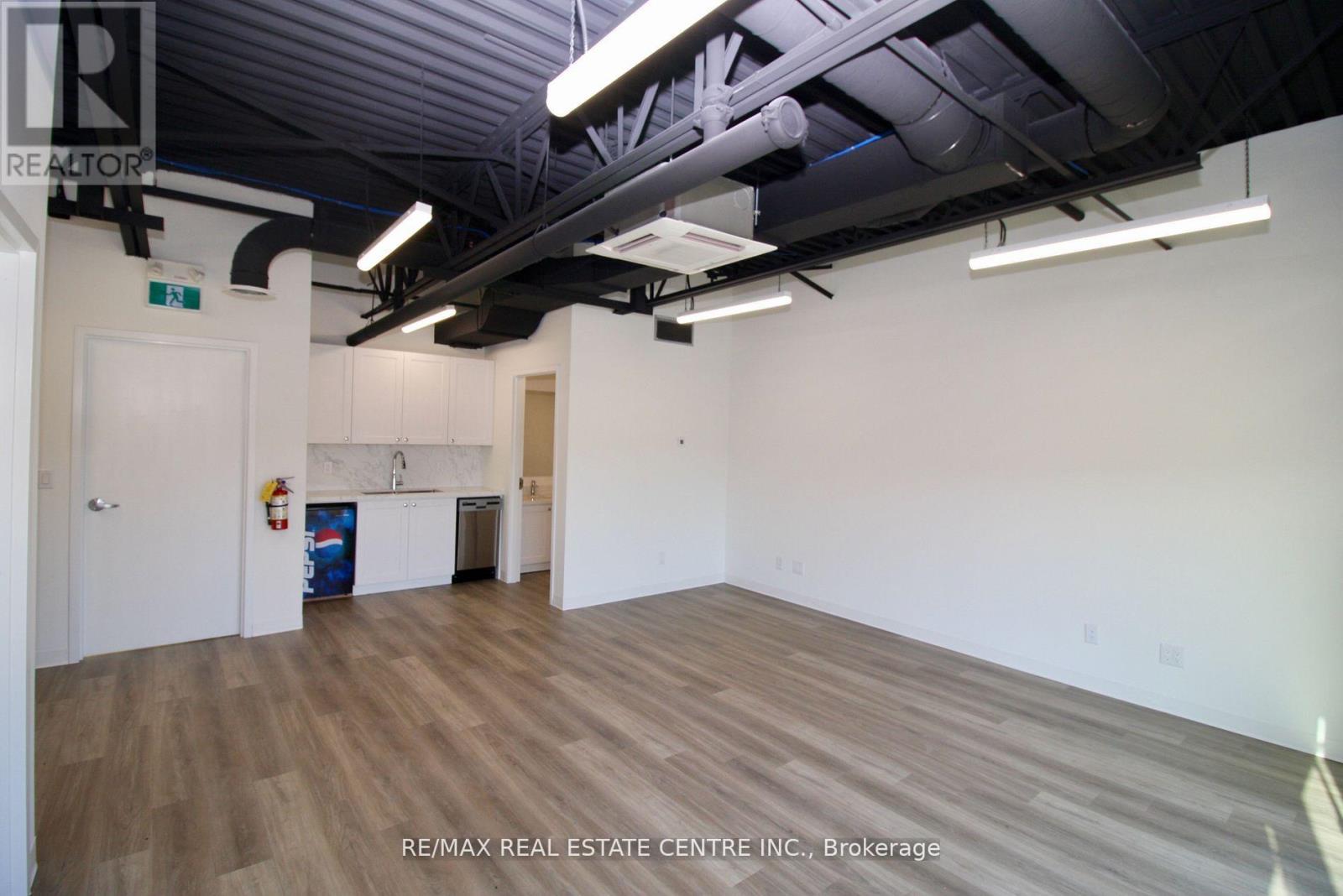 Beautiful brand-new corner unit with big bright windows! Located in South Guelph's Hanlon Creek Business Park. Flexible Commercial & Industrial Space. Thousands spent on Improvements! Unit comes with a finished mezzanine level with brand new modern kitchenette, washroom, office space, and open concept area with huge windows for plenty of natural light. This modern space features 2nd washroom on the ground level, and a drive-in loading bay/garage door, 22 ft ceiling and access to ample parking within the complex. Located at the corner of Hanlon Creek Boulevard and Downey Rd, this corner unit has great signage exposure and is steps from city bus routes. Minutes from Highway 401, with easy access to major highways and proximity to key amenities, this opportunity provides the versatility your business needs for success in a high-demand area. Easy to show. Flexible Commercial & Industrial space that comes with a drive-in garage door, 22-foot clearance and a fully finished and modern Mezzanine Level, complete with kitchenette, bathroom and office space. 2nd washroom on the ground level. (id:64974)
