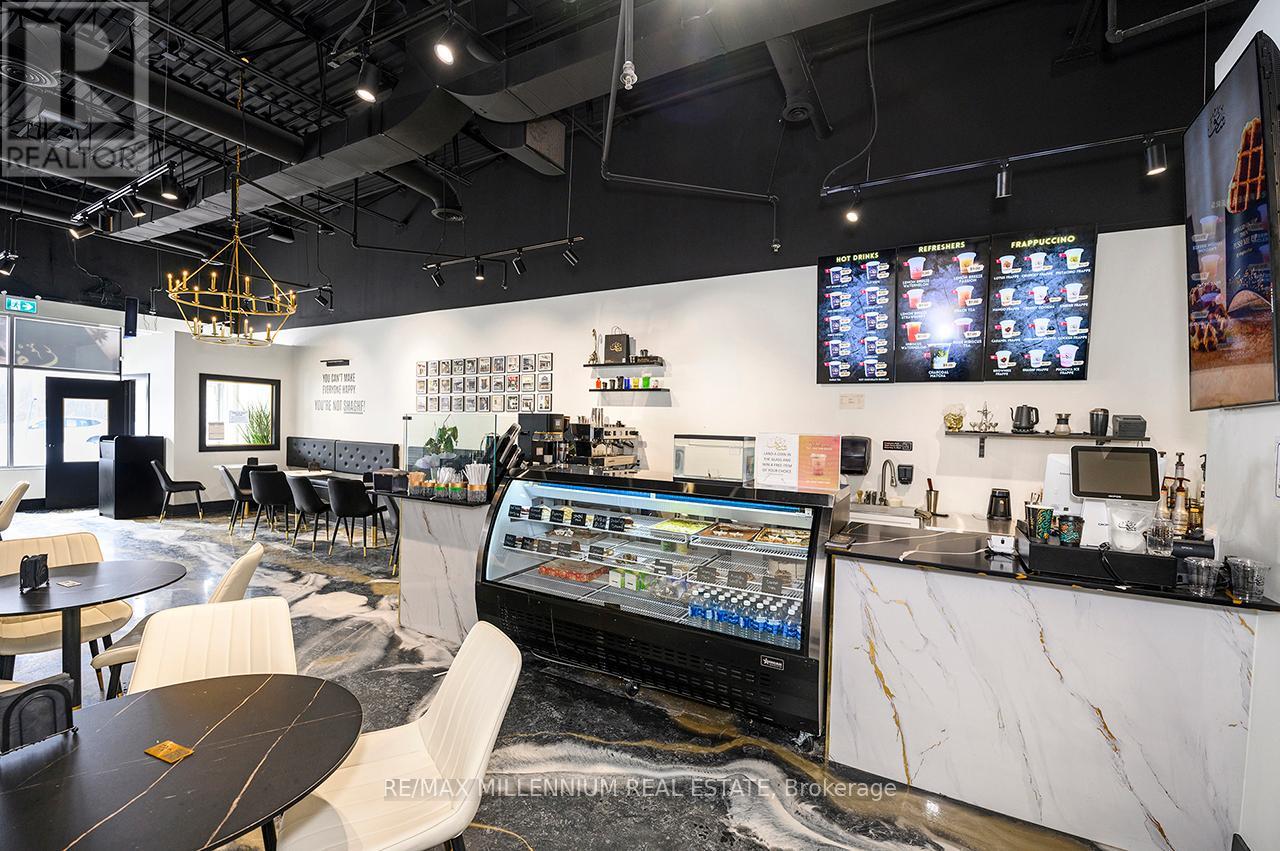 EXCELLENT CASH-FLOW OPPORTUNITY. INVESTORS ONLY Fully leased commercial unit with a high-profile franchise juice & café bar as tenant. Buyer to assume existing lease. Strong, established tenant with consistent foot traffic provides stable and predictable income.E2 zoning permits a wide range of commercial uses, adding long-term flexibility and exit value.Prime location in a rapidly developing corridor near the Mississauga Convention Centre, future Smart Centre development, Walmart Distribution Facility, hotels, and dense residential neighbourhoods. Walking distance to LRT and minutes to major highways and transit.Located in a well-maintained plaza with a solid professional and food-service tenant mix. Ideal hands-off investment with immediate income and long-term appreciation in a high-growth area. (id:64974)