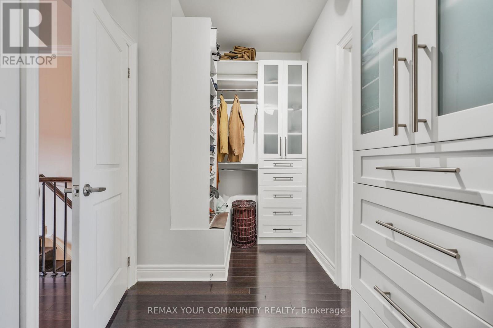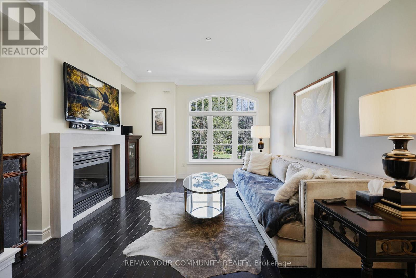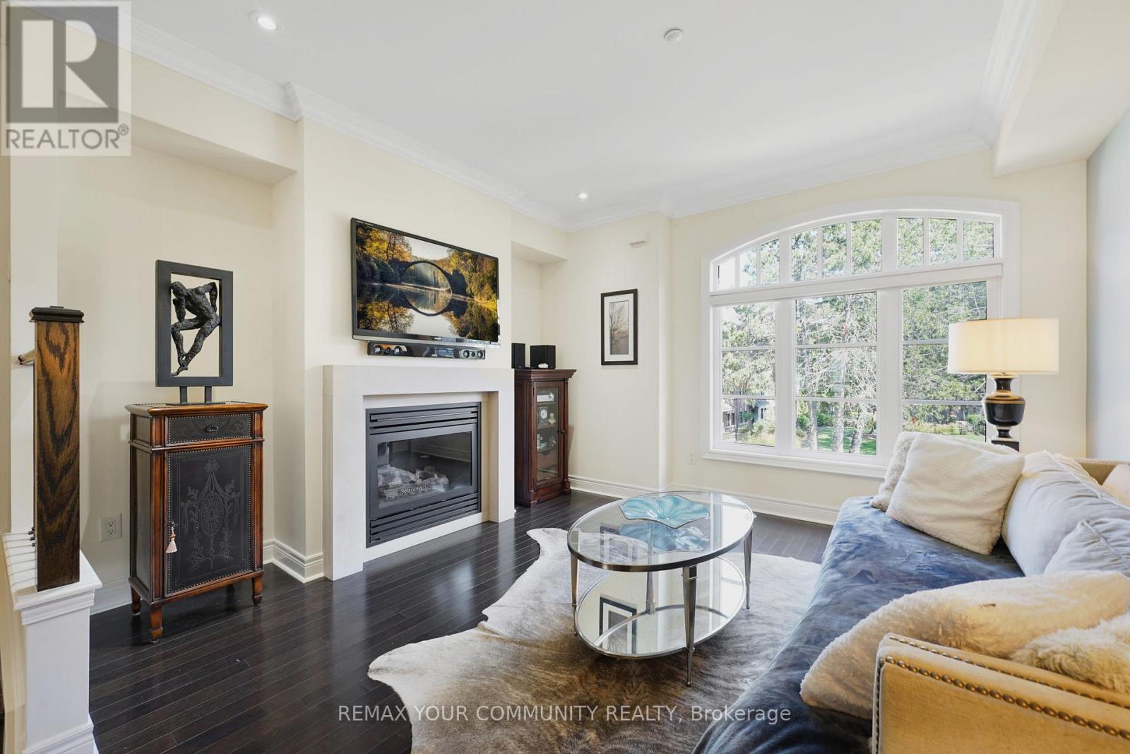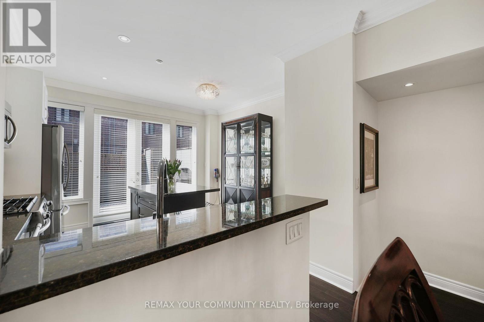 Riverside Luxury Townhouse for Sale. Welcome to a peaceful luxury townhouse community in matured Woodbridge, surround by Market Lane Shops, Restaurants, Supermarkets, Public Transit, easy access to HWY 27, 427, 407 and 50. A premium lot, facing a quiet private community park. It provides a save, elegant, spacious and economical life-style-living, with security monitored, concealed ceiling fire-sprinklers throughout and an oversized indoor two-car tandem garage with generous storage space. Rich wood floors and stairs with 9ft ceilings and crow-moldings are throughout the home. The entry-level floor has heated ceramic floors, one washroom and a spacious den with large wood shutter windows facing the private park area - ideal for office, exercise or bedroom use. The primary floor level has an open-concept layout with large windows facing the private park. A gas fireplace with stone-facing enriches has spacious living and dining area. The Kitchen has generous cabinet storage and a pantry. Granite countertops, including the kitchen island has generous cabinet storage and a pantry. Granite countertops, including the kitchen island with additional storage space. The refrigerator, dishwasher and gas-stove are stainless steel, and large size microwave. Double French doors exit's the kitchen into a spacious private outdoor patio balcony. The secondary floor level has 2 spacious bedrooms, one with wall-to-wall windows for a breathtaking view of the community private park. A full bathroom services the floor level, along with the laundry room with ample storage space. The grand master bedroom has a walk-out balcony, a custom-built walk-in closet and a large spa-like 5 pcs ensuite with double-sink and a jacuzzi. (id:64974)