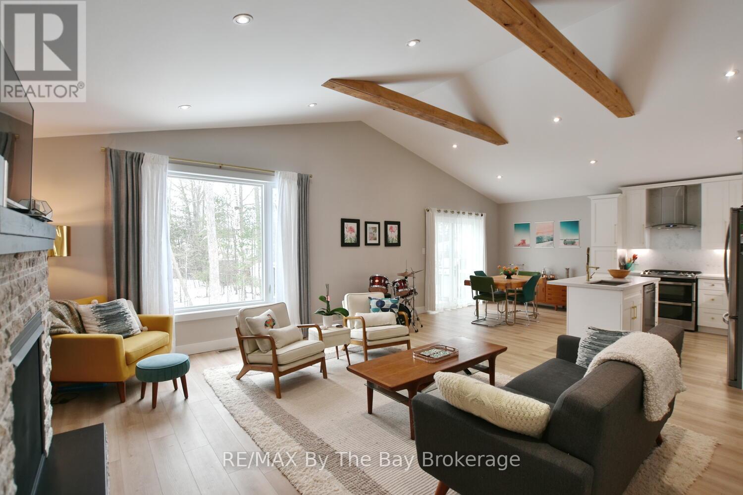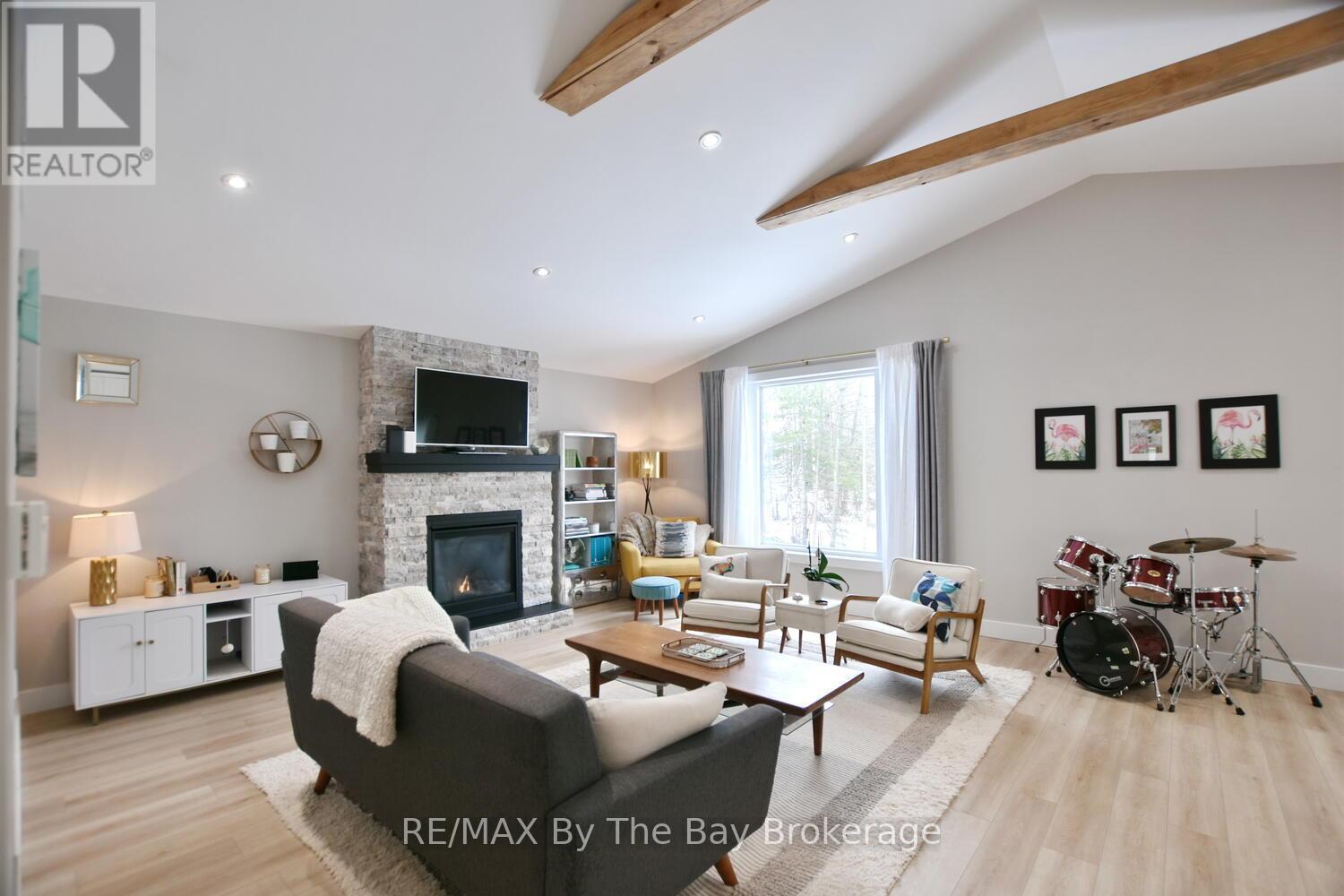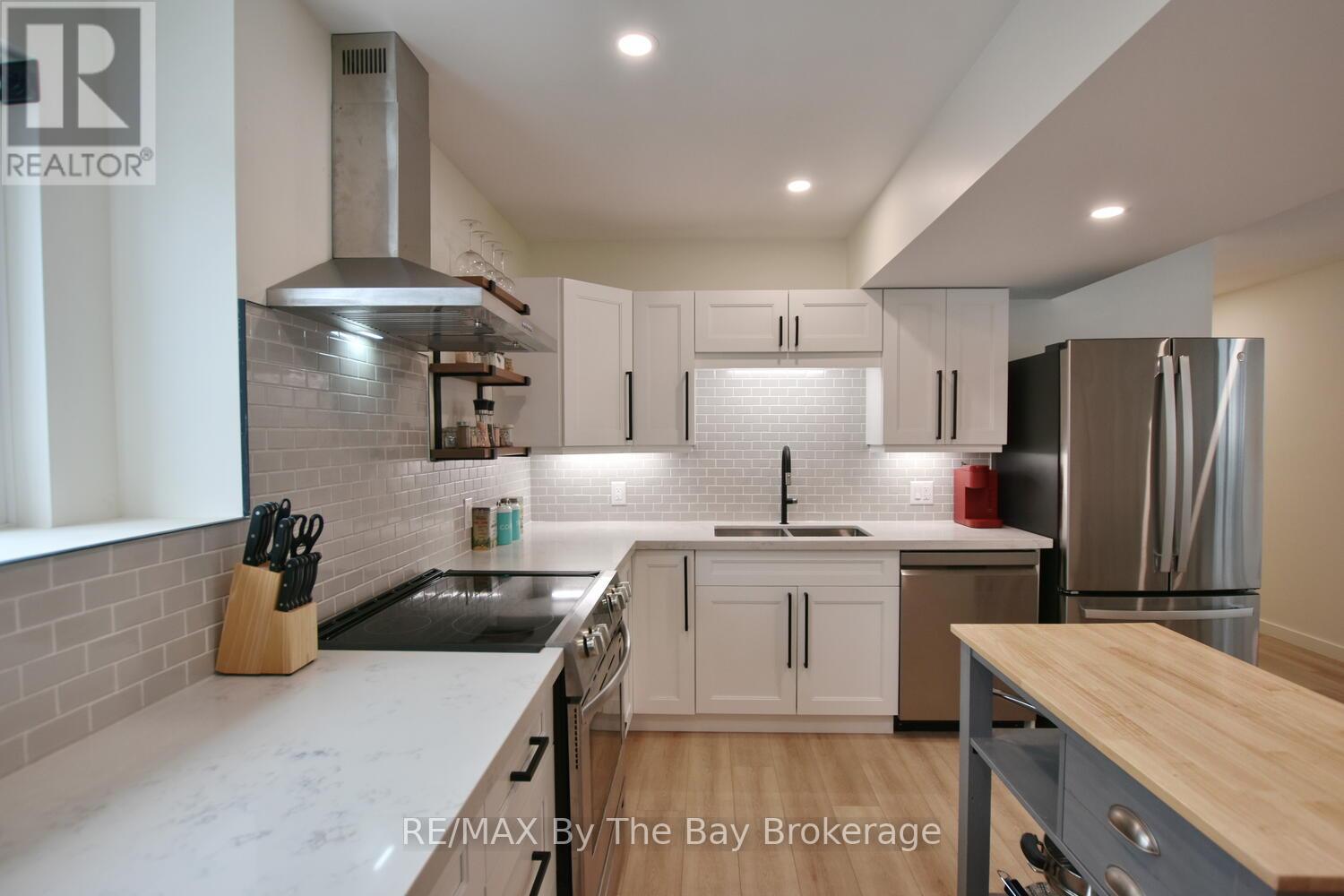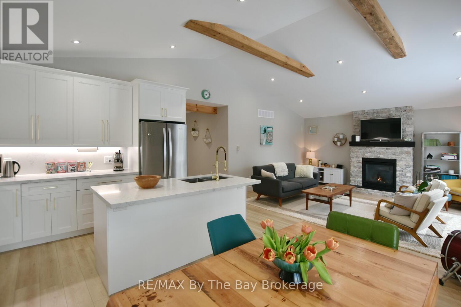 This unique property offers the best of both worlds-like having two exceptional homes in one. 2,793 Total Finished Square Feet with each level thoughtfully designed to provide flexibility for today's lifestyle. Newly built with a professionally finished 1,262 Sq Ft. lower-level suite, it's ideal for multi-generational living or a smart investment property. Step inside to discover energy-efficient features and a well-designed layout that ensures year-round comfort. The main level is warm and inviting, featuring an open-concept design with rustic beam accents, soaring cathedral ceilings, and panoramic windows. The living room is anchored by a cozy fireplace that adds ambiance and serves as an independent heat source. The custom kitchen is a standout, complete with an eat-up island, quartz countertops and backsplash, accent lighting, and stainless steel appliances. The spacious primary bedroom includes a modern ensuite and walk-in closet, while two additional bedrooms and a stylish 4-piece bath are finished in neutral tones. The lower level, with a separate entrance and it's own laundry facilities, features a bright, self-contained suite with in-floor heating throughout. It offers an open-concept kitchen, living, and dining area, three well-sized bedrooms, a 4-piece bath, and ample storage-finished to the same high standard as the main level. Enjoy outdoor living on the deck with a gas BBQ hookup, perfect for entertaining. The garage is pre-wired for an EV charger, adding future-ready convenience.Located in a quiet, mature neighbourhood, this home is close to the elementary school and near the beach-without the busy tourist traffic. Offering versatility, privacy, and access to local amenities, this property blends comfort, practicality, and lifestyle in one impressive package. (id:64974)