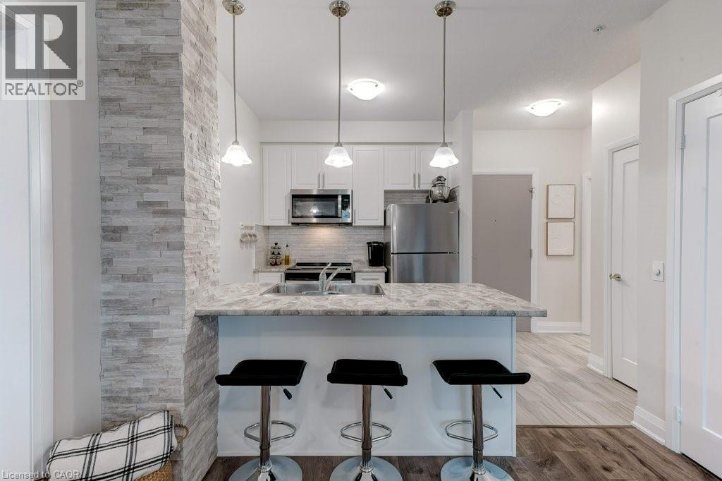Upscale Lakefront Living! Elegant 2 Bedroom, 2 Bathroom ground floor suite with oversized 385 sq. ft. Terrace in the award winning AquaZul Waterfront Condominiums. Open-concept design, 9' ceilings, floor-to-ceiling windows & 1,191 SqFt of total living space with the expansive private Terrace; perfect for Entertaining & Lounging. Fabulous gourmet Kitchen w/Breakfast Bar, custom white cabinetry, S/S Appliances, floating shelves, tiled backsplash & ledgestone feature. Large Primary Suite with walk-in closet & luxe 3pc Ensuite with frameless walk-in glass shower. Spacious second Bedroom w/floor to ceiling windows. Stylish second (4pc) Bath & oversized closet w/system. Generous Great Room w/laminate wood floors, floor to ceiling windows & w-o to huge Terrace w/glass railings for spectacular seasonal entertaining. Aquazul is designed with opulent style & 5-star Resort style amenities: in-ground outdoor Pool with Cabanas, BBQ areas, Club Room w/fireplace & Terrace, Fitness Centre w/Lake views, Billiards, Media Room, Visitor Parking and so much more! Poised on the shores of Lake Ontario amidst the beauty of Wine Country & on Grimsby’s $5 Million revitalized Lake Shore. Steps to Grimsby Waterfront Beach Park Trail & walkable to the unique shops & restaurants of charming Grimsby on the Lake. Close to transit, highways & 2 minutes from the new GO train station in the works. AquaZul will be like living at your own resort, and it’s all just outside your front door. Book your private viewing today! (id:64974)