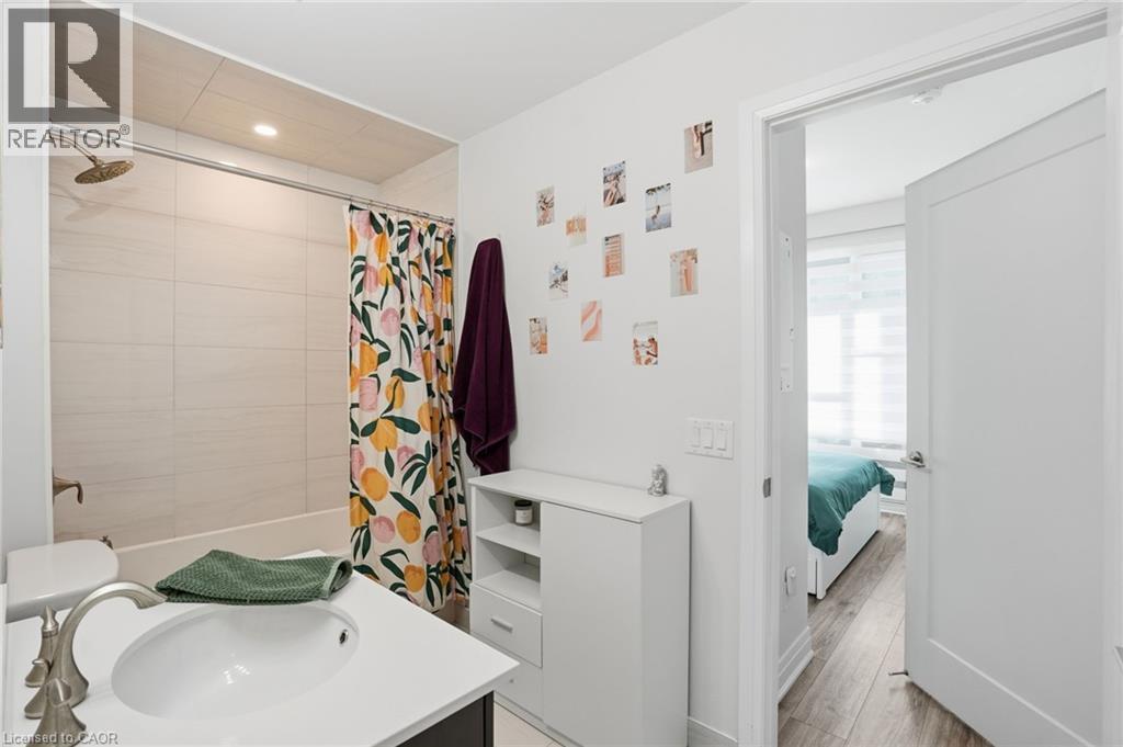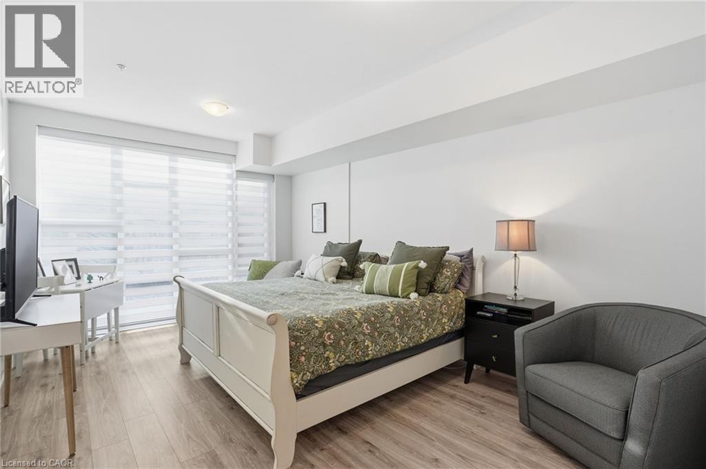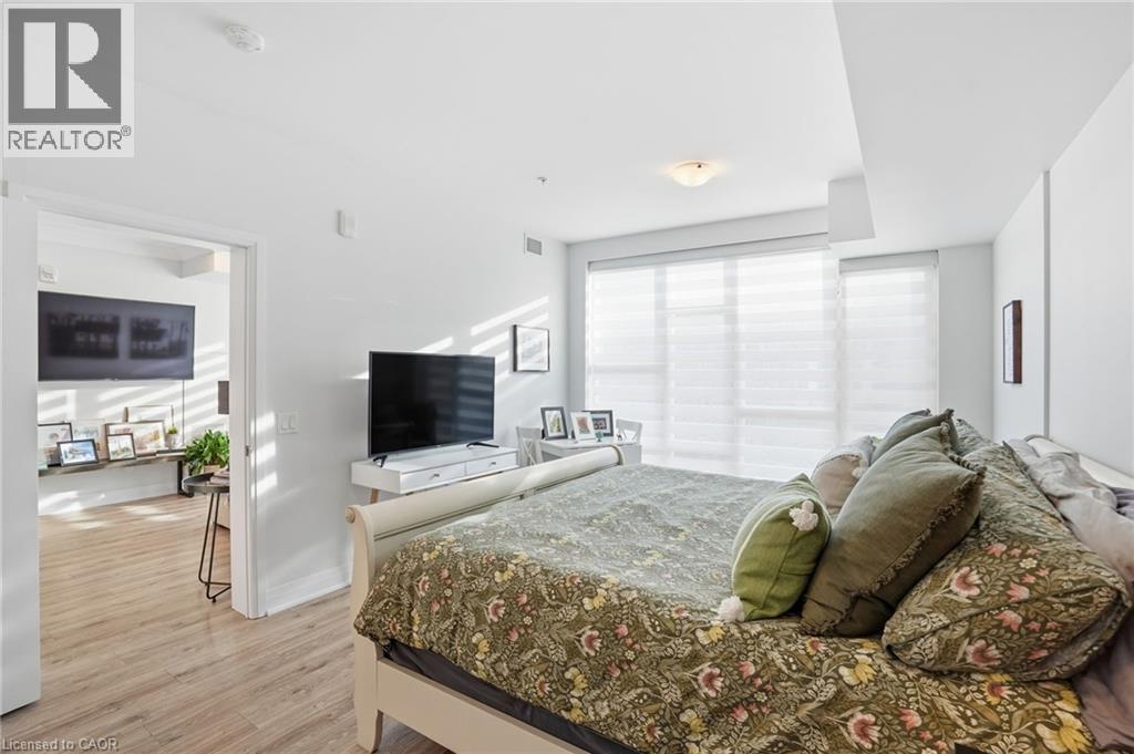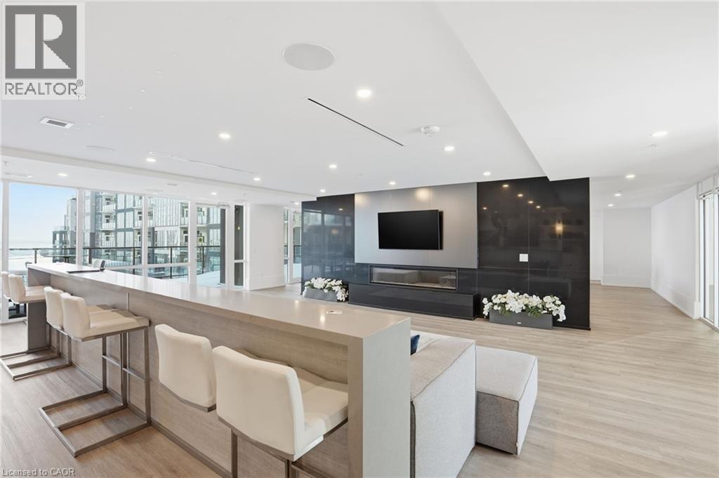 3rd floor suite offering over 1100 sq. ft. of carpet-free living with 9’ ceilings, crown moulding, and wall-to-wall windows. Private 55 sq. ft. north-east facing balcony with open views of the pool and courtyard. Upgraded kitchen featuring a waterfall quartz breakfast bar, soft-close cabinetry, and stainless steel appliances. Includes in-suite laundry and smart thermostat with independent heating/cooling. Resort-style amenities include an in-ground pool, cabana, fitness centre, party/media rooms, and BBQ area. Comes with 2 owned parking spaces and 2 lockers, plus EV charging in visitor parking. Pet-friendly building close to highways, future GO Train, waterfront trails, shopping, dining, schools, and beaches. (id:64974)