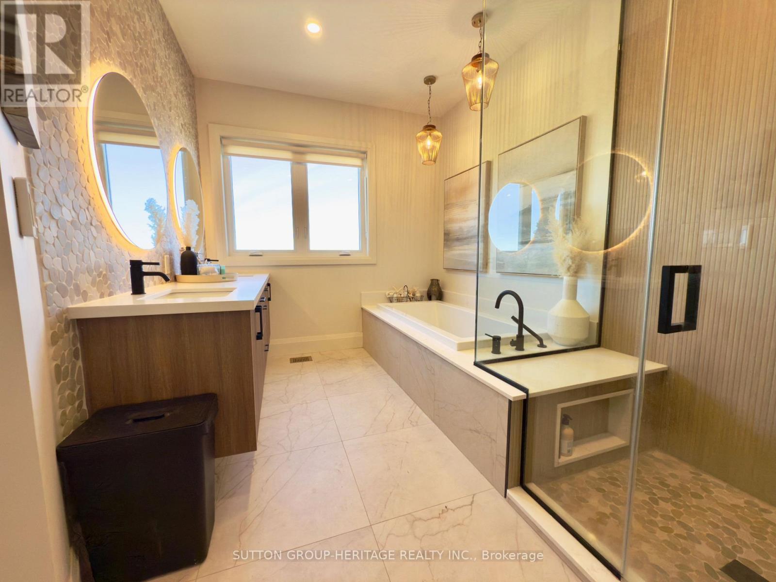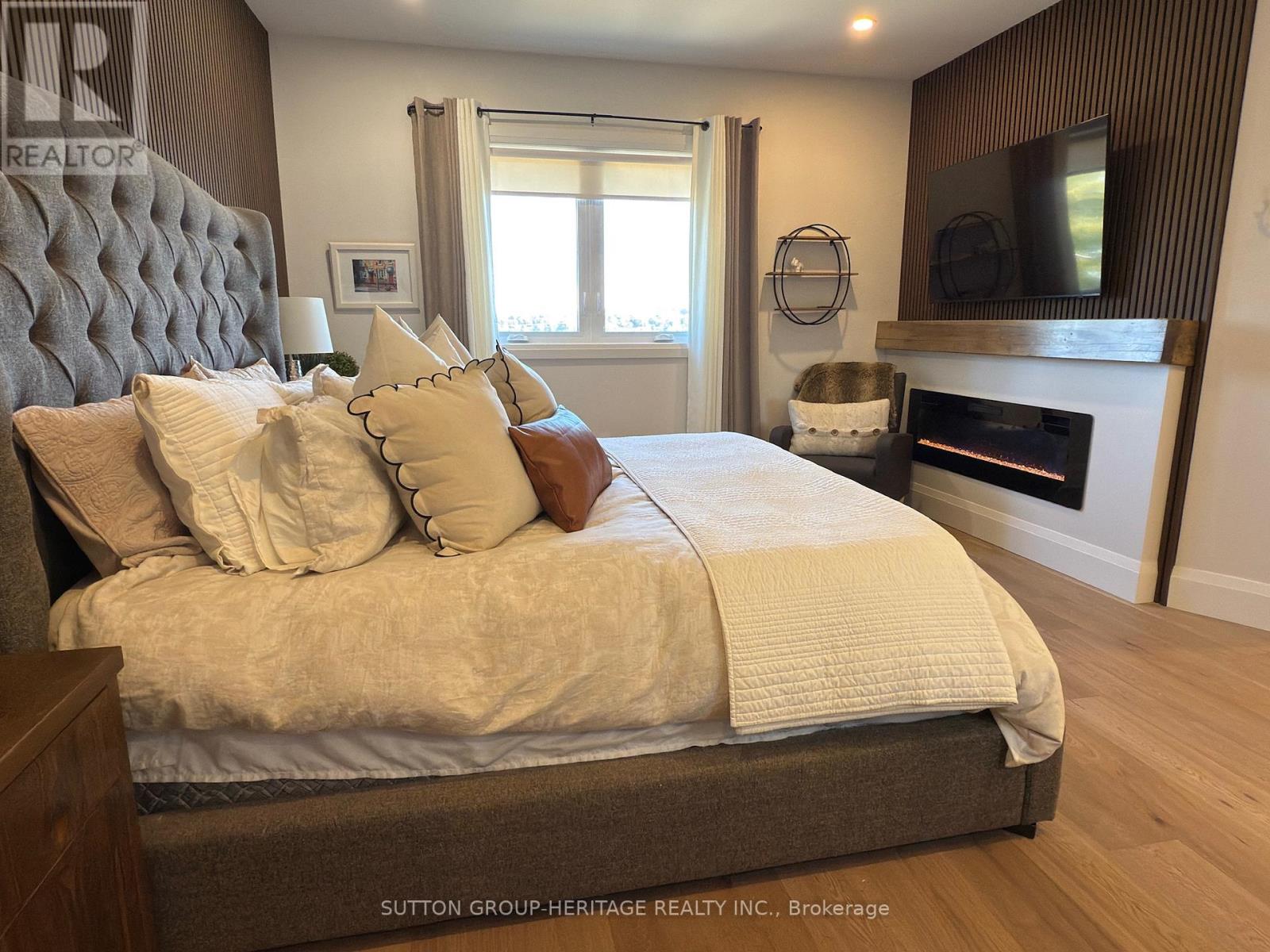 Welcome to your dream home overlooking Lake Scugog on one of Port Perry's most desirable and peaceful waterfront streets. Just a 12-minute walk to the Port Perry Marina and historic downtown shops and cafés, this brand-new custom home offers luxury, light, and stunning lake views throughout. The open-concept main floor seamlessly connects the kitchen, dining, living, and foyer spaces, all designed to showcase the scenery. The chef-inspired kitchen features an induction cooktop with stone surround, 8x5 ft island, coffee bar, wall oven, quartz counters, and custom cabinetry. The dining area includes lighted built-ins, while the living room offers a stone electric fireplace and walkout to a lakeview balcony. A glass-front foyer with built-in bench and closet completes the space. Upstairs, a floating oak staircase leads to four spacious bedrooms. Two share a Jack & Jill 3-piece bath, one has a private 2-piece ensuite, and the primary suite features a fireplace, custom walk-in closet, and luxurious 5-piece ensuite-all with lake views. The finished lower level includes a recreation room, exercise room, and custom mudroom. Thoughtfully designed and expertly crafted, this home blends elegance and comfort in an exceptional waterfront setting. (id:64974)