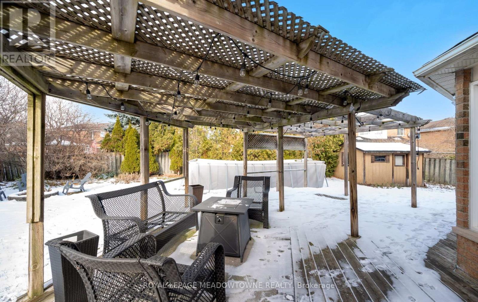 Welcome to a true gardener's paradise set on an exceptional pie-shaped lot in the heart of quiet, family-oriented "Olde Town" Brampton. This beautifully maintained 4-bedroom home exudes warmth, comfort, and pride of ownership. Step inside to a spacious foyer with neutral ceramic flooring and an elegant circular staircase leading to sun-filled principal rooms. The large living and dining areas feature generous windows and a cozy wood-burning fireplace with a classic wood mantel-perfect for creating family memories. The updated kitchen offers plenty of workspace and a seamless walkout to a stunning two-tiered wood deck with pergola, overlooking a massive pool-sized backyard-ideal for gardeners, entertainers, or anyone seeking privacy and outdoor enjoyment. Upstairs, you'll find four bright bedrooms and a well-designed layout suited for growing families. The finished basement includes above-grade windows that pour natural light into the space, along with a large laundry room and versatile recreation area. Located on a quiet street just steps to Northwood Park, walking distance to excellent schools, close to shopping, transit, and everyday conveniences. The oversized driveway offers ample parking for multiple vehicles. This is the kind of home that rarely comes to market-spacious, sun-filled, lovingly cared for, and sitting on one of the most impressive lots in the neighbourhood. (id:64974)